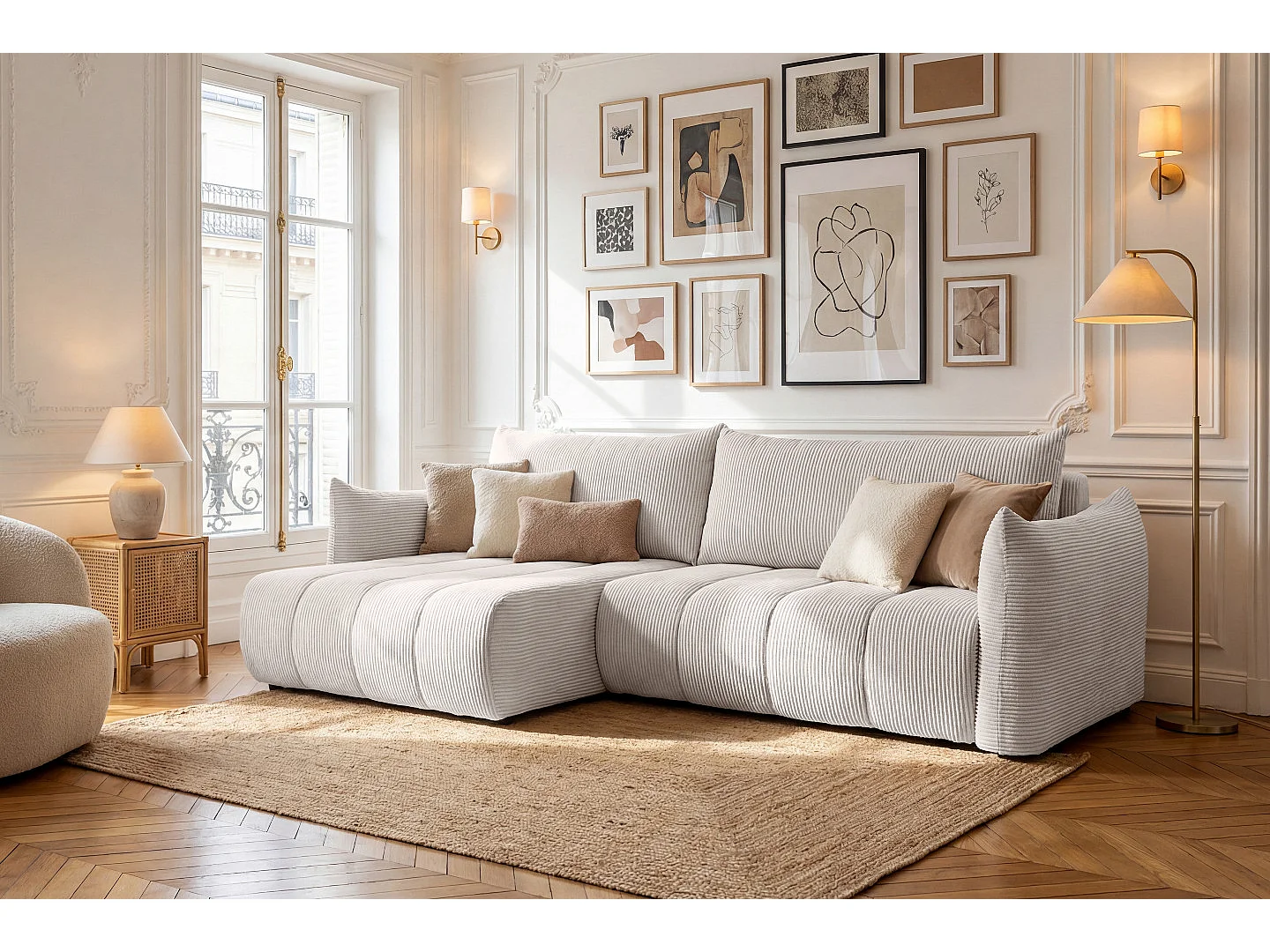 Narożnik Flo, z funkcją spania, do salonu, tkanina Poso, beż (100)