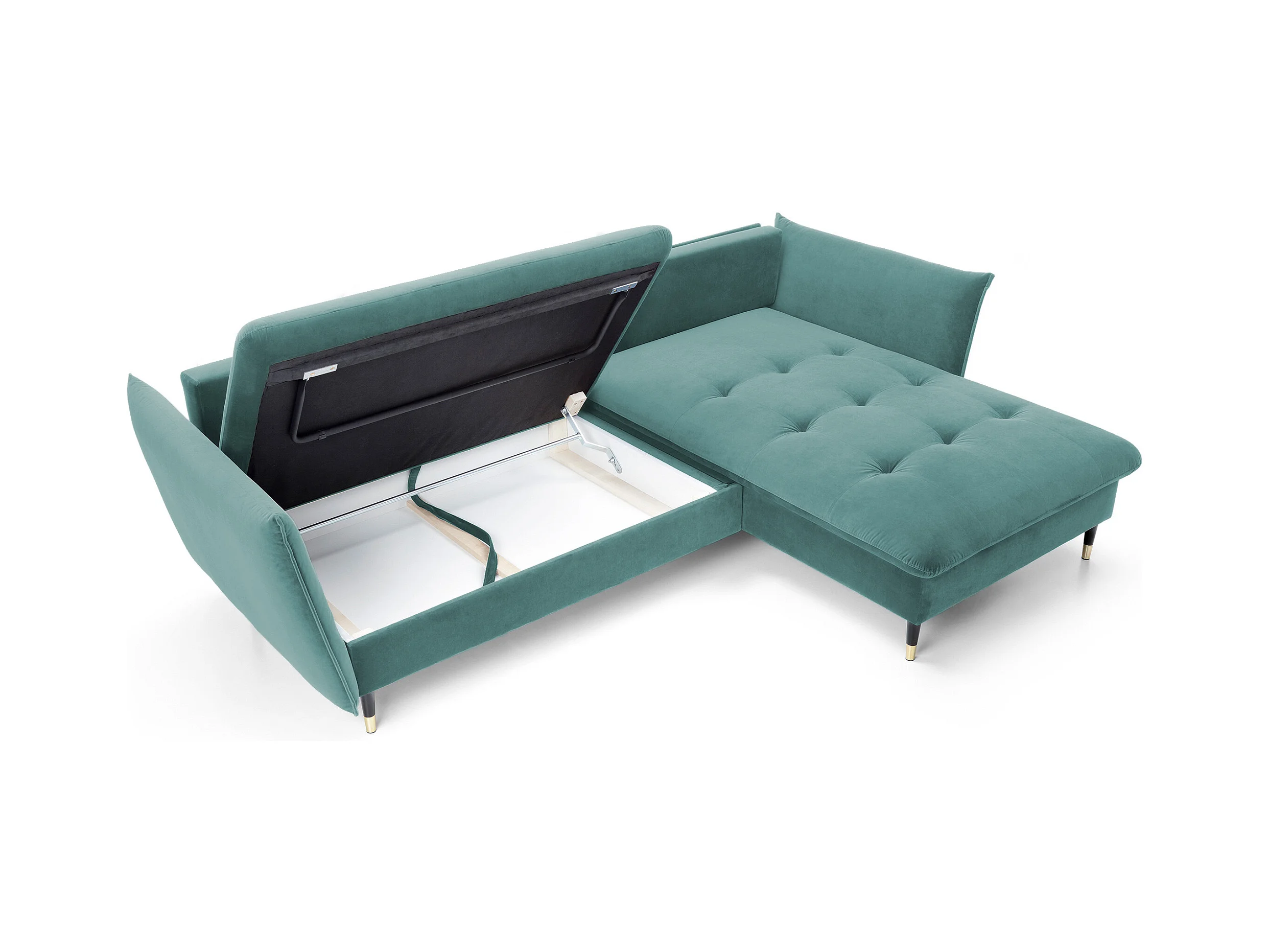 Narożnik Tapicerowany BOULI 4-os. Raven z funkcją spania 130x210cm pojemnik na pościel 264x162x82cm prawo stronny kolor: morska zieleń