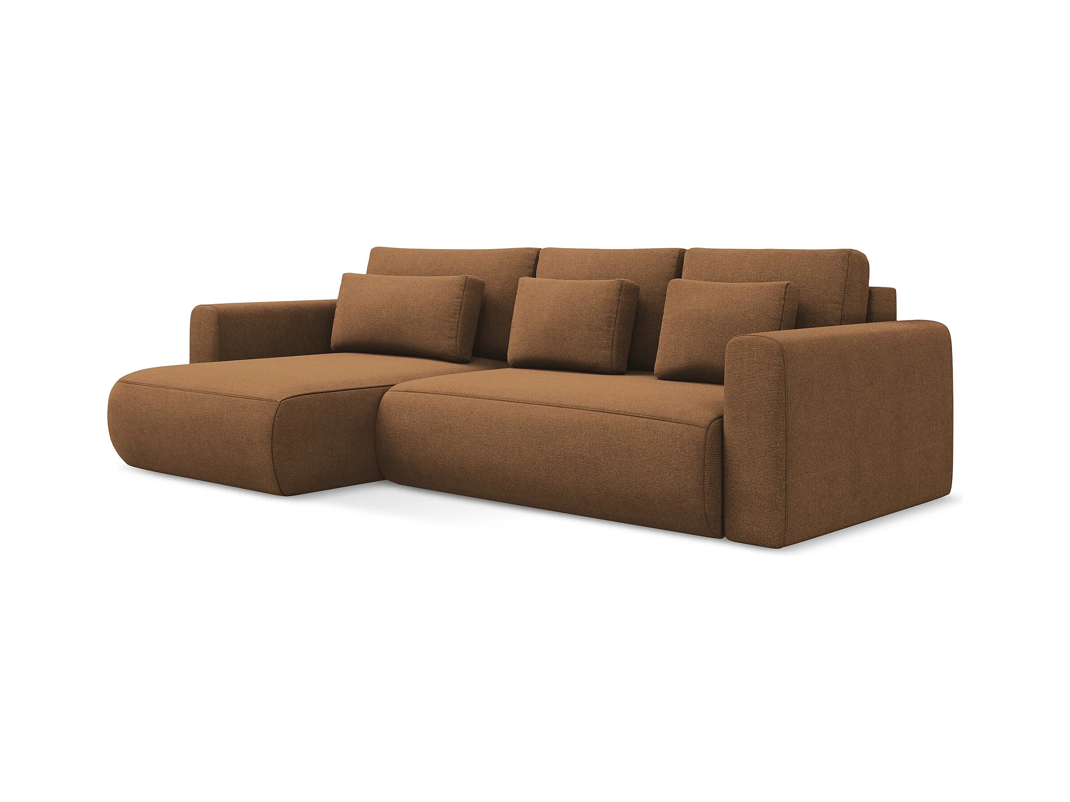 Narożnik lewostronny z funkcją spania - z tkaniny strukturalnej - terakota - KIMO