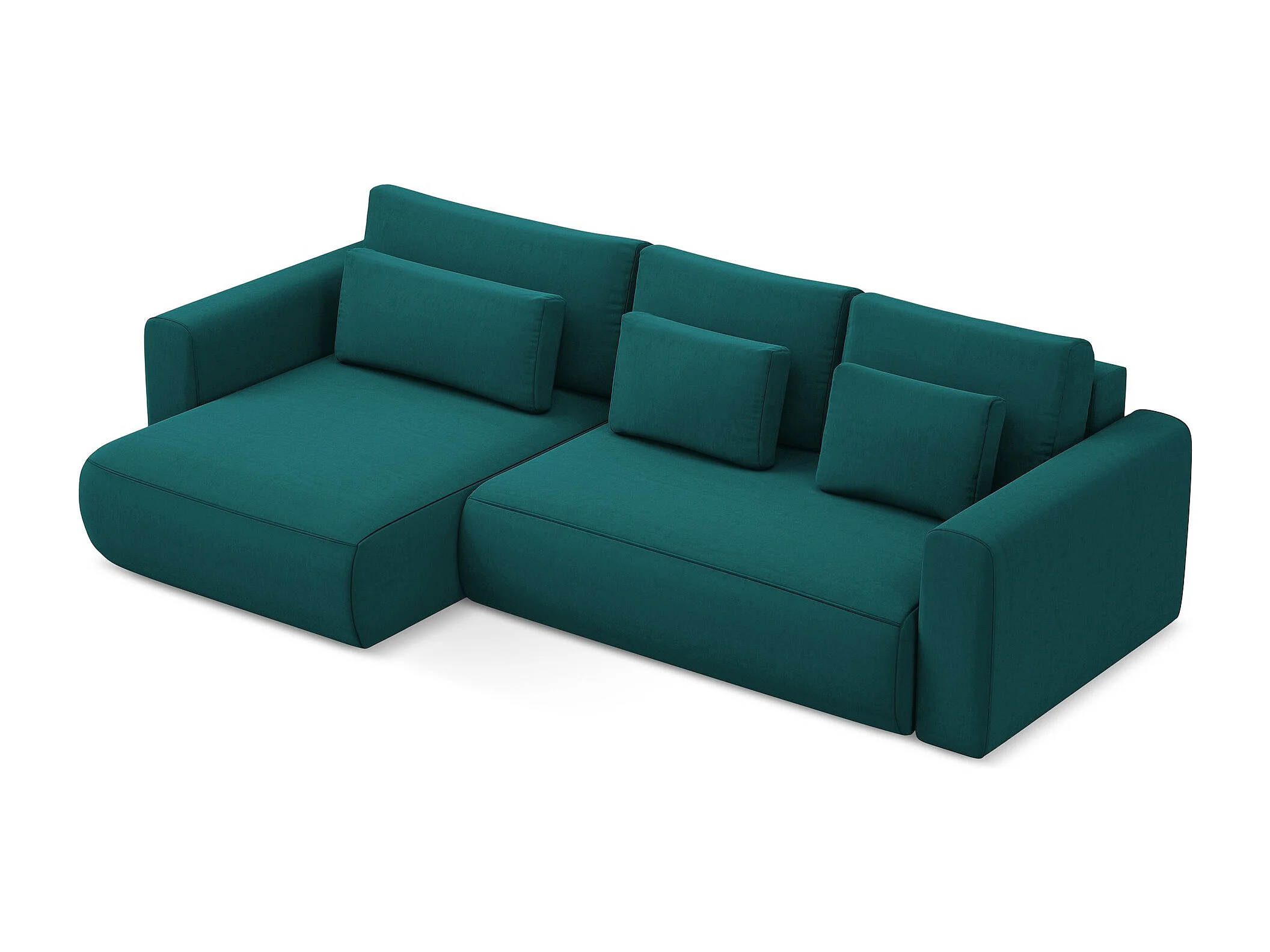 Narożnik lewostronny z funkcją spania - z tkaniny welwetowej - morski - KAPUA