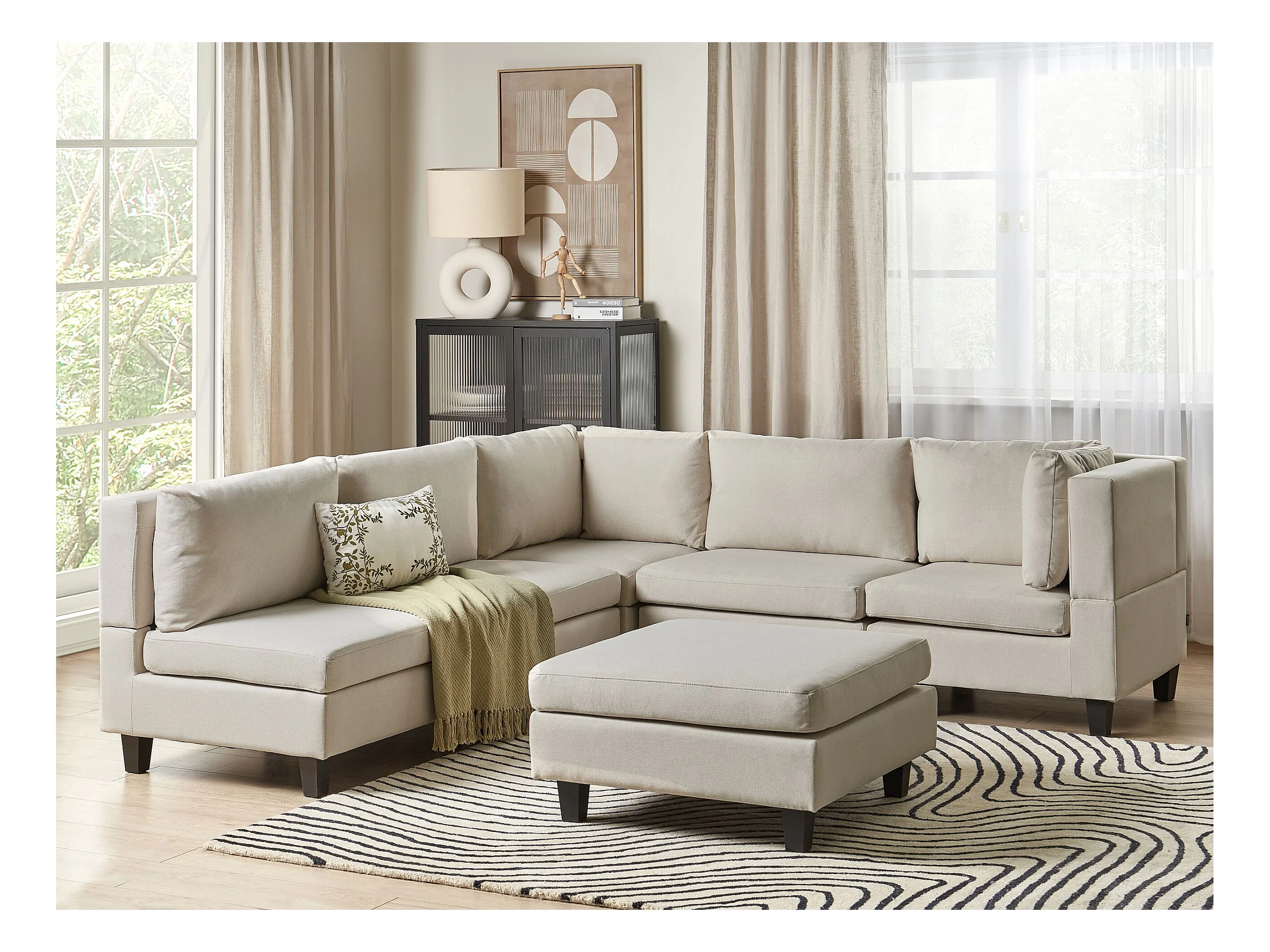 Narożnik modułowy UNSTAD Jasnobeżowy z otomaną dla 5 osób Lewostronny