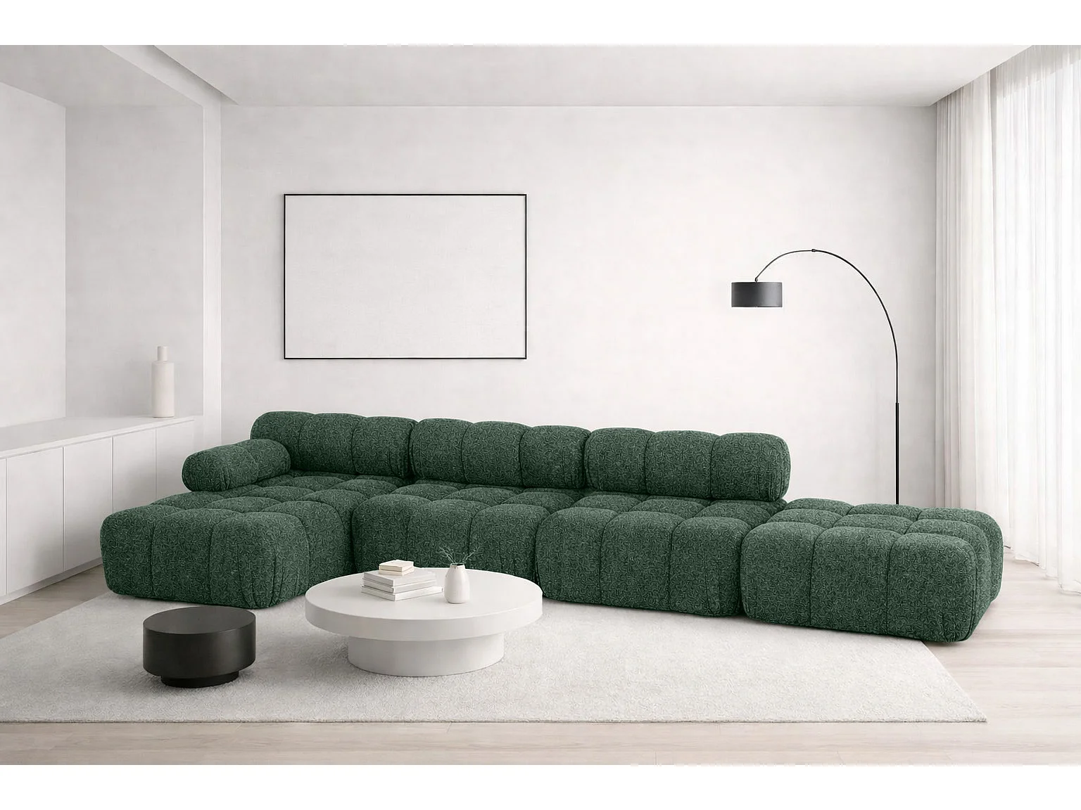 Narożnik modułowy w kształcie L, tkanina bukla Abriamo, Ciemnozielony, Lewy, Selia L XL