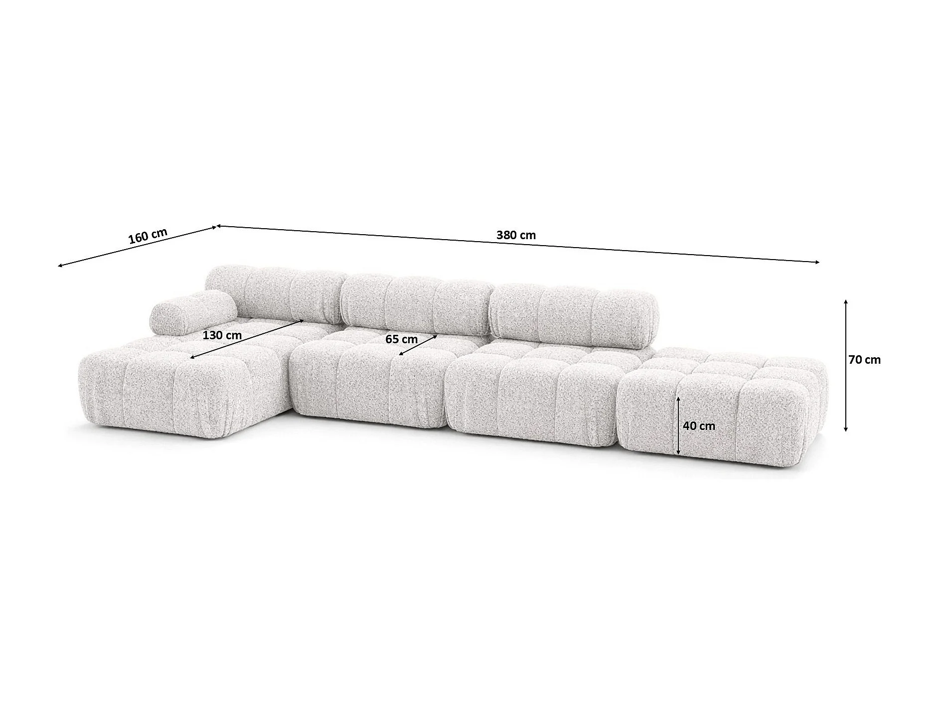 Narożnik modułowy w kształcie L, tkanina bukla Abriamo, Ecru, Lewy, Selia L XL
