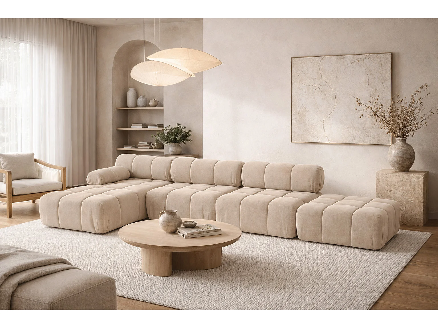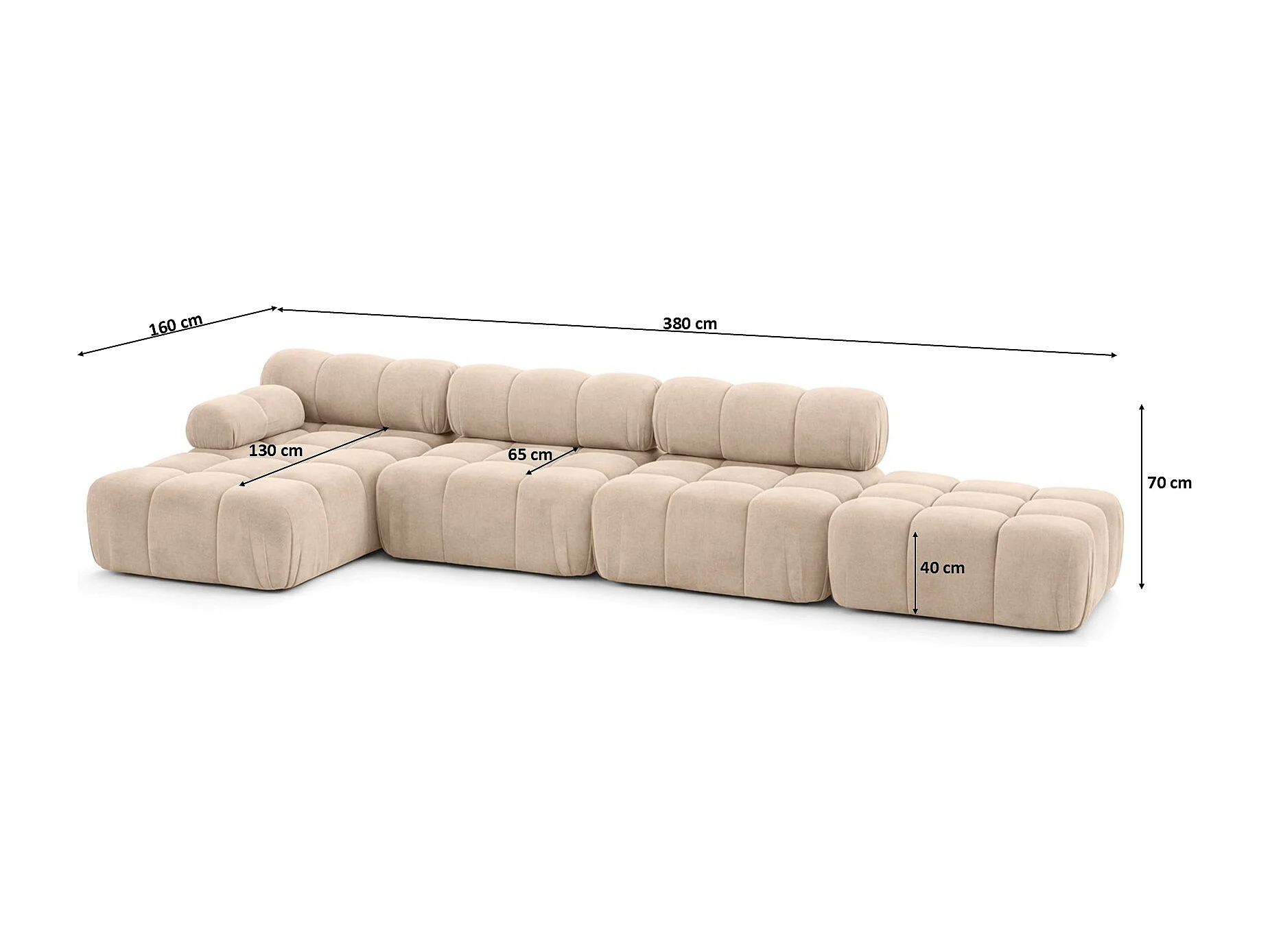 Narożnik modułowy w kształcie L, tkanina welur Salvador, Beżowy, Lewy, Selia L XL