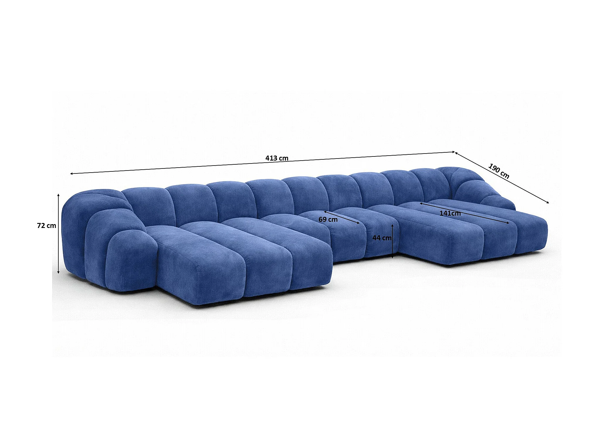Narożnik modułowy w kształcie U, tkanina welurowa Bluvel, Atramentowy, CROISSANT U