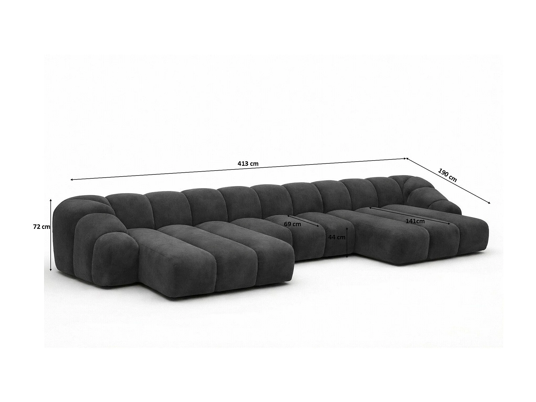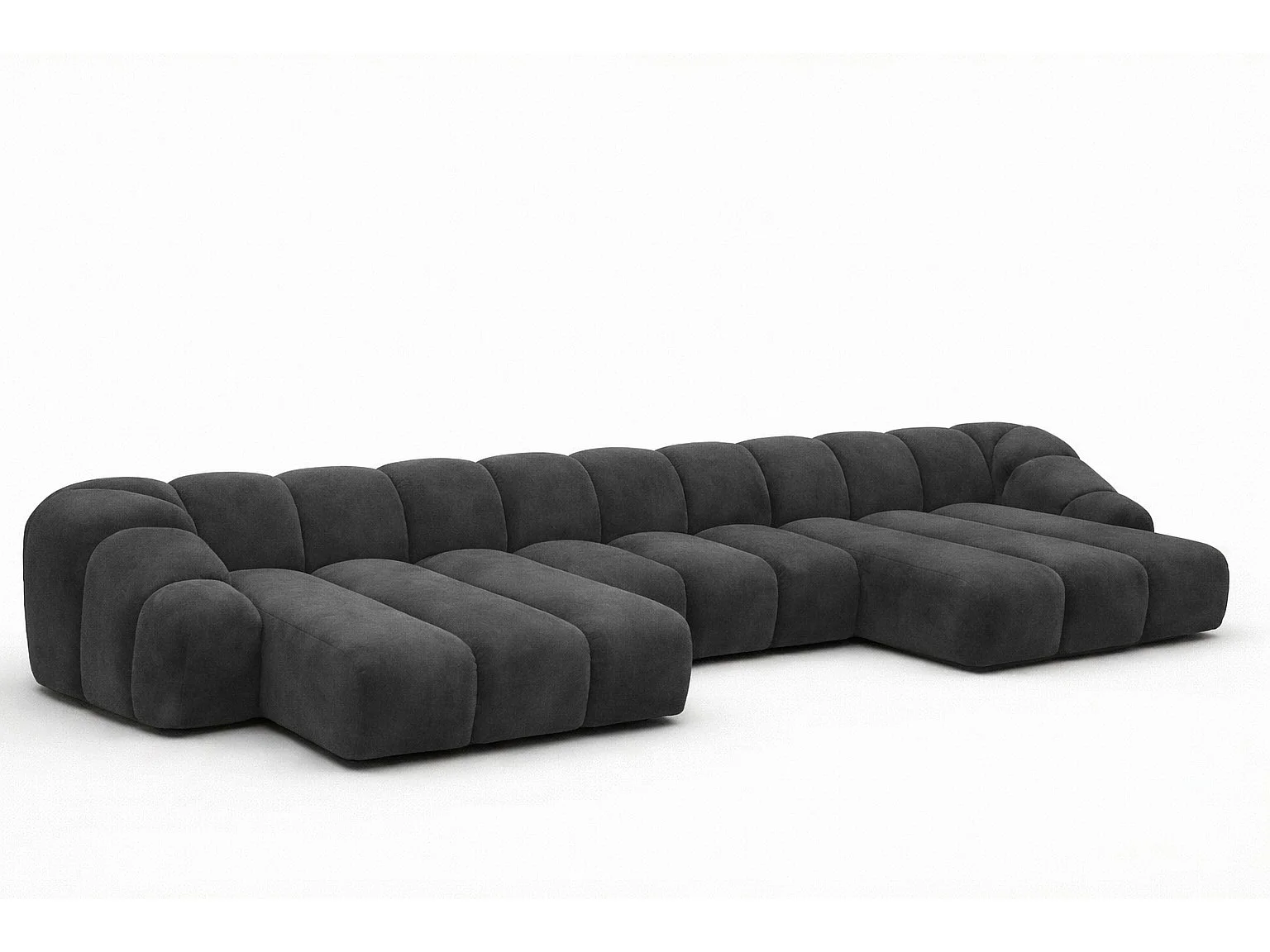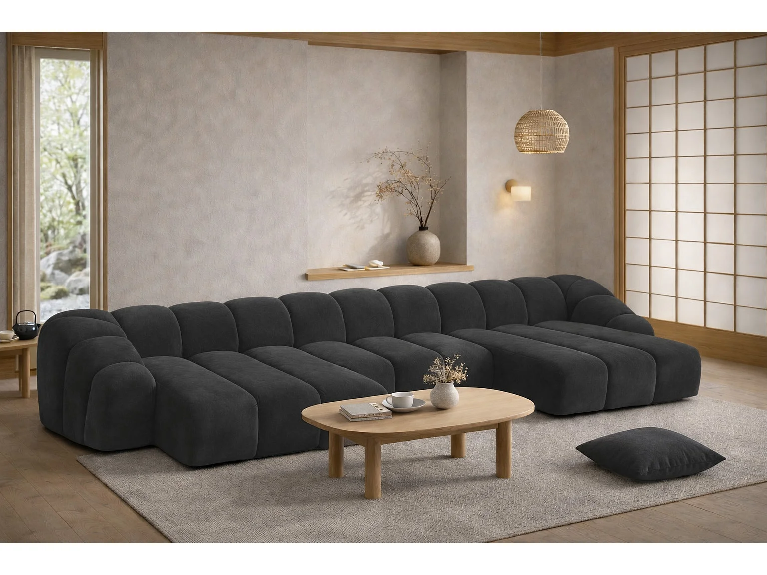 Narożnik modułowy w kształcie U, tkanina welurowa Bluvel, Czarny, CROISSANT U