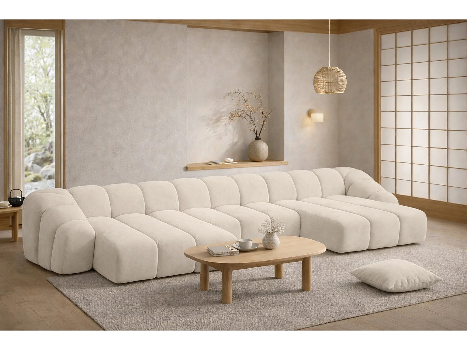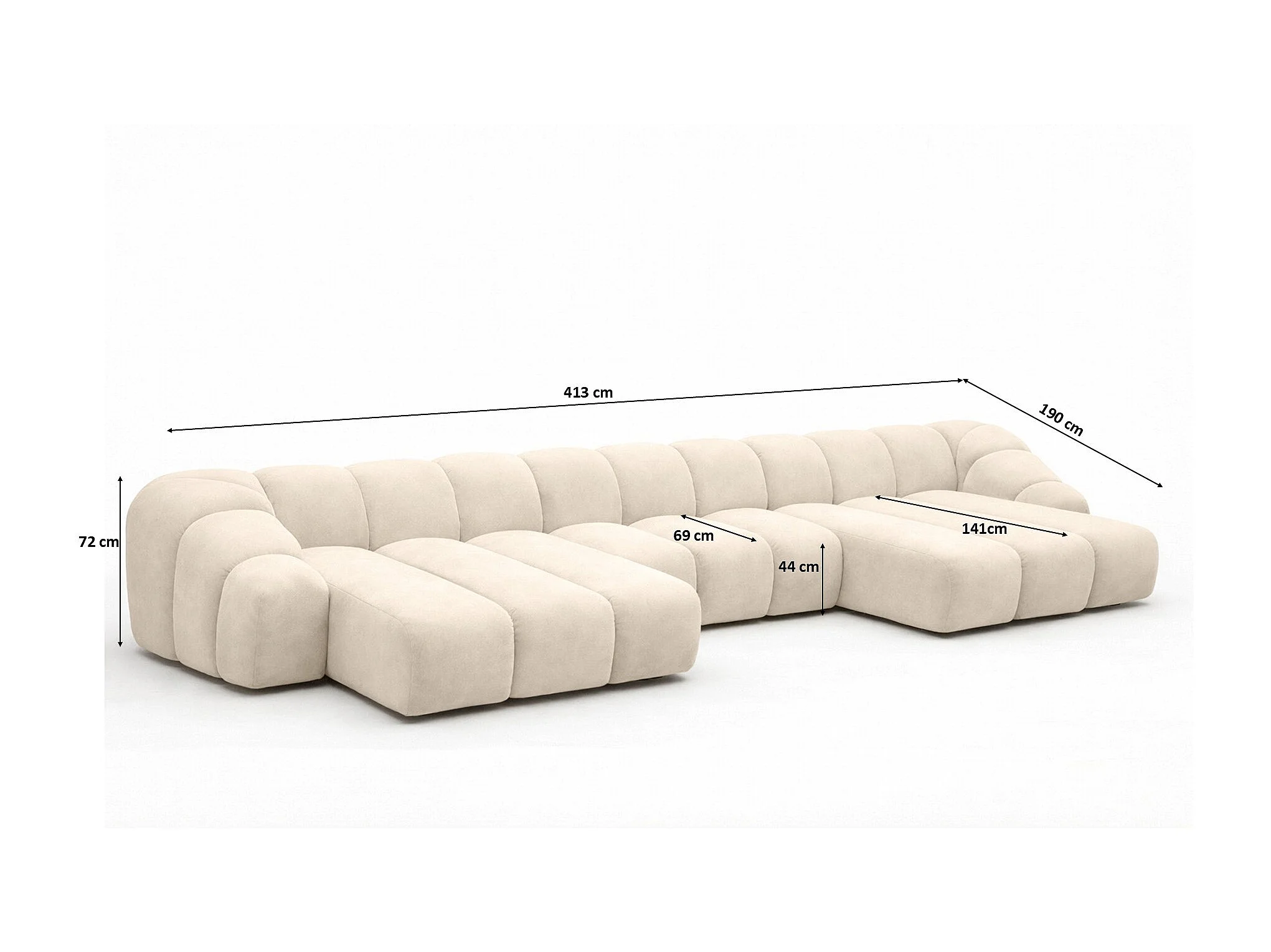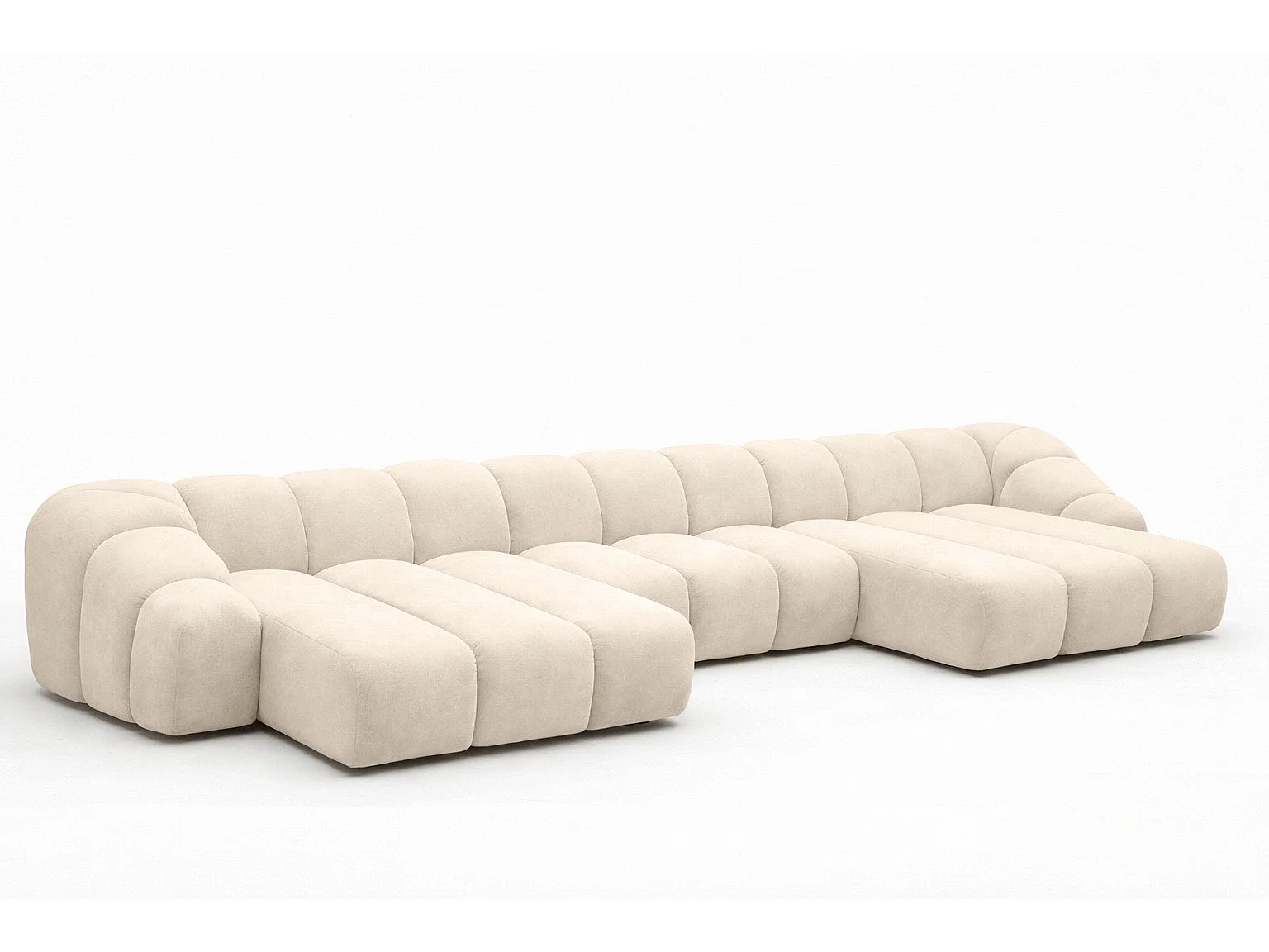 Narożnik modułowy w kształcie U, tkanina welurowa Bluvel, Kremowy, CROISSANT U