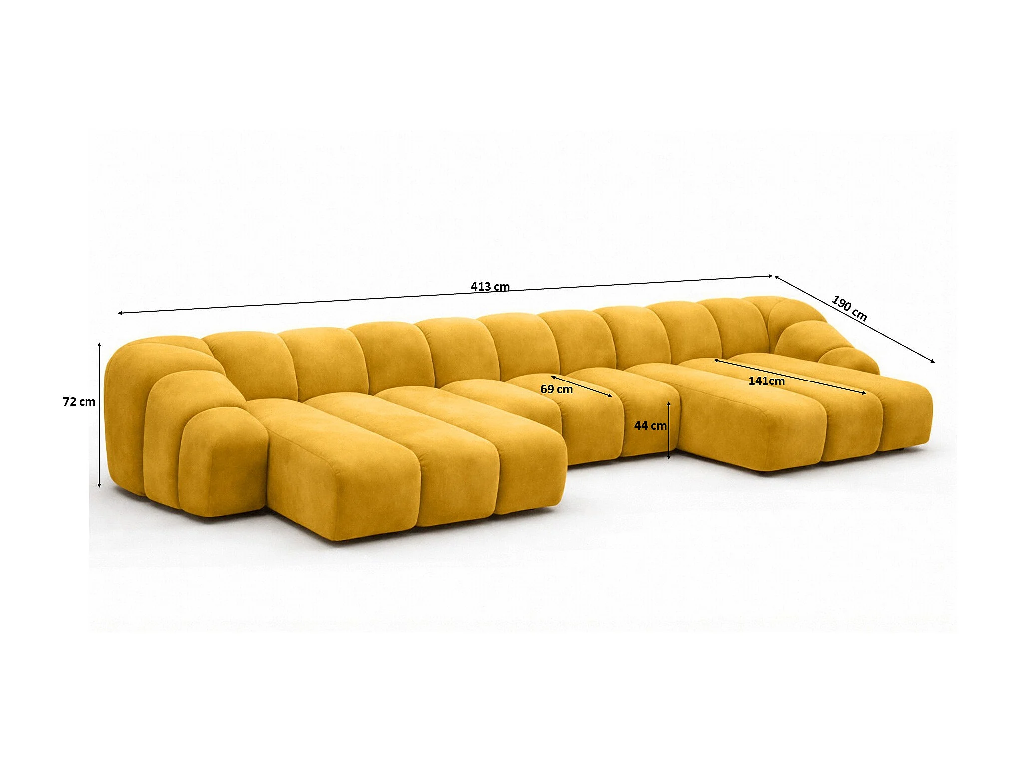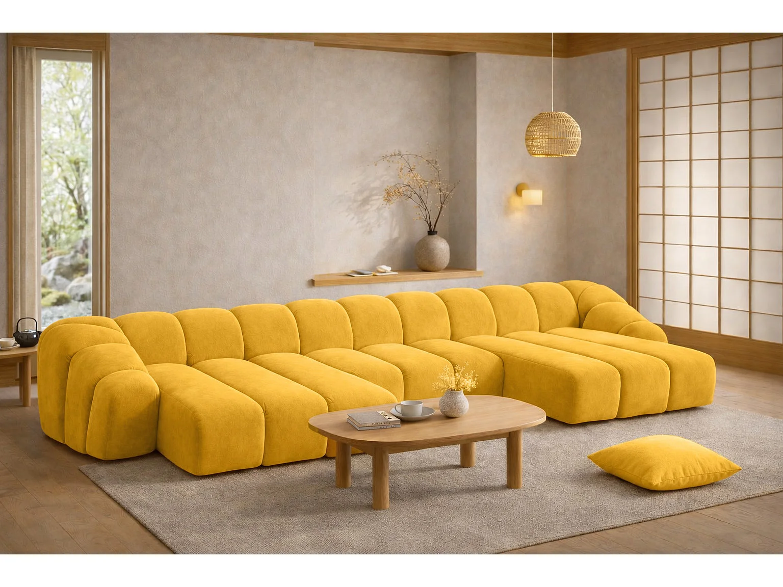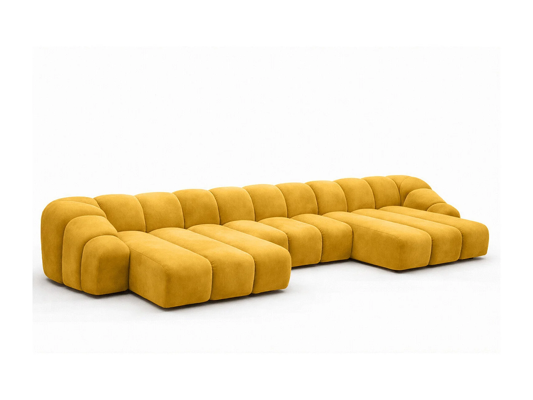 Narożnik modułowy w kształcie U, tkanina welurowa Bluvel, Złoty, CROISSANT U