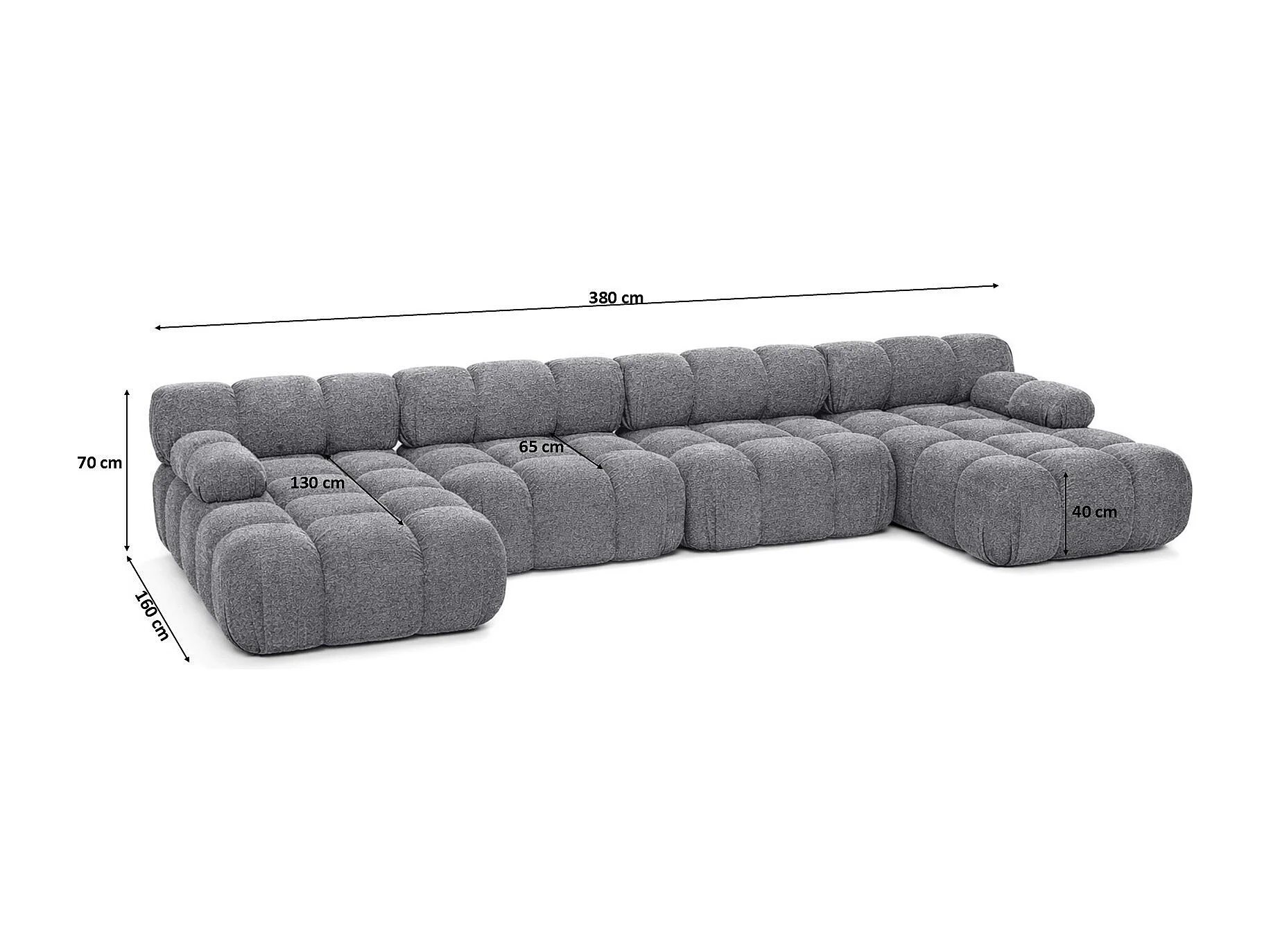 Narożnik modułowy w kształcie U XL, tkanina bukla Abriamo, Ciemnoszary, Selia U XL