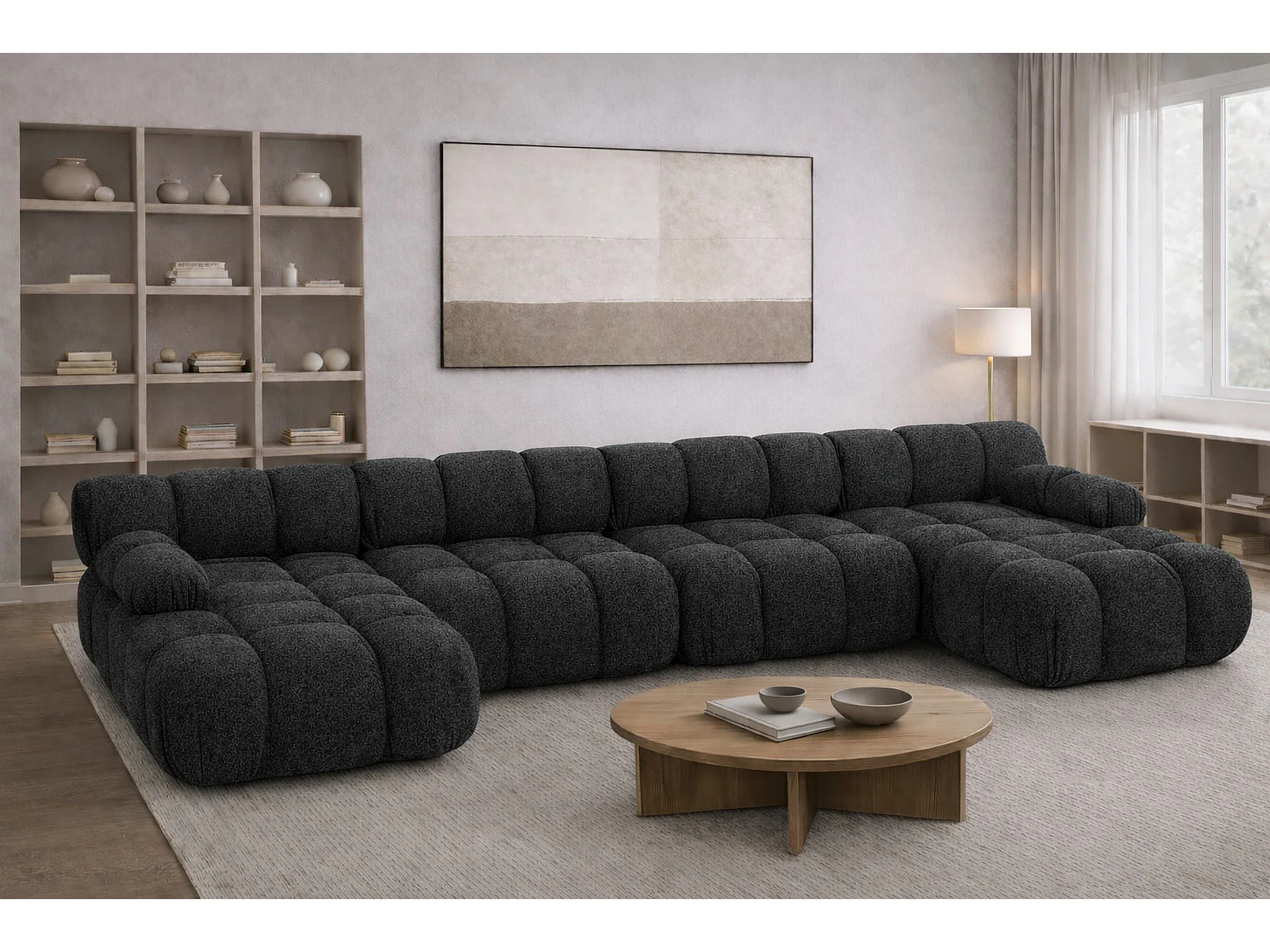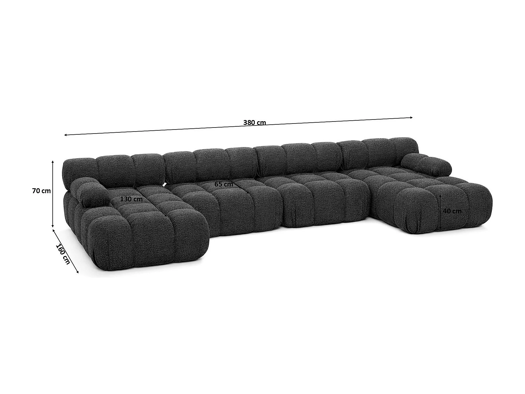 Narożnik modułowy w kształcie U XL, tkanina bukla Abriamo, Grafitowy, Selia U XL