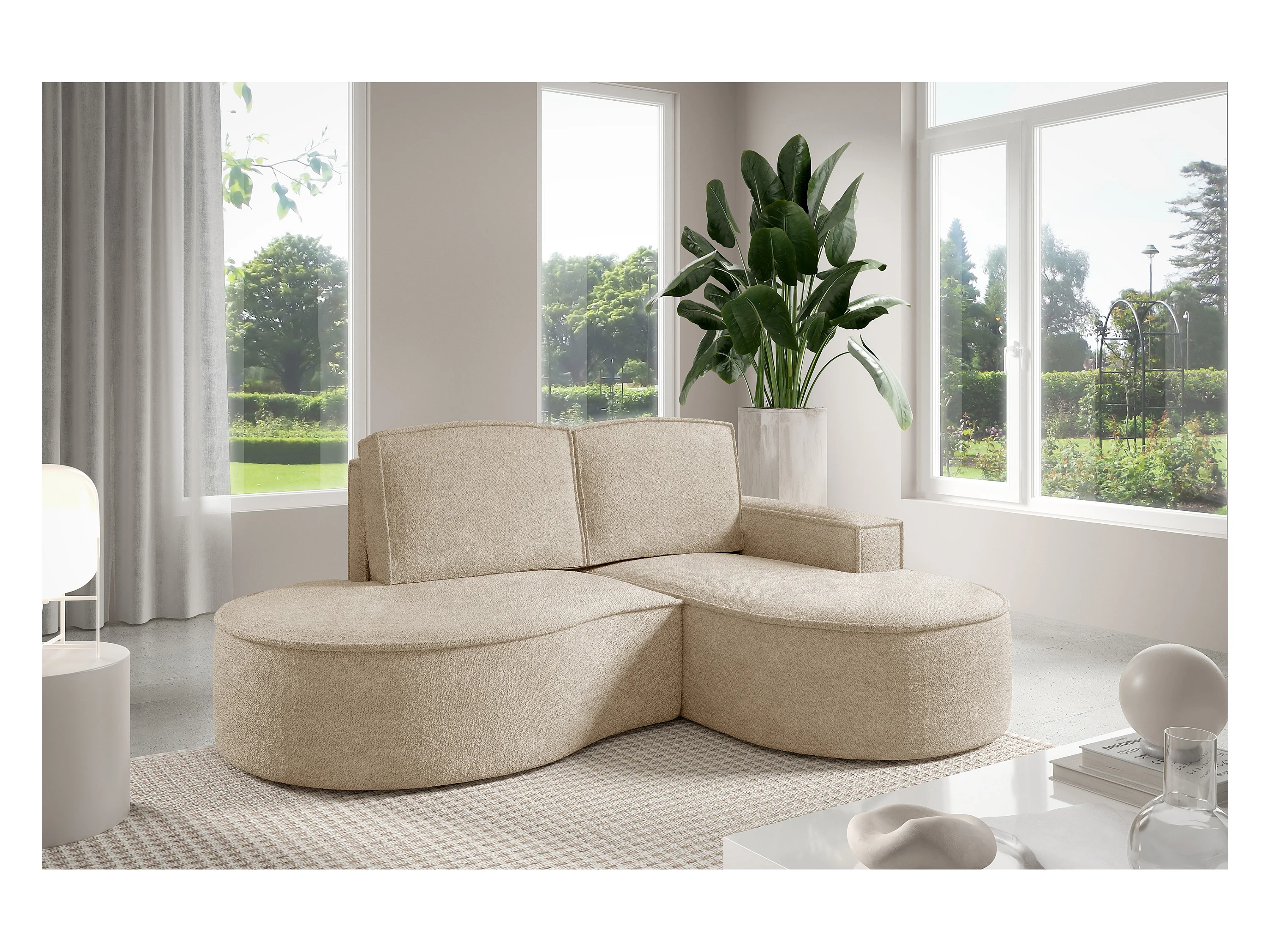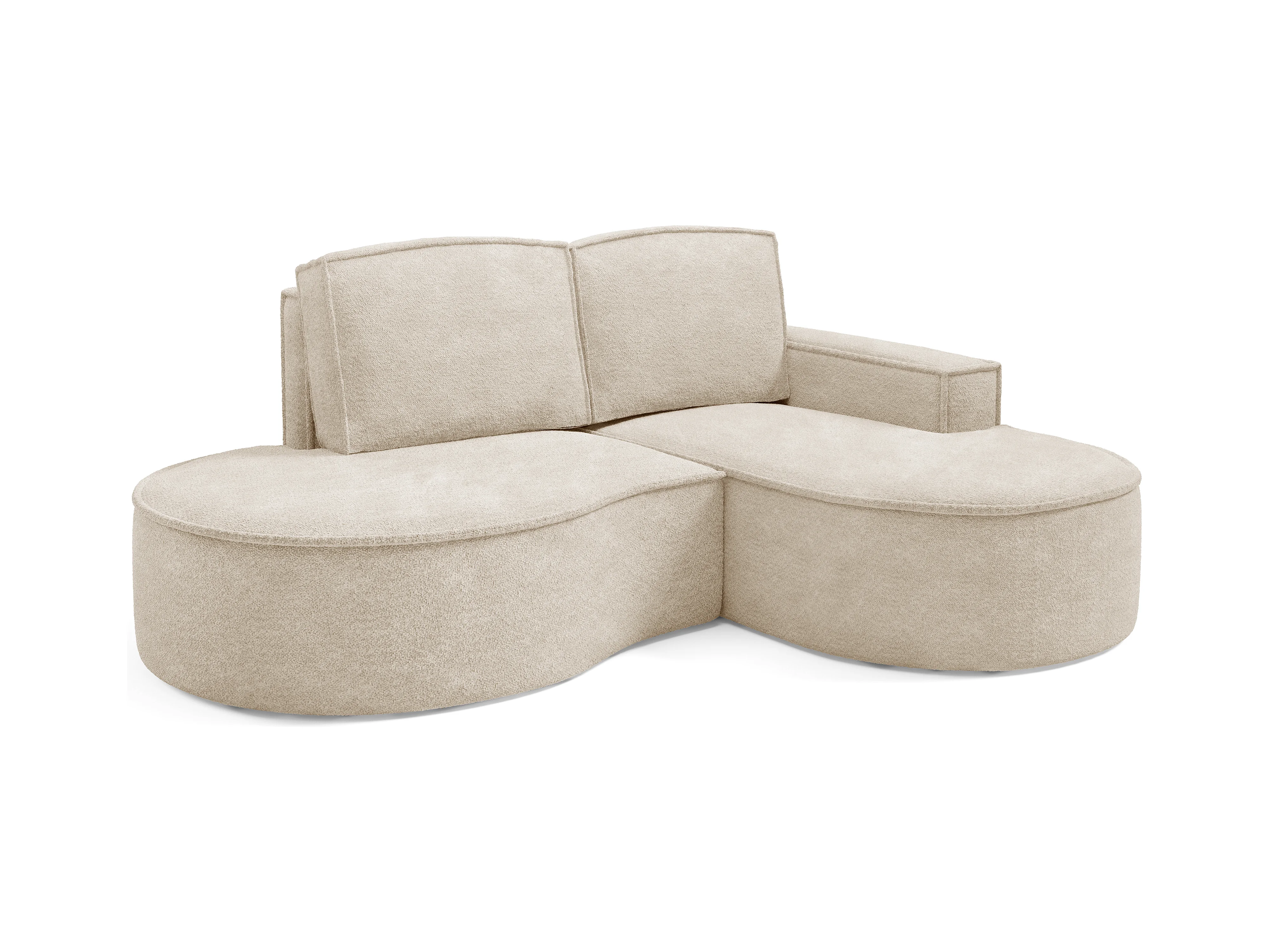 Narożnik MOLLY bez funkcji spania, półokrągły, bouclé Curio, luźne poduszki, 210x157x88 cm, lewa strona, beżowy