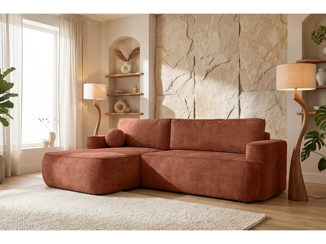 Narożnik Moon, do salonu, z funkcją spania, Flow, lewy, cegła (09)