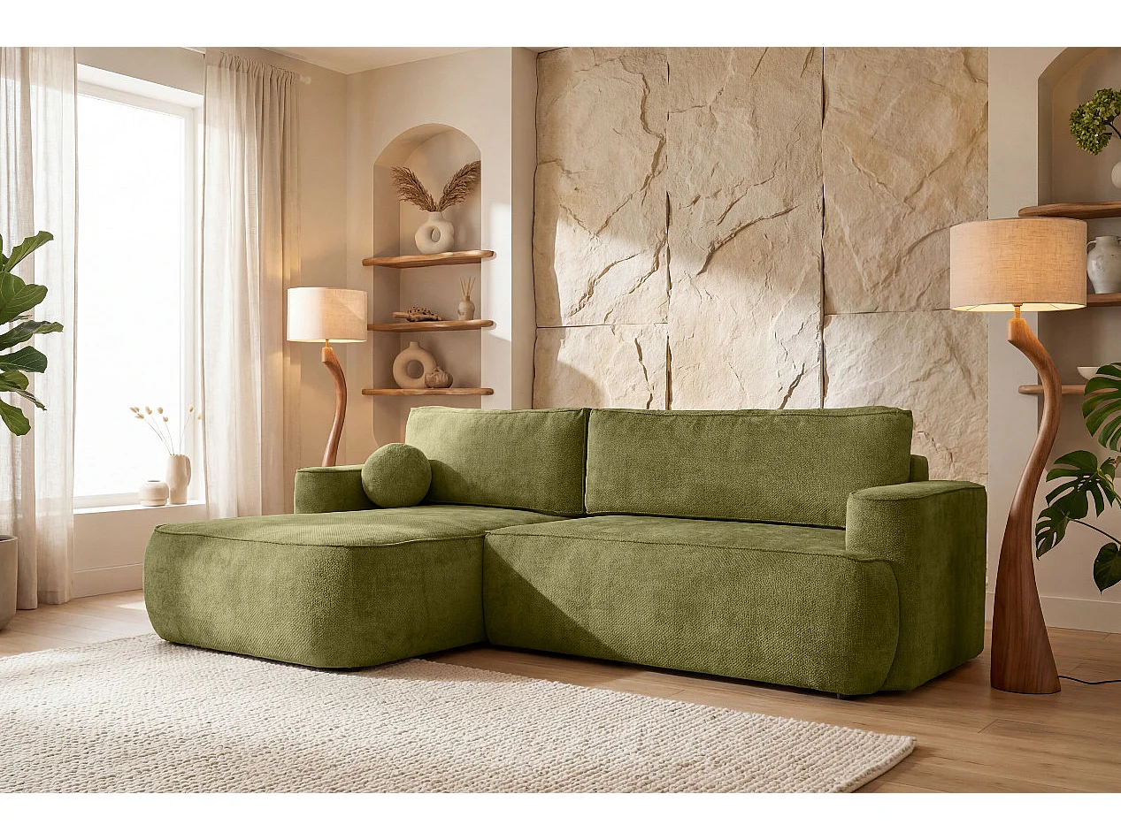 Narożnik Moon, do salonu, z funkcją spania, Flow, lewy, zielony (12)