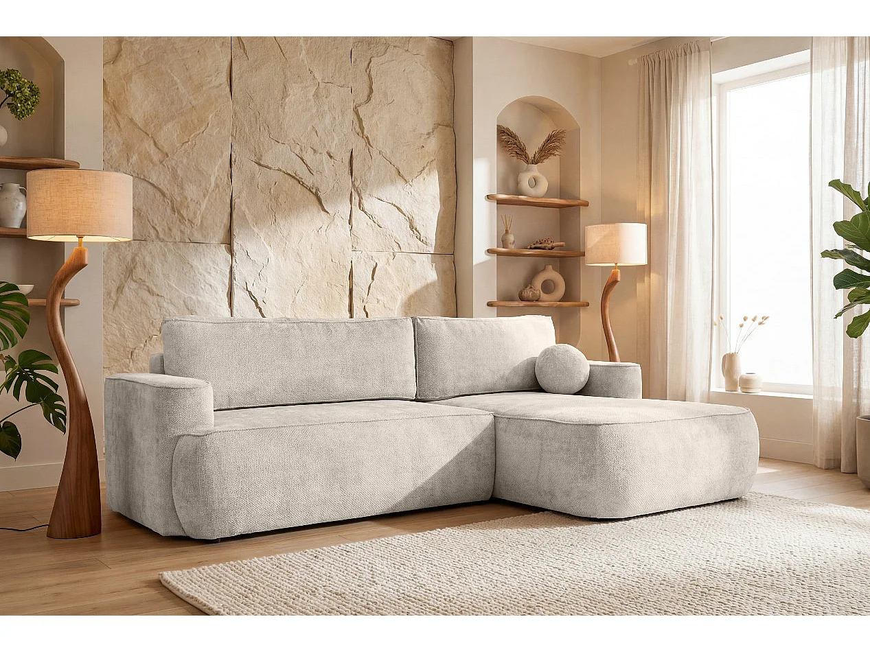 Narożnik Moon, do salonu, z funkcją spania, Flow, prawy, kremowy (04)