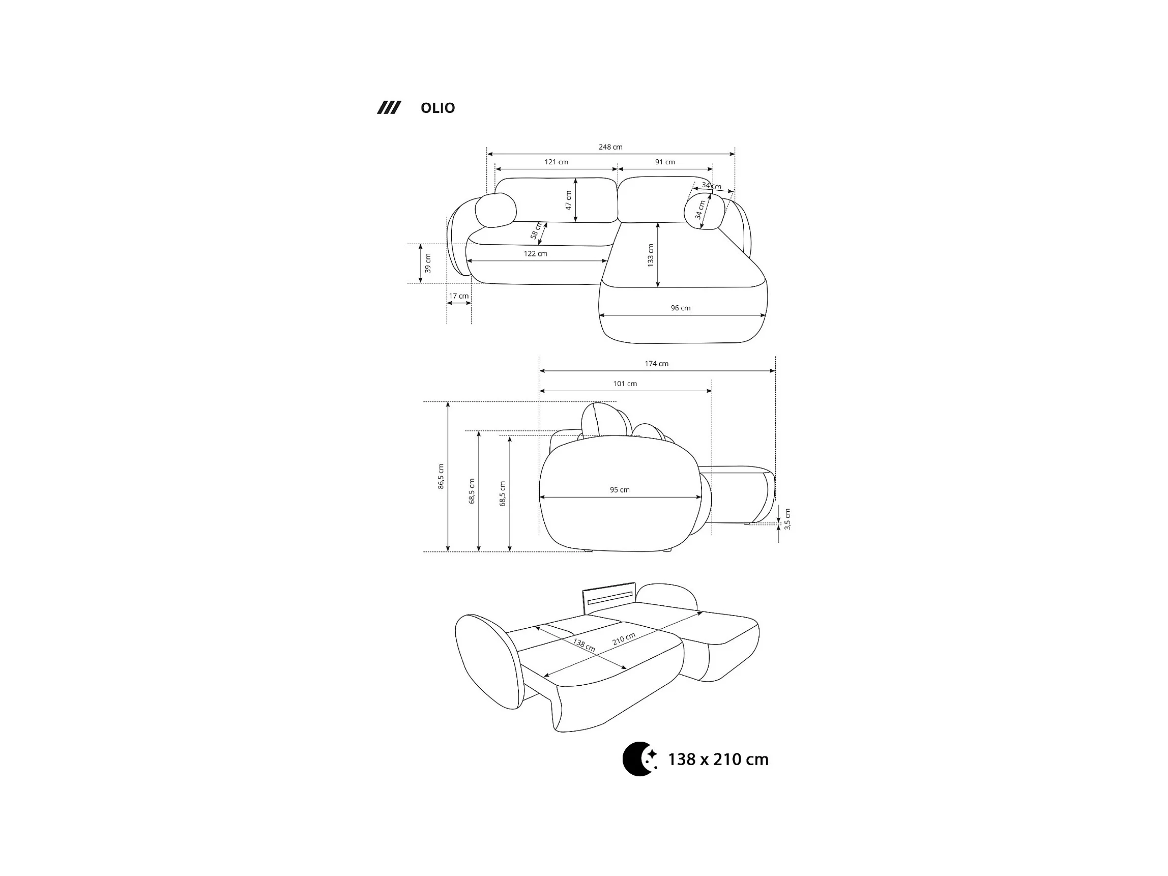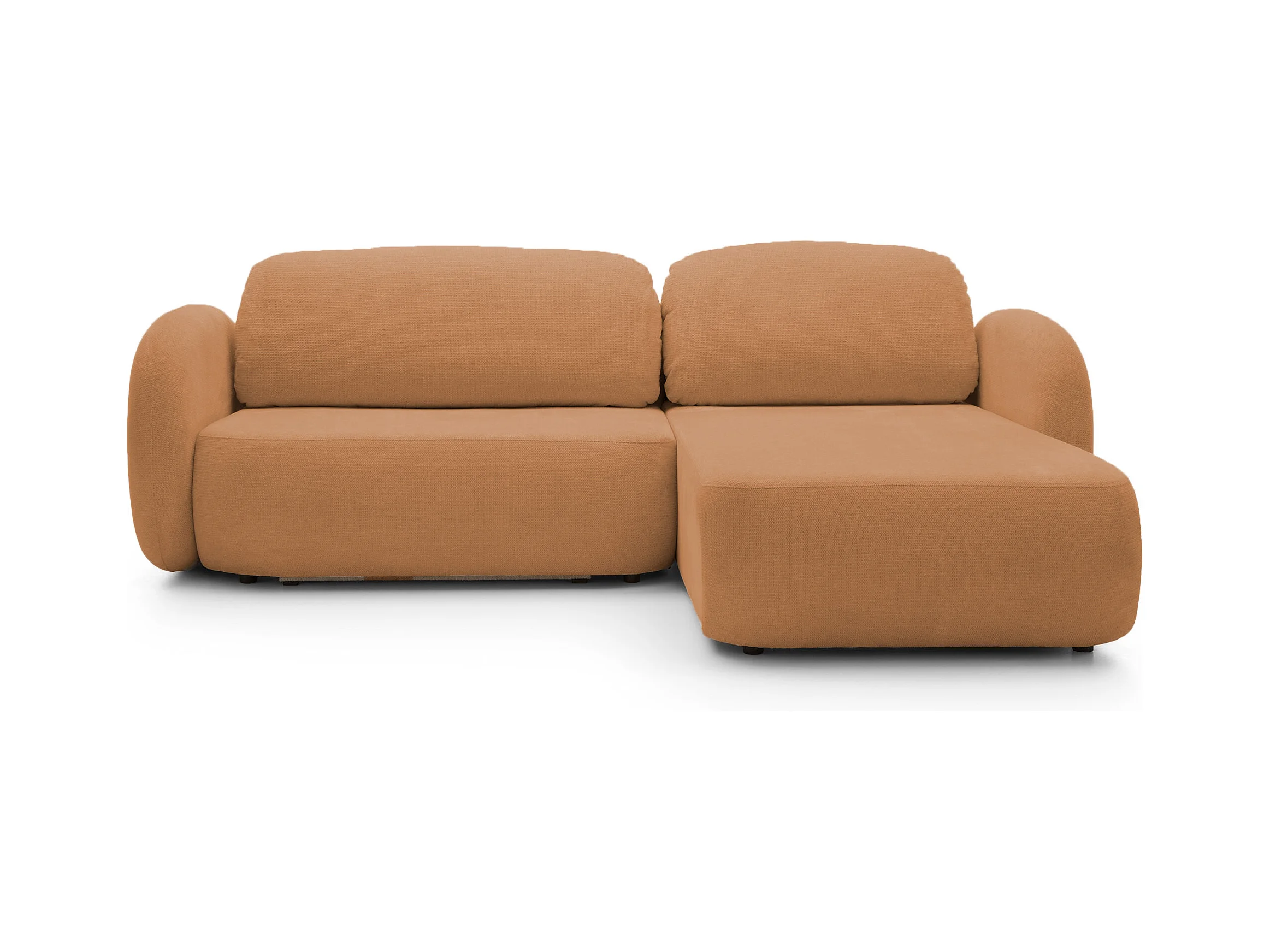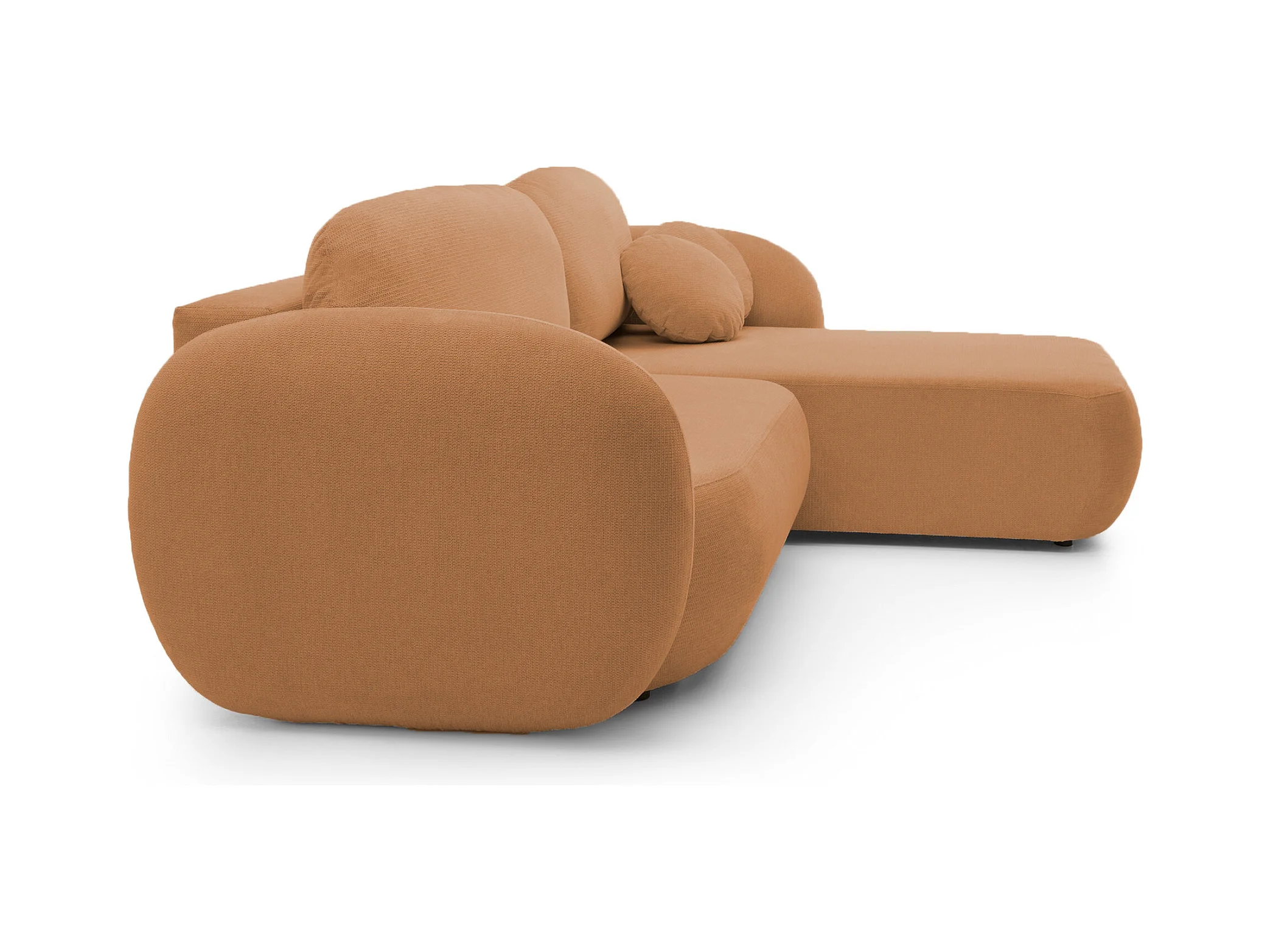 Narożnik OLIO L-Form z łóżkiem 138x210cm, szufladą i luźnymi poduszkami – Prawa strona 248x174x86cm CIEMNOPOMARAŃCZOWY