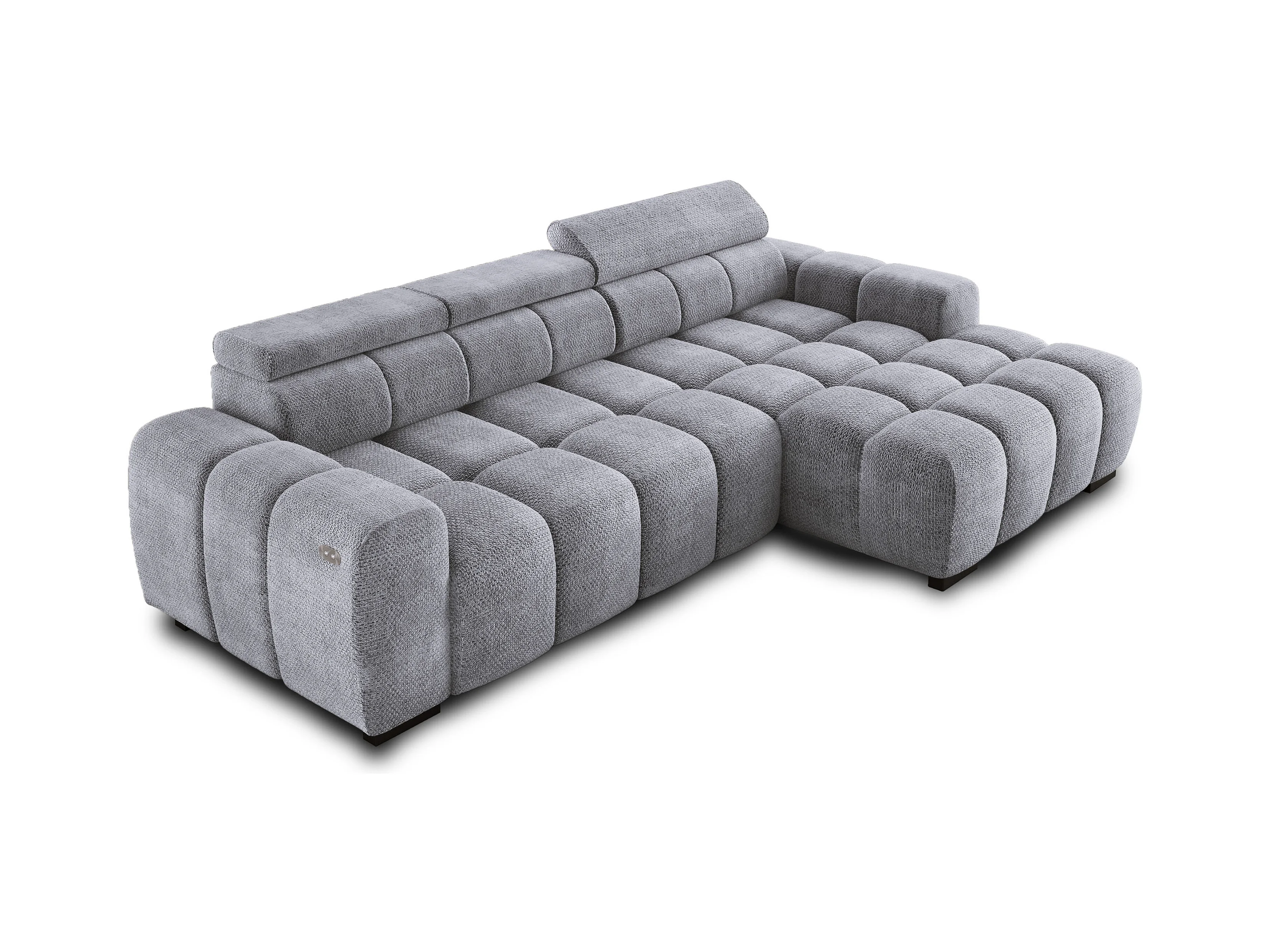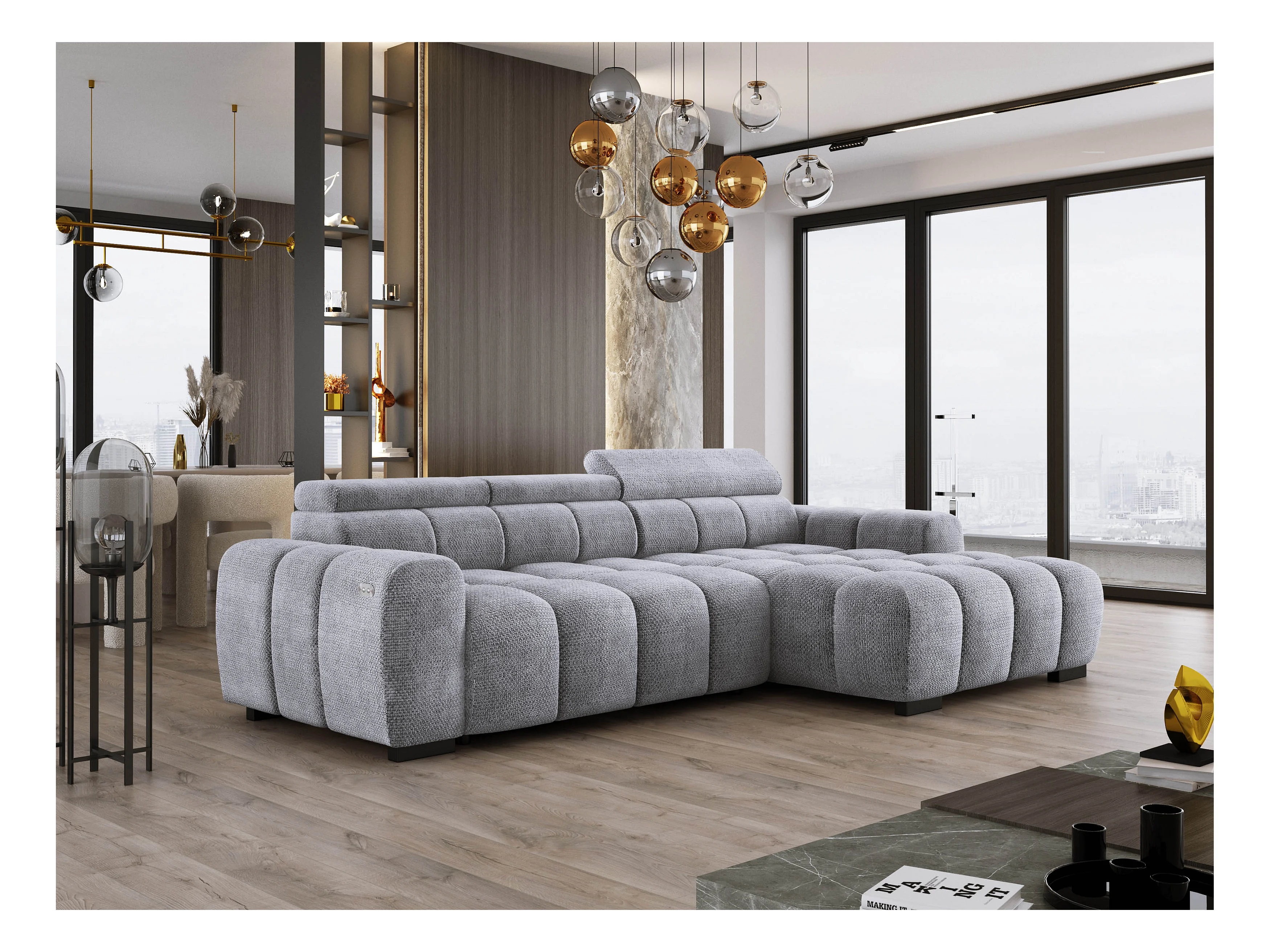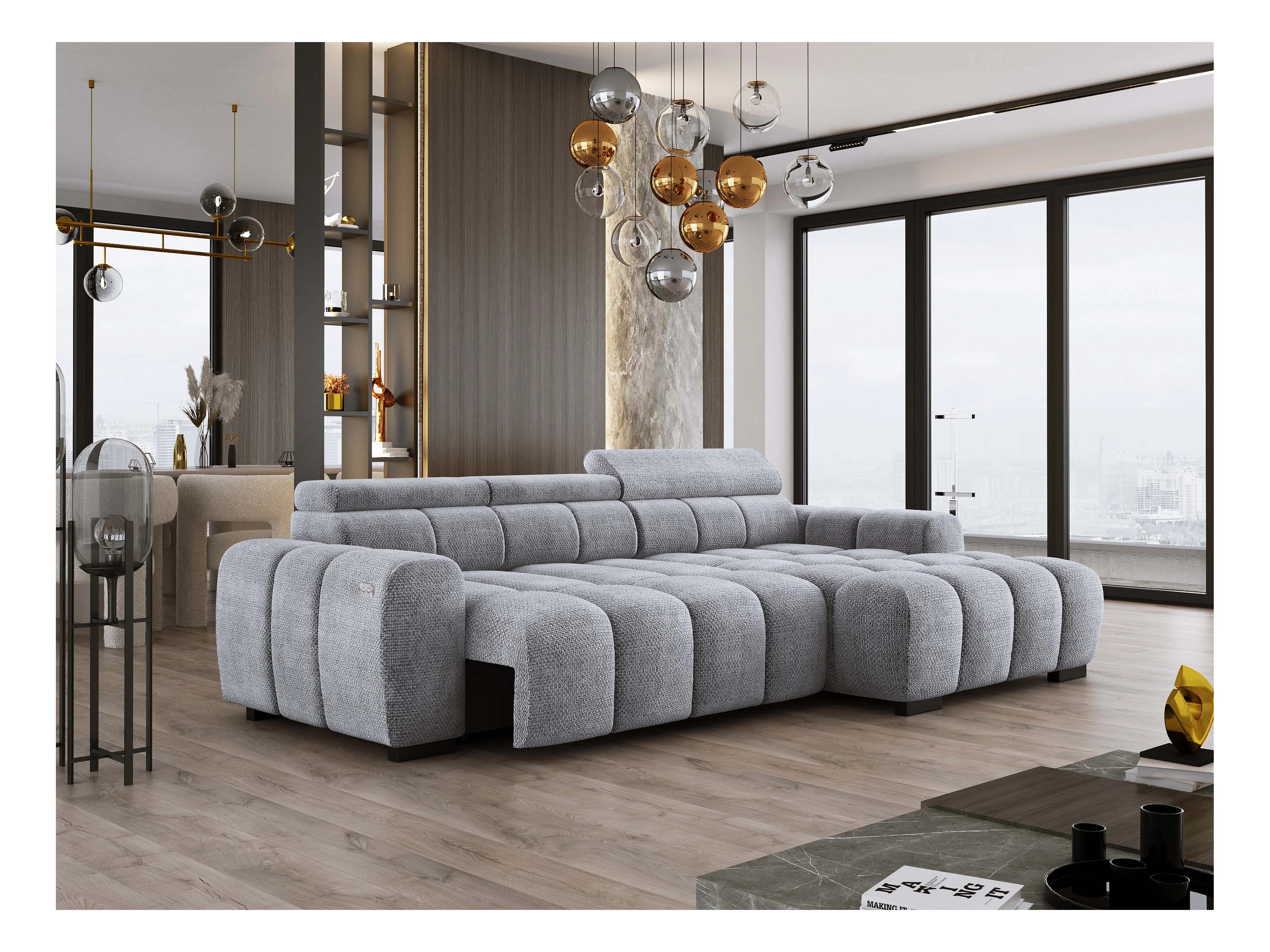 Narożnik Tollo Szary Anthology, Prawa 302x217x105 cm, L-kształtny, Spanie, Pojemnik 120x85x17 cm, Elektryczna Regulacja