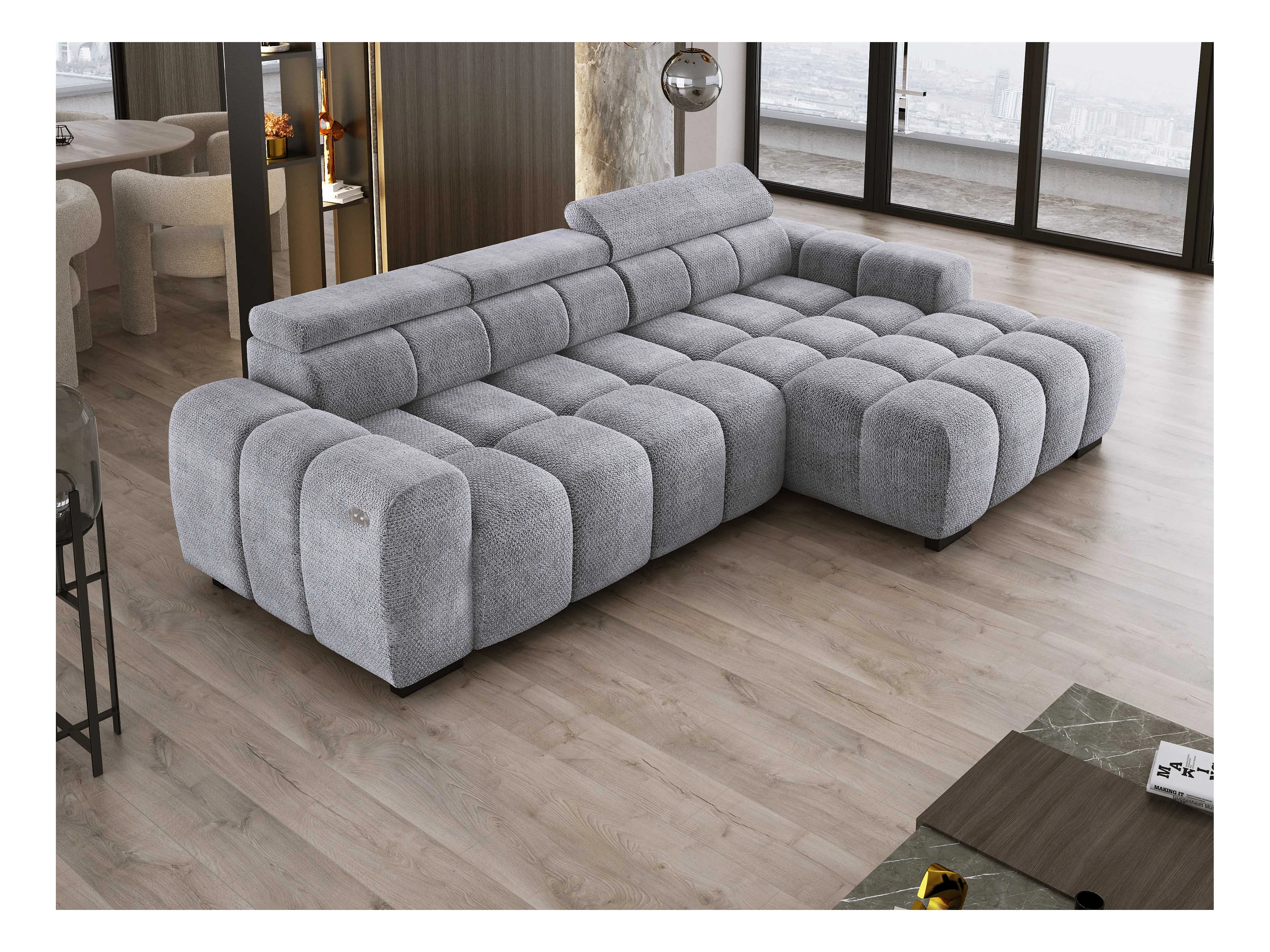 Narożnik Tollo Srebrny Salvador-Tkanina Prawa 302x217x105 cm, Sofa L z funkcją spania, pojemnik 120x85x17 cm, elektryczna regulacja