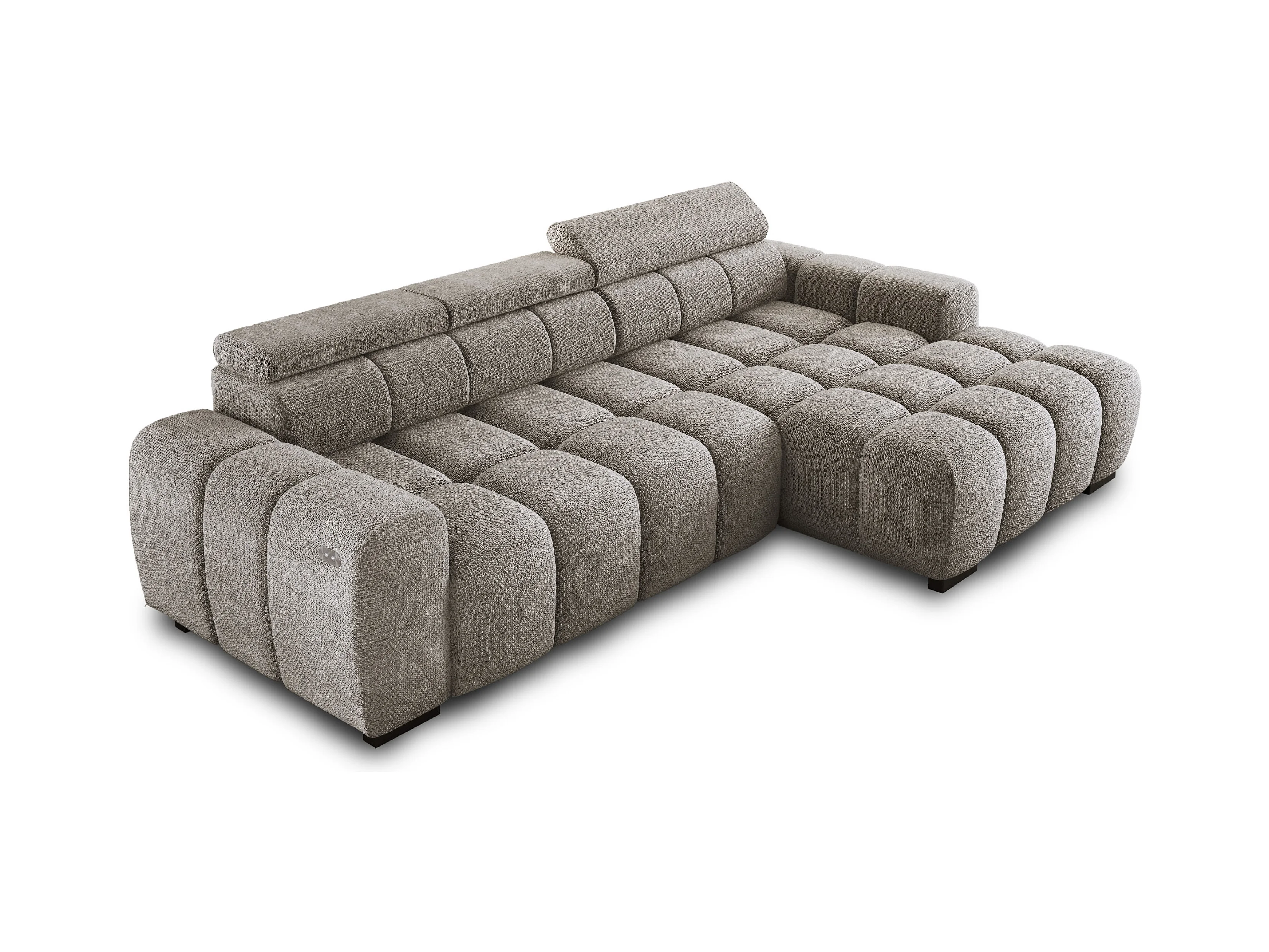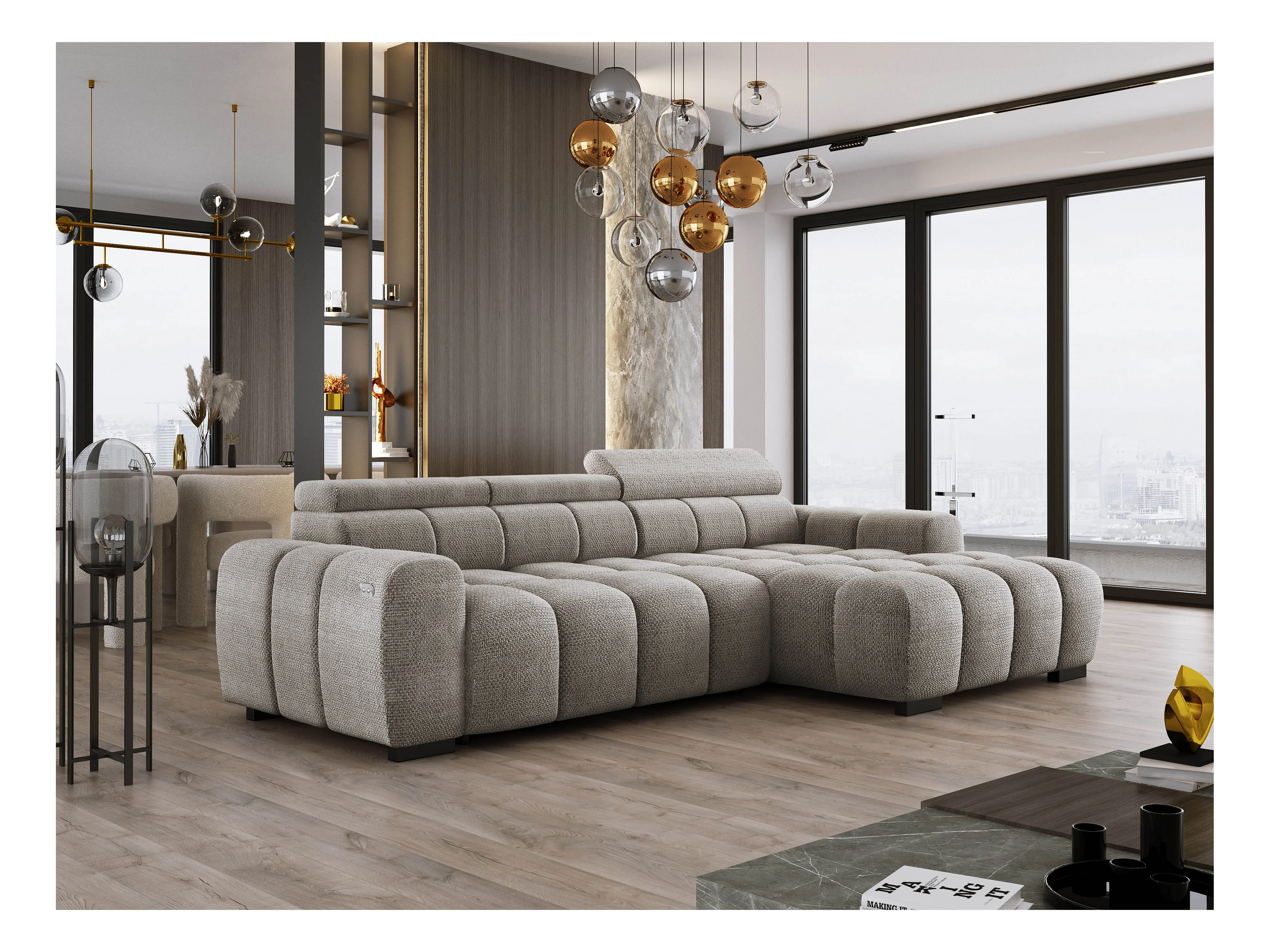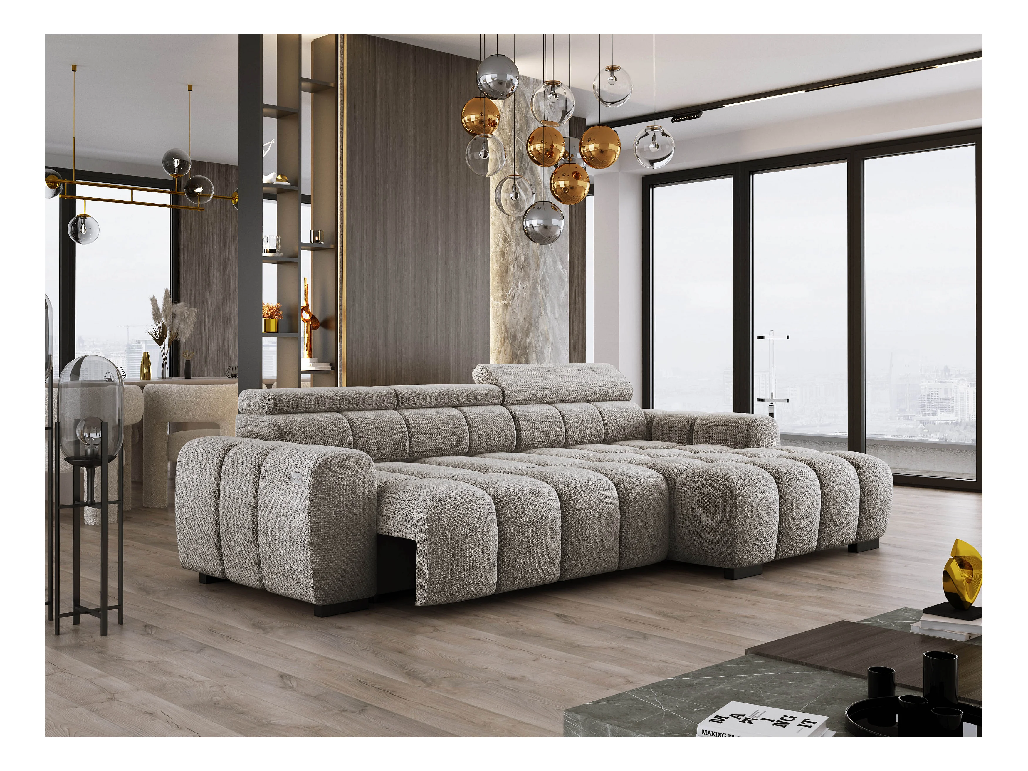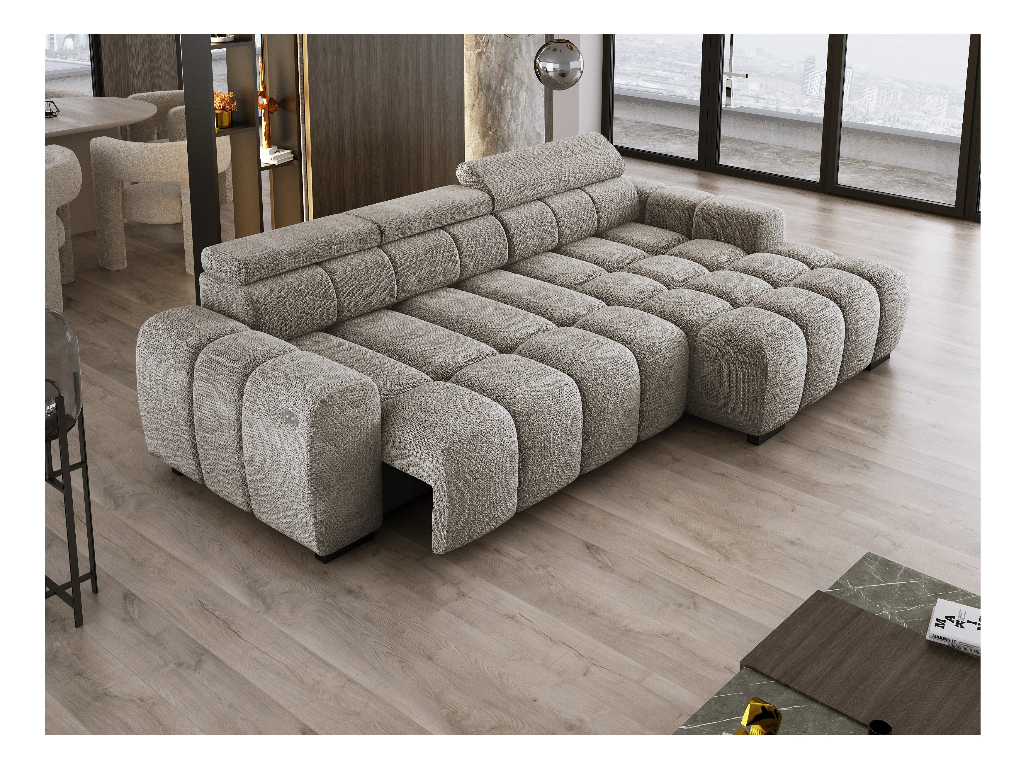 Narożnik BABU z funkcją spania – nowoczesna sofa do salonu, materiał NOW OR NEVER, 300x105x60 cm, prawa strona, SZARY
