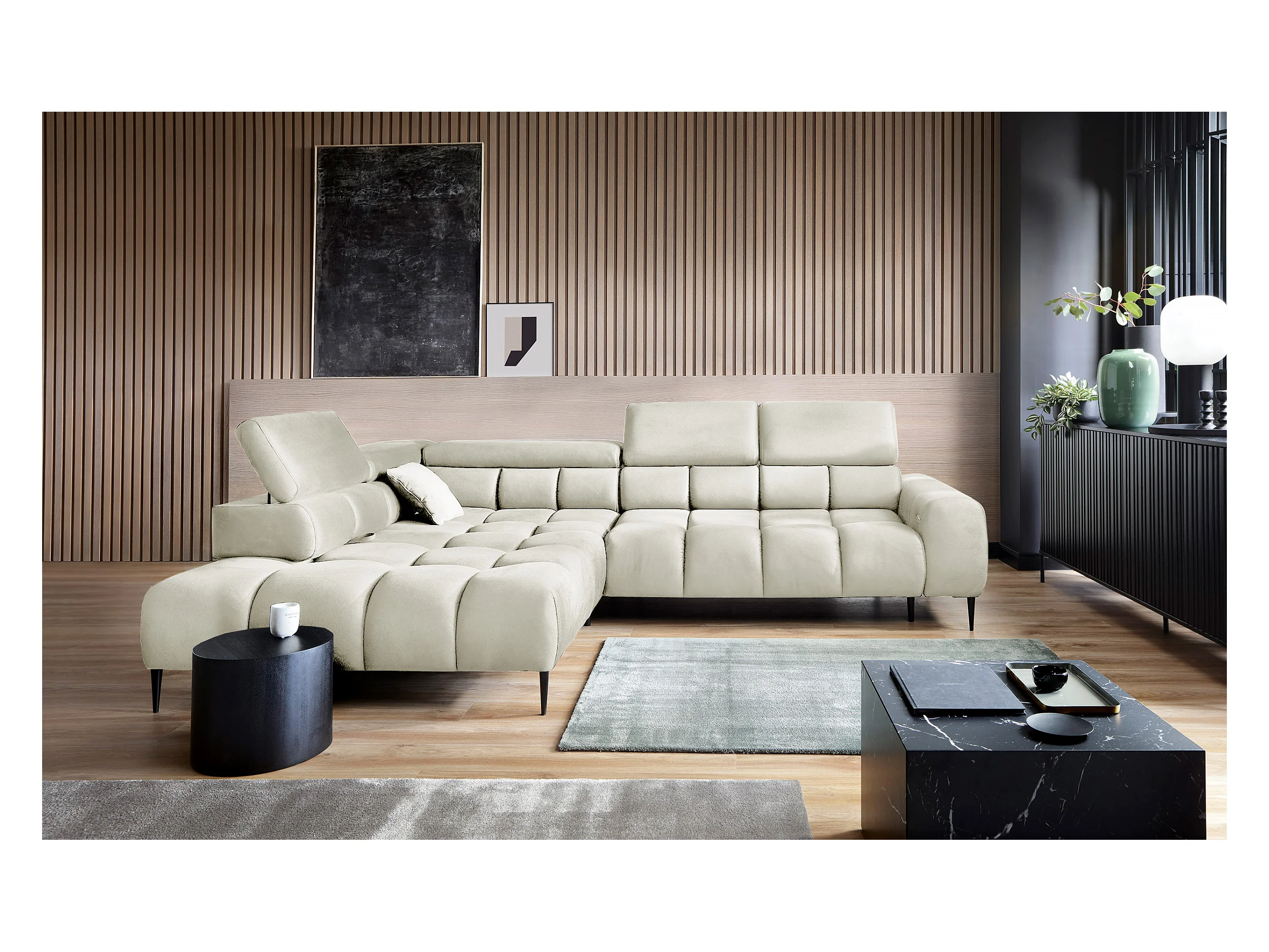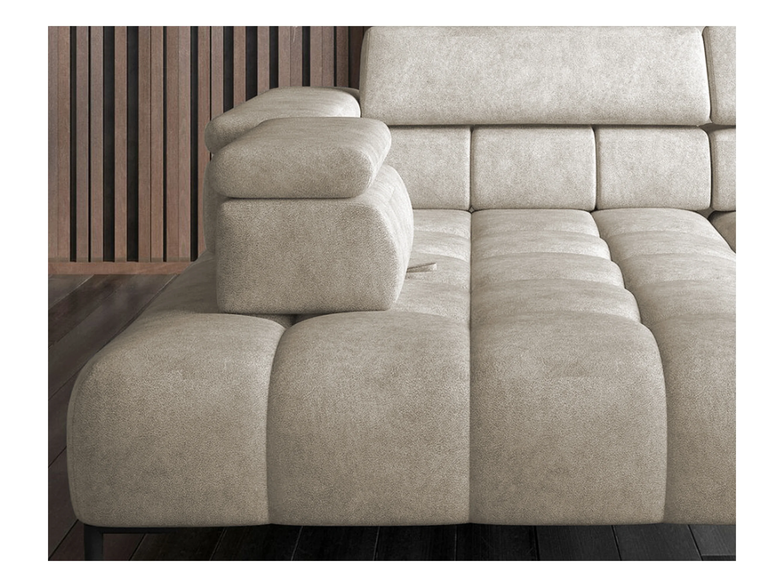 Narożnik PLAZA-L Prawy Funkcjonalny Wygodna Funkcja Spania Regulowane Oparcia Regulowany Siedzisko System Sprężyn 300x216x99cm Beżowy