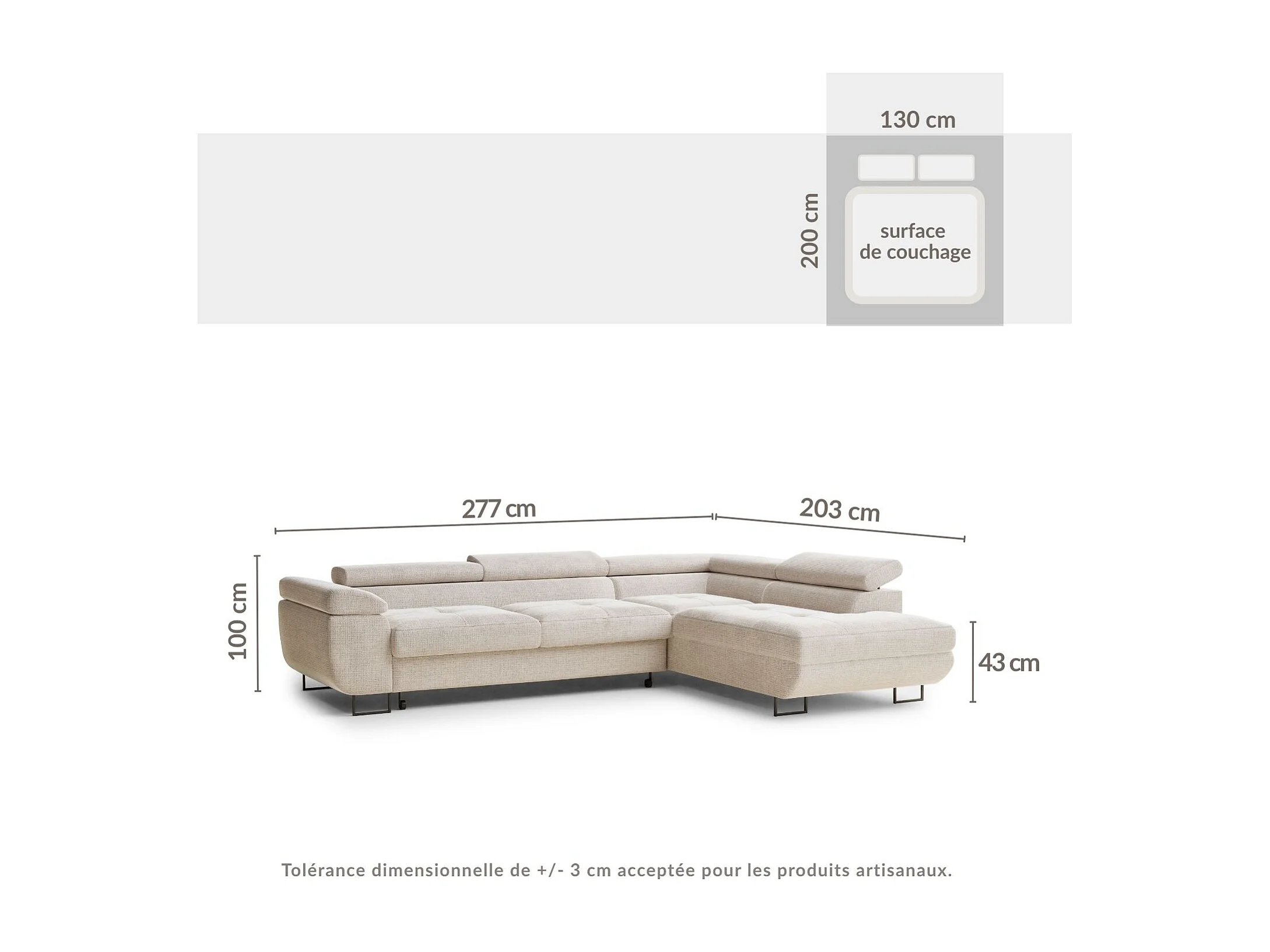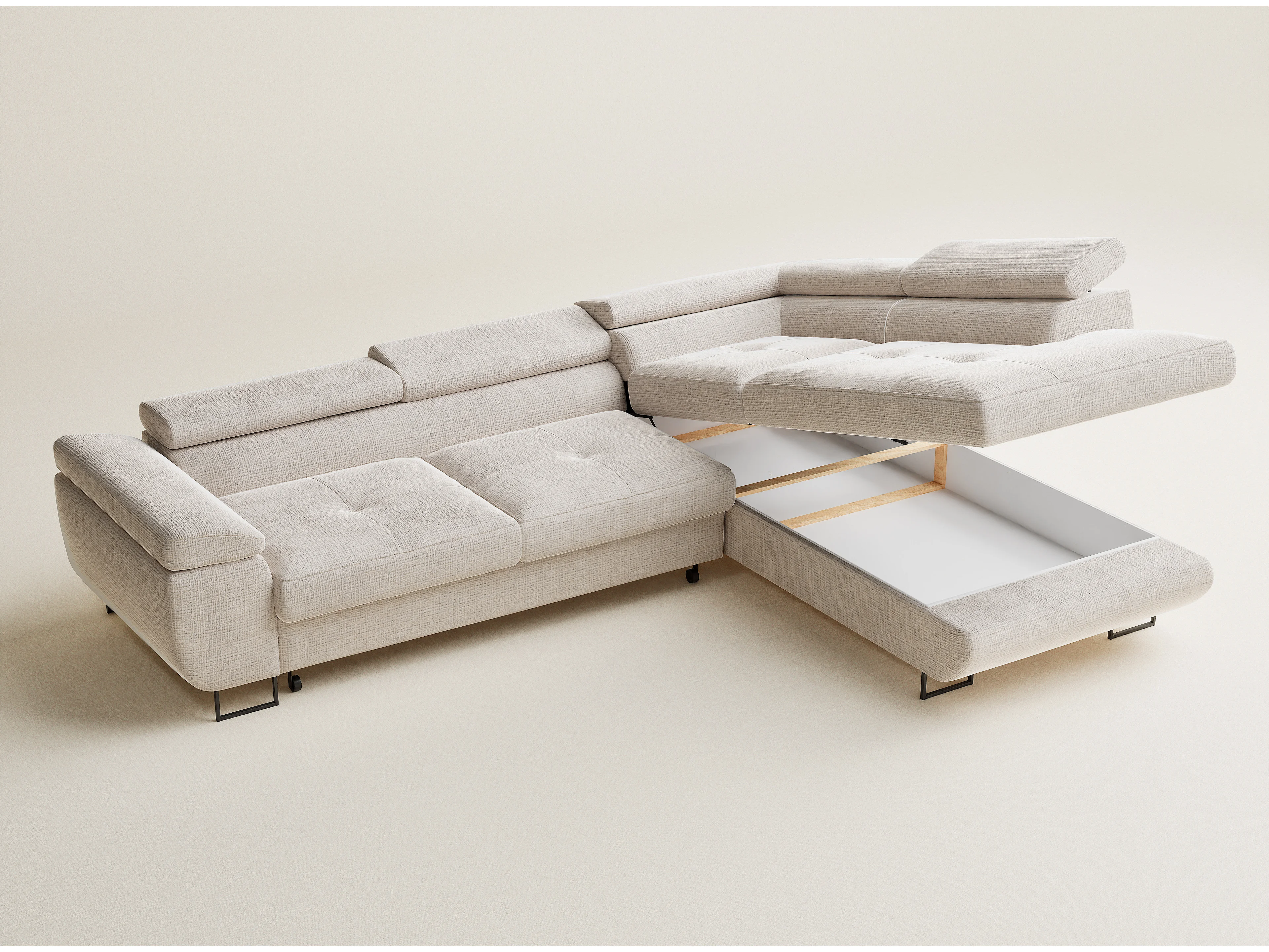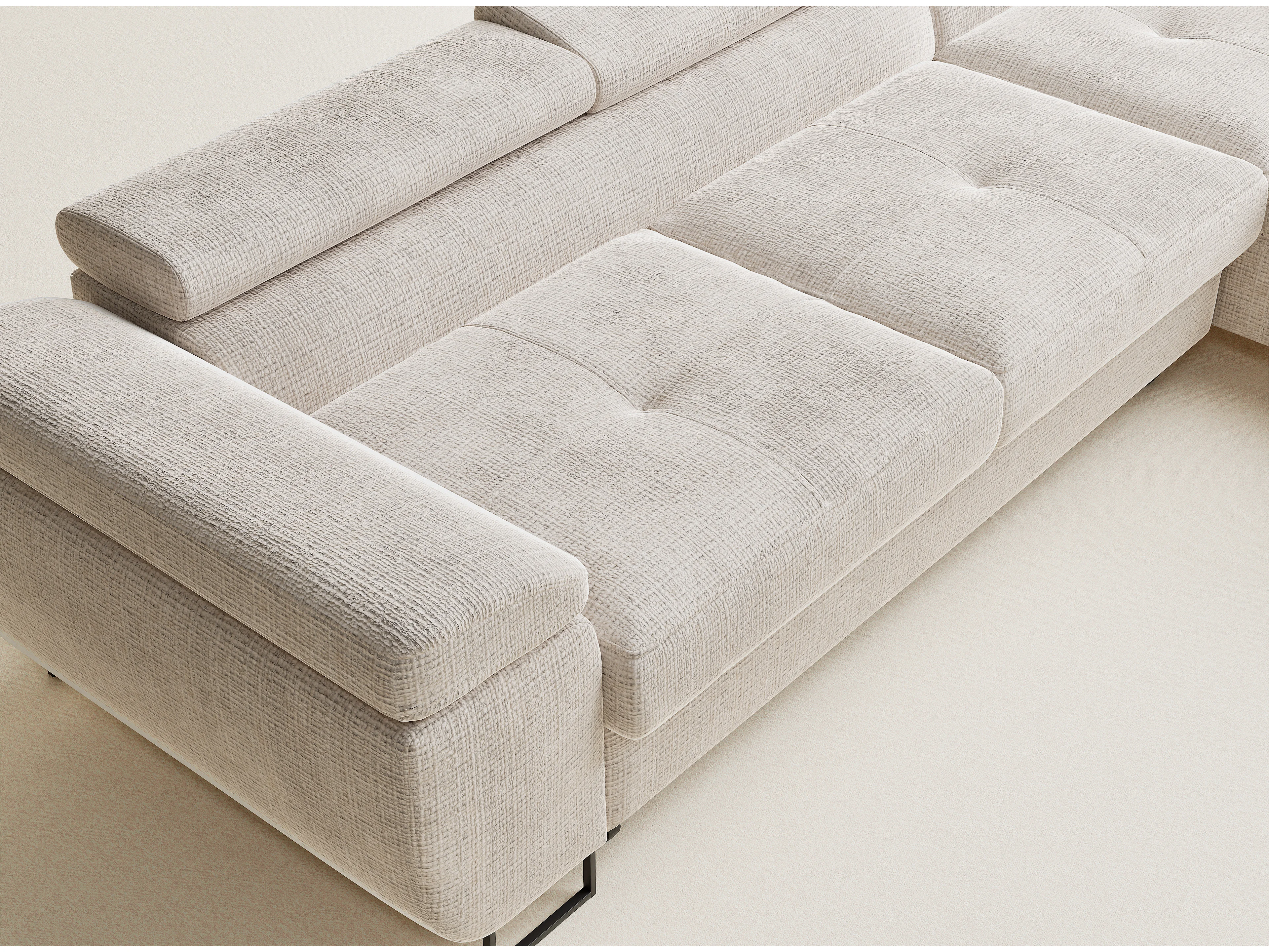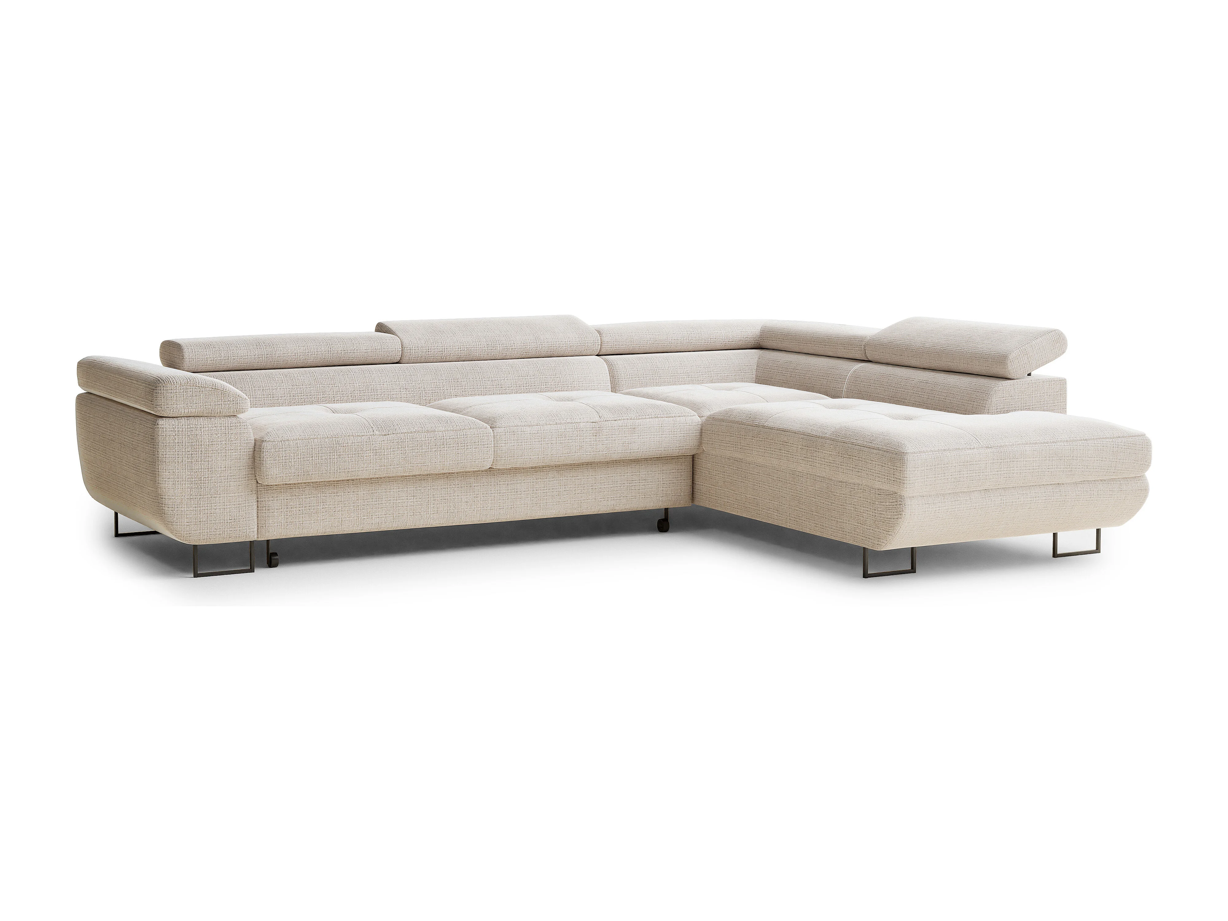 Narożnik prawostronny 4-osobowy rozkładany w tkaninie szenilowej - kremowy - CONCORD