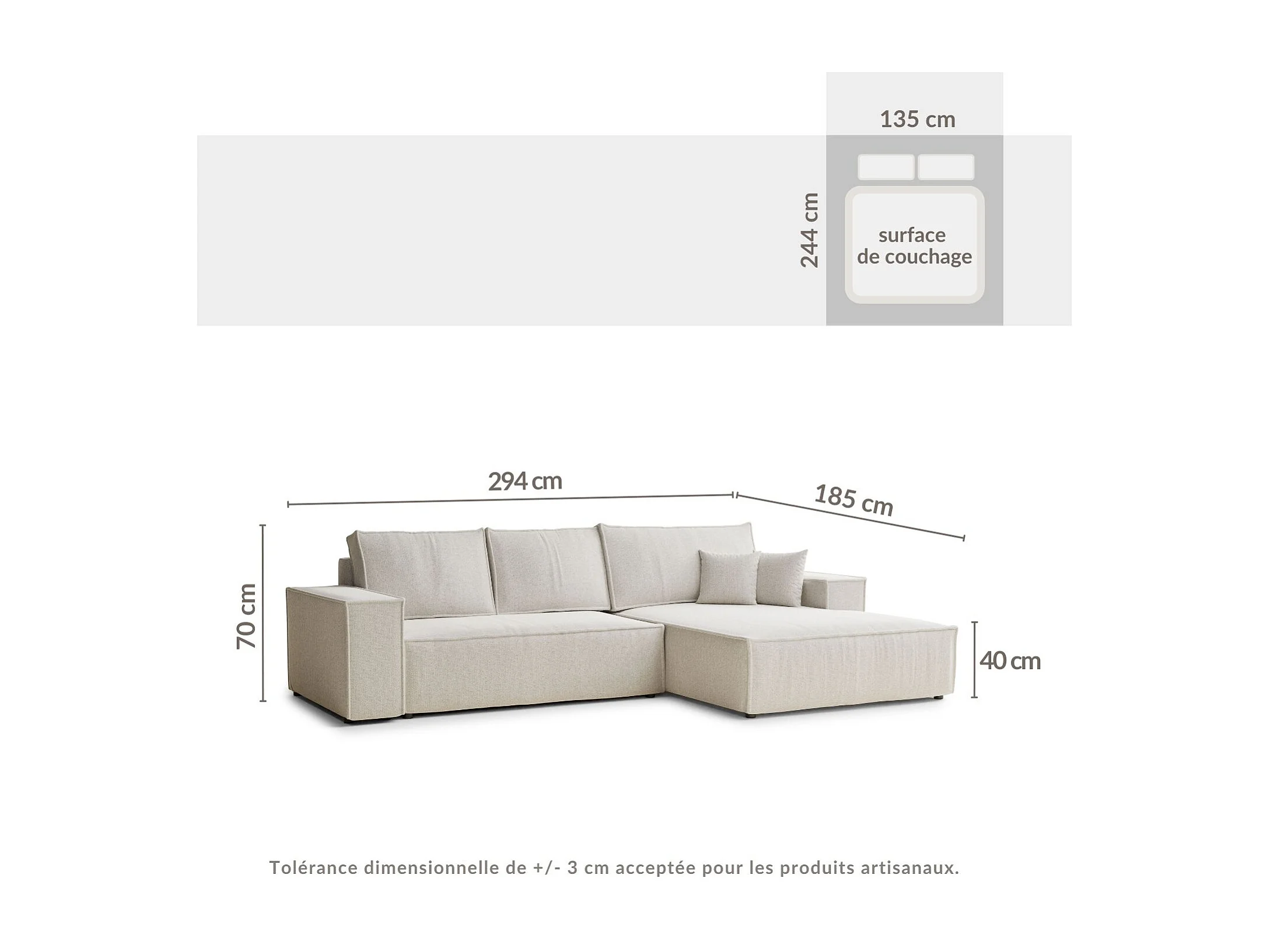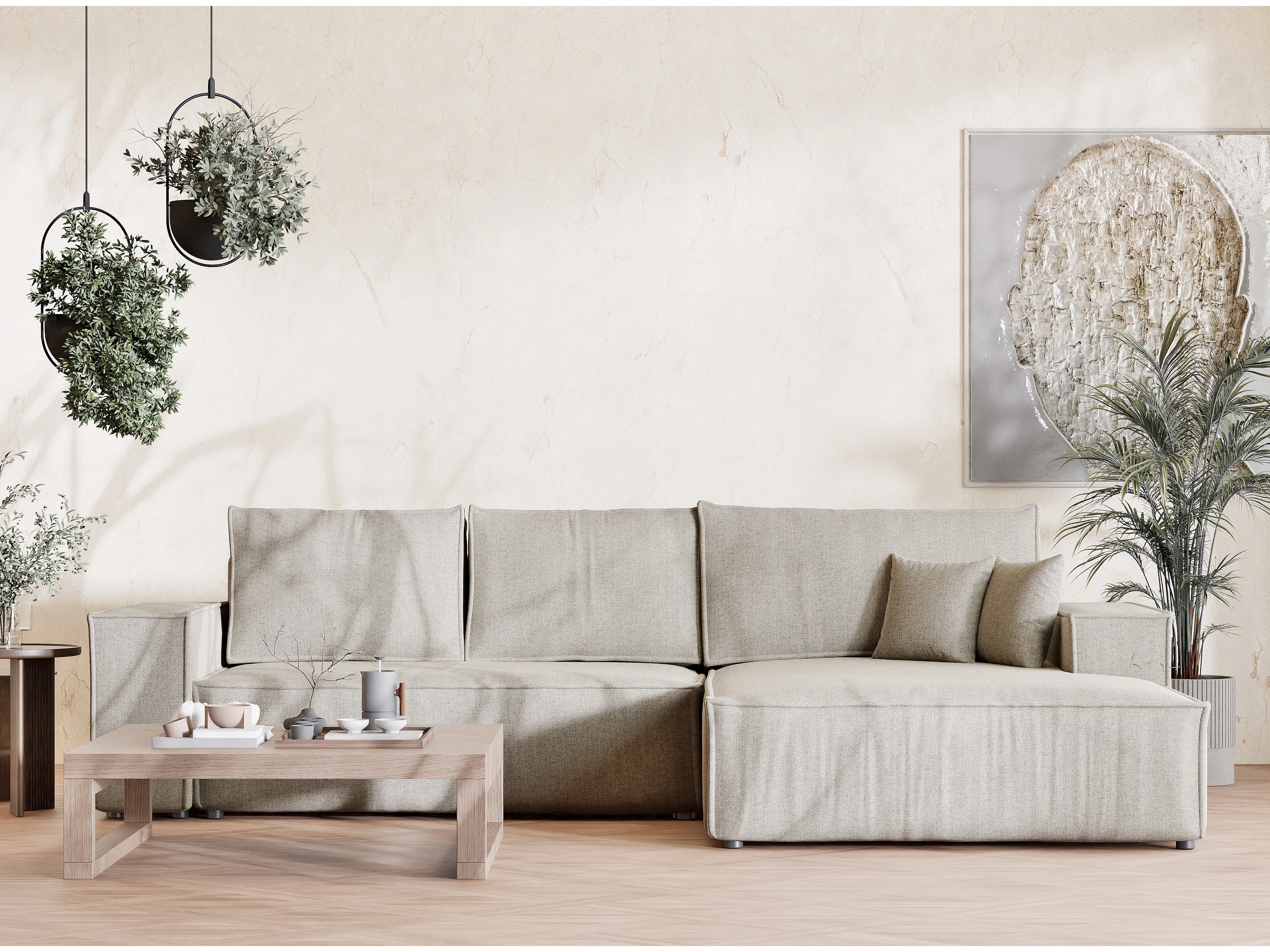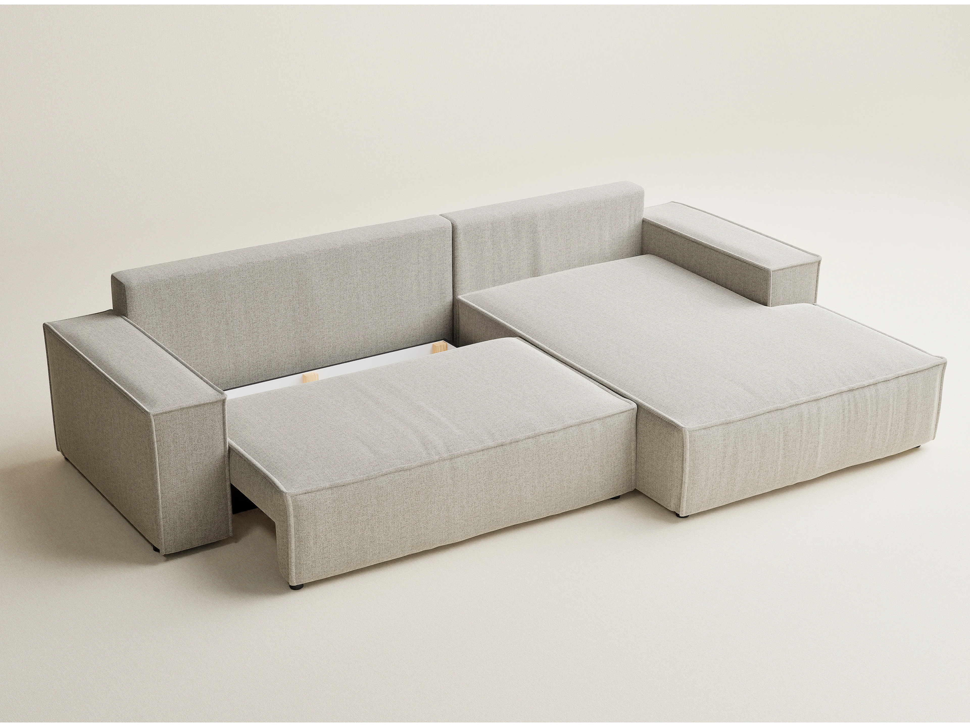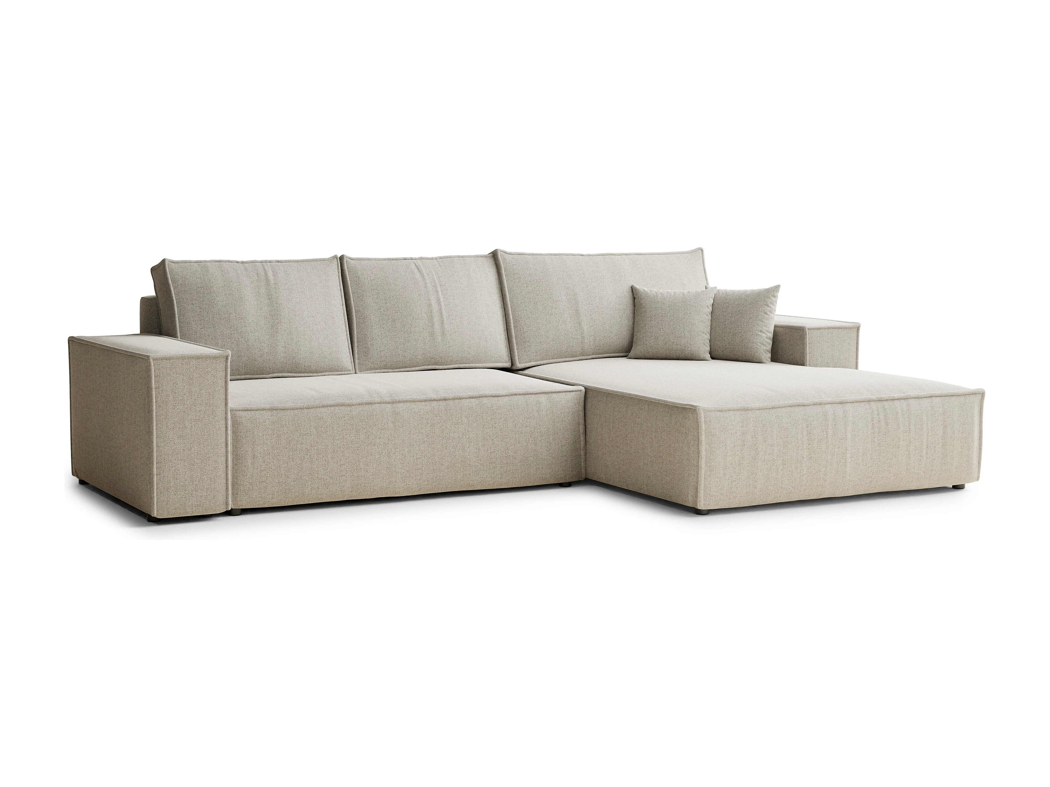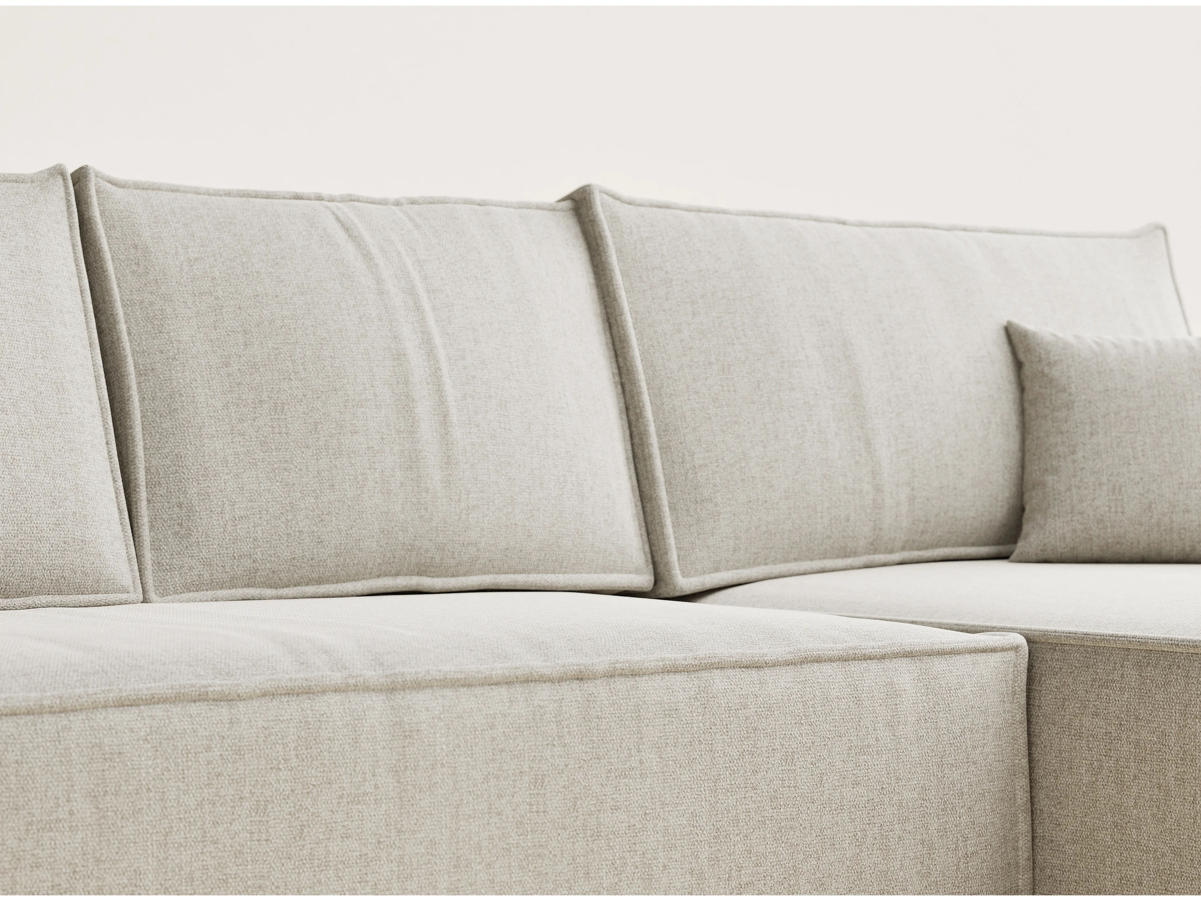 Narożnik prawostronny 5-osobowy rozkładany w tkaninie plecionej - beżowy - MAZE