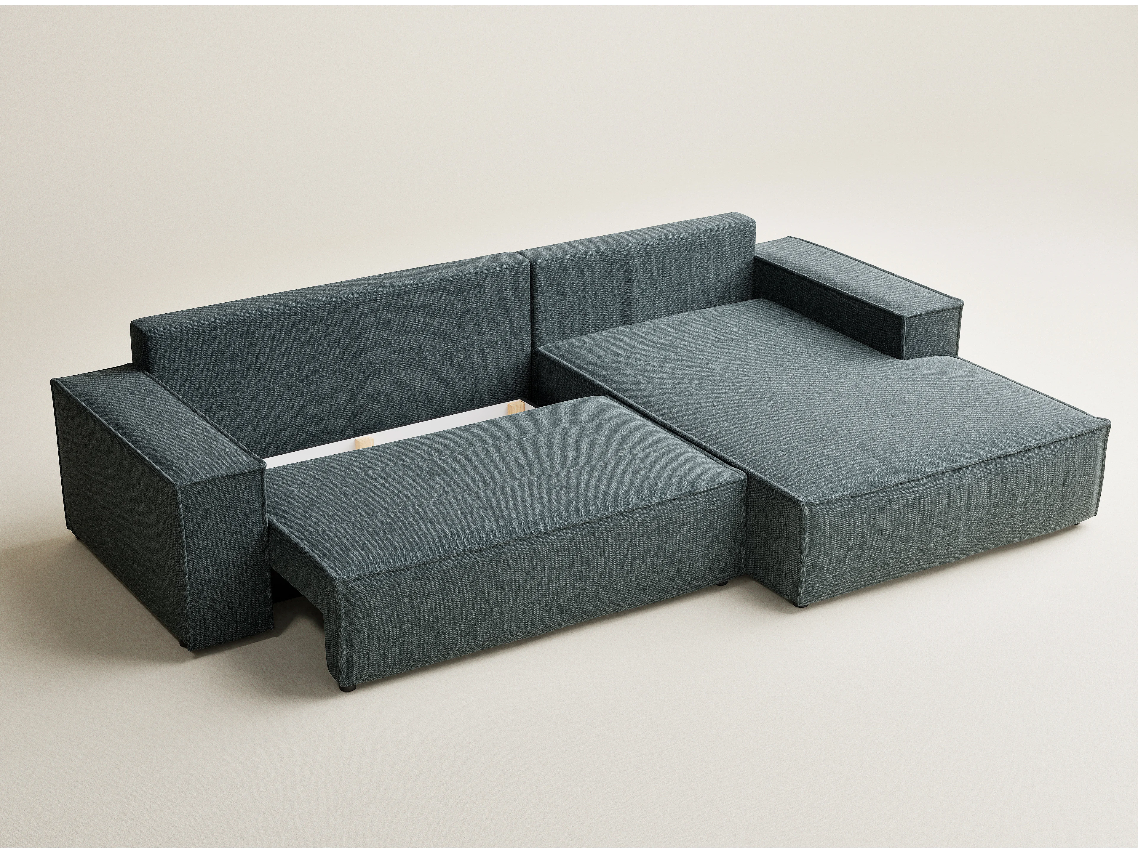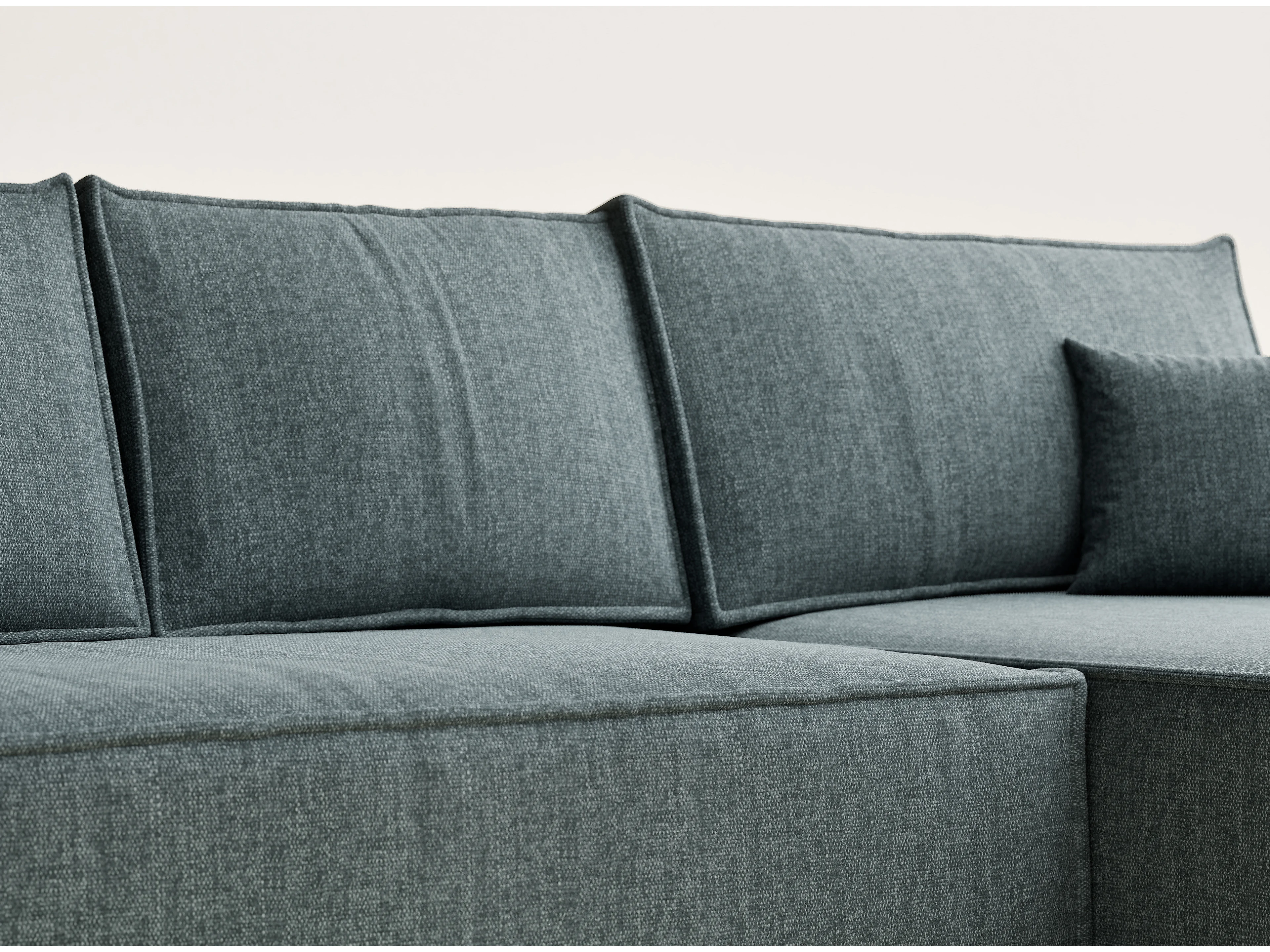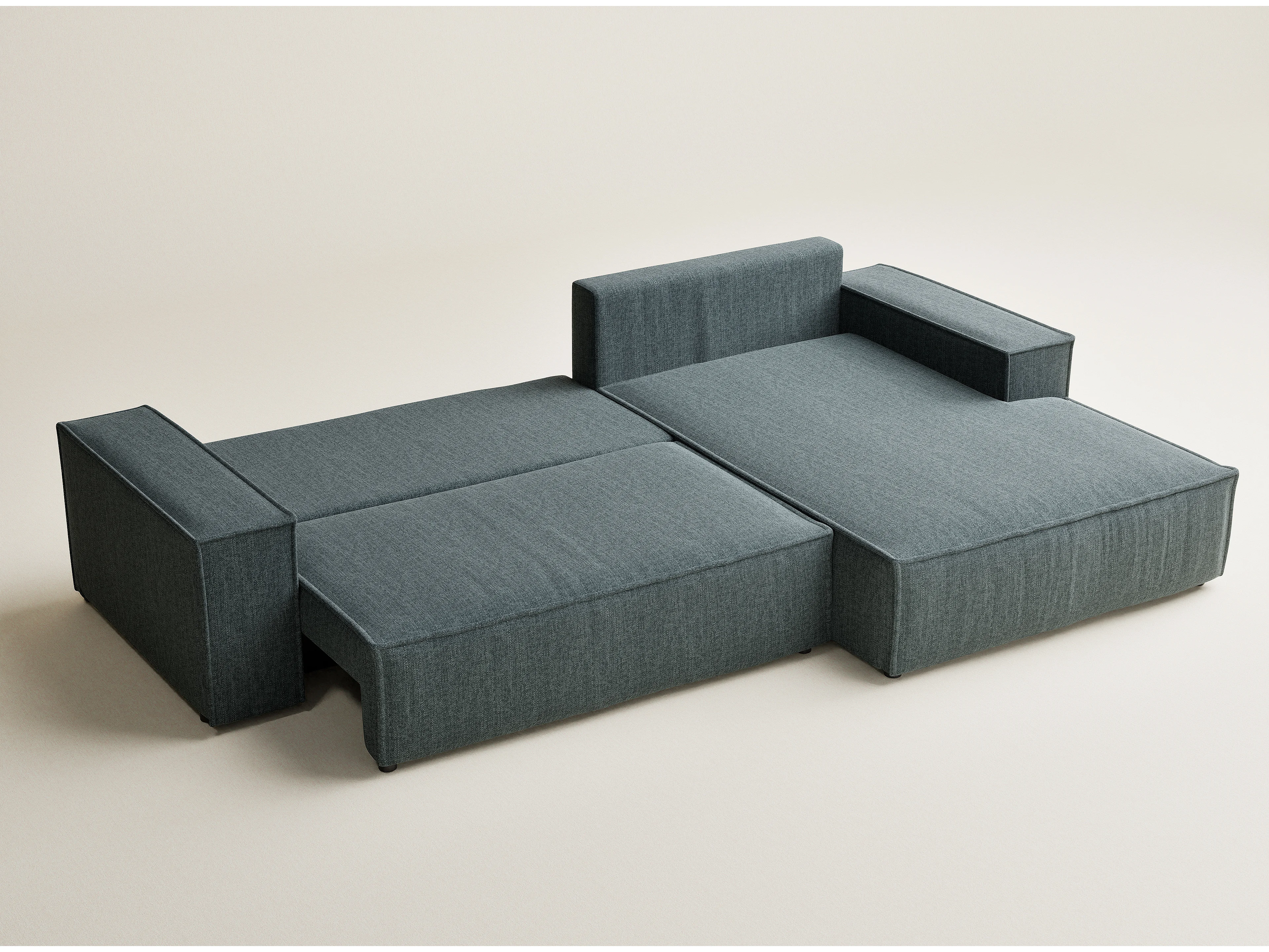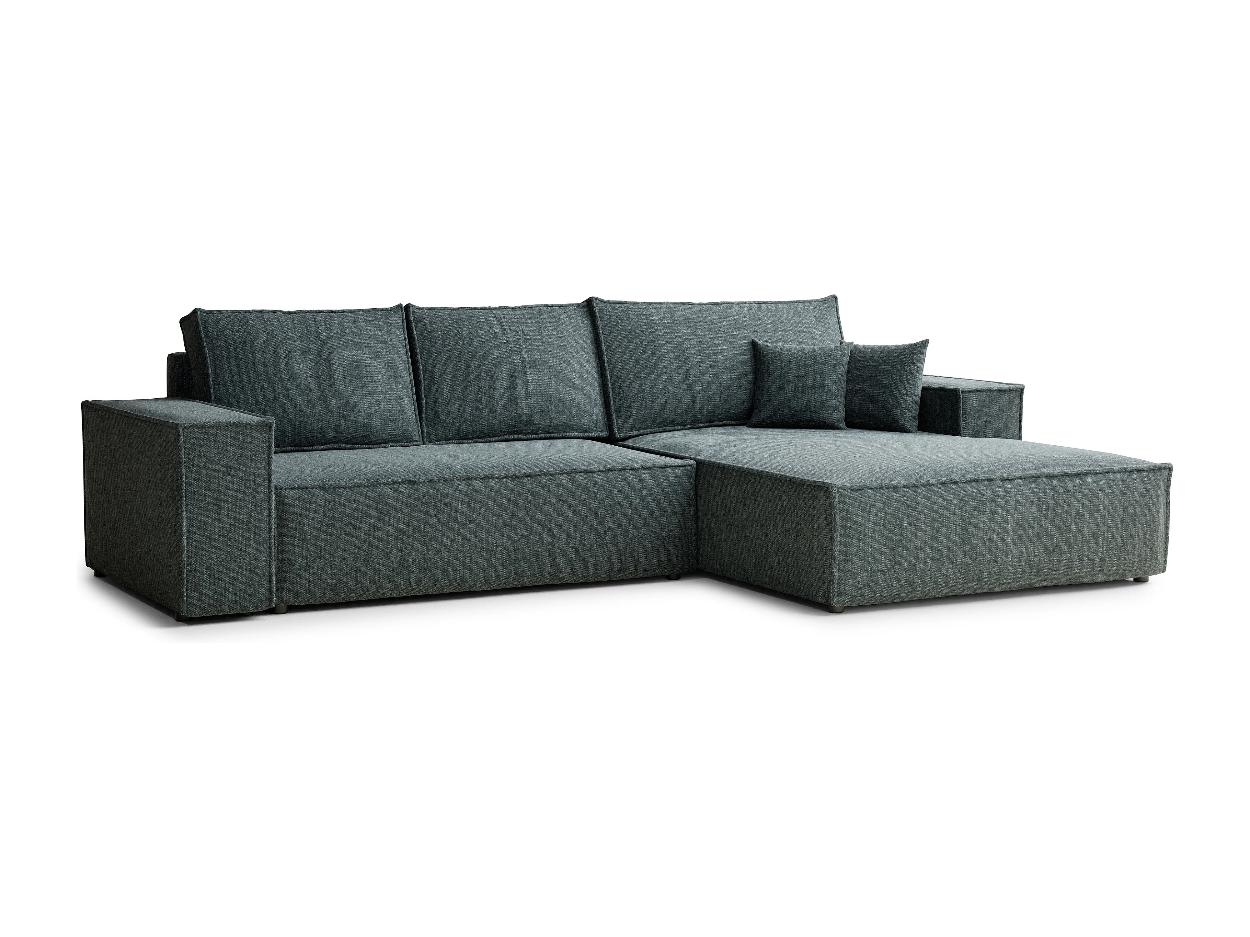 Narożnik prawostronny 5-osobowy rozkładany w tkaninie plecionej - niebieski - MAZE