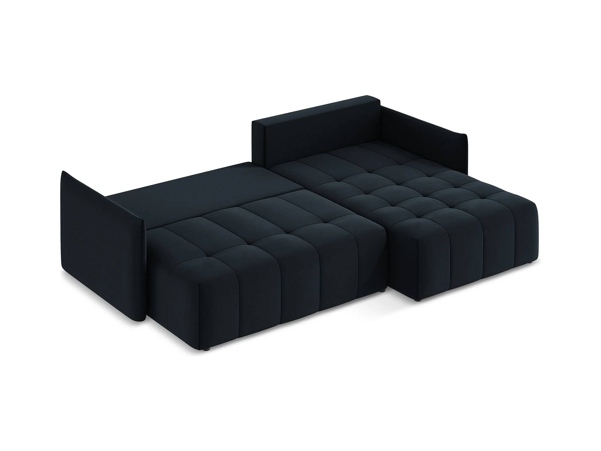 Narożnik prawostronny z funkcją spania - z tkaniny welwetowej - morski - MOKU