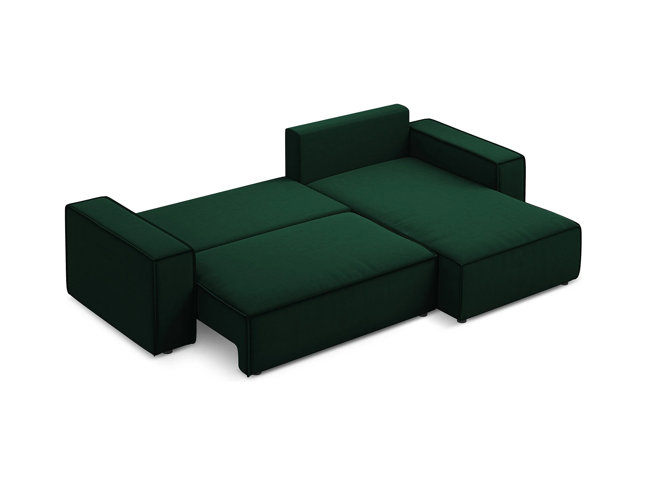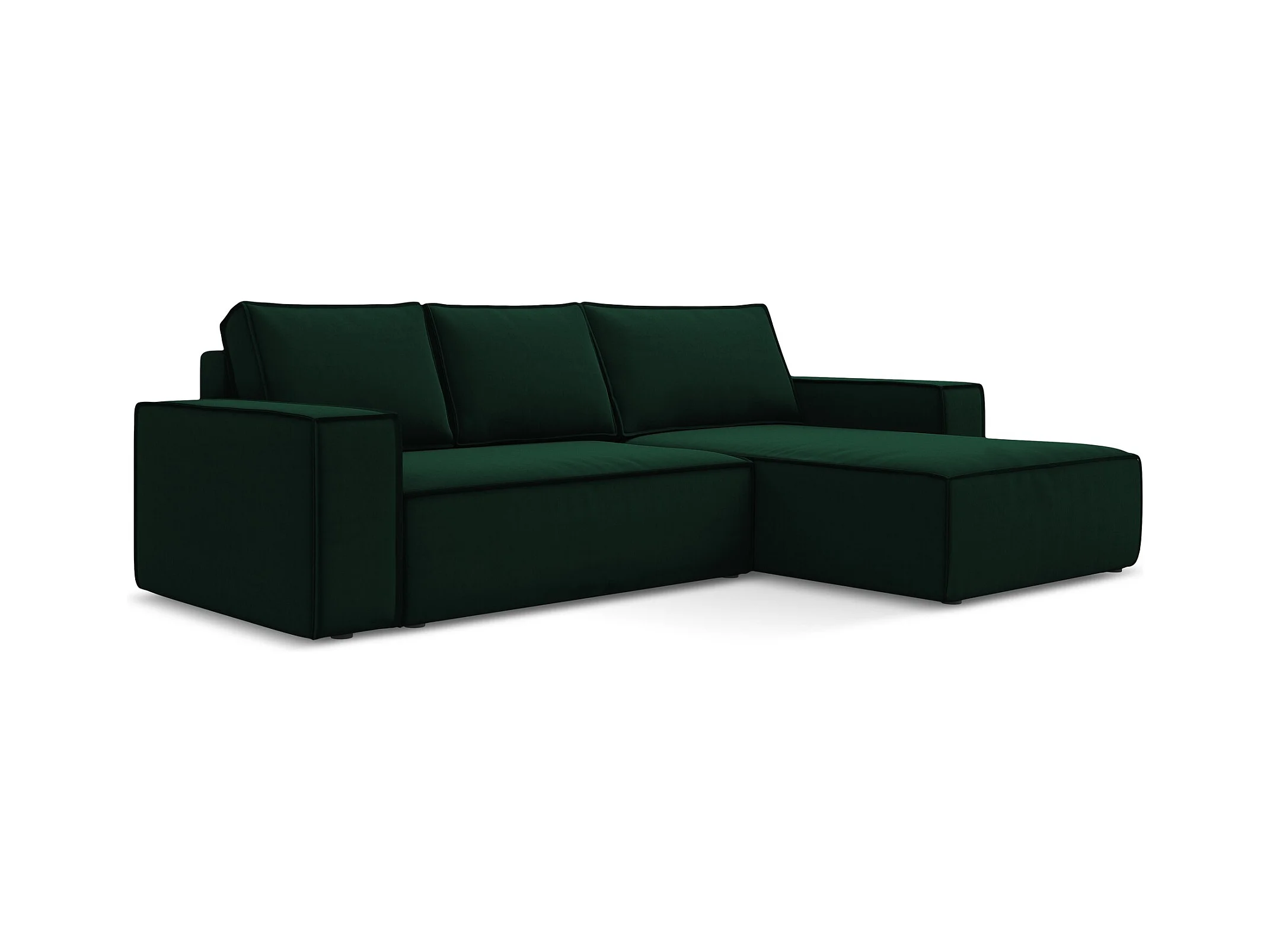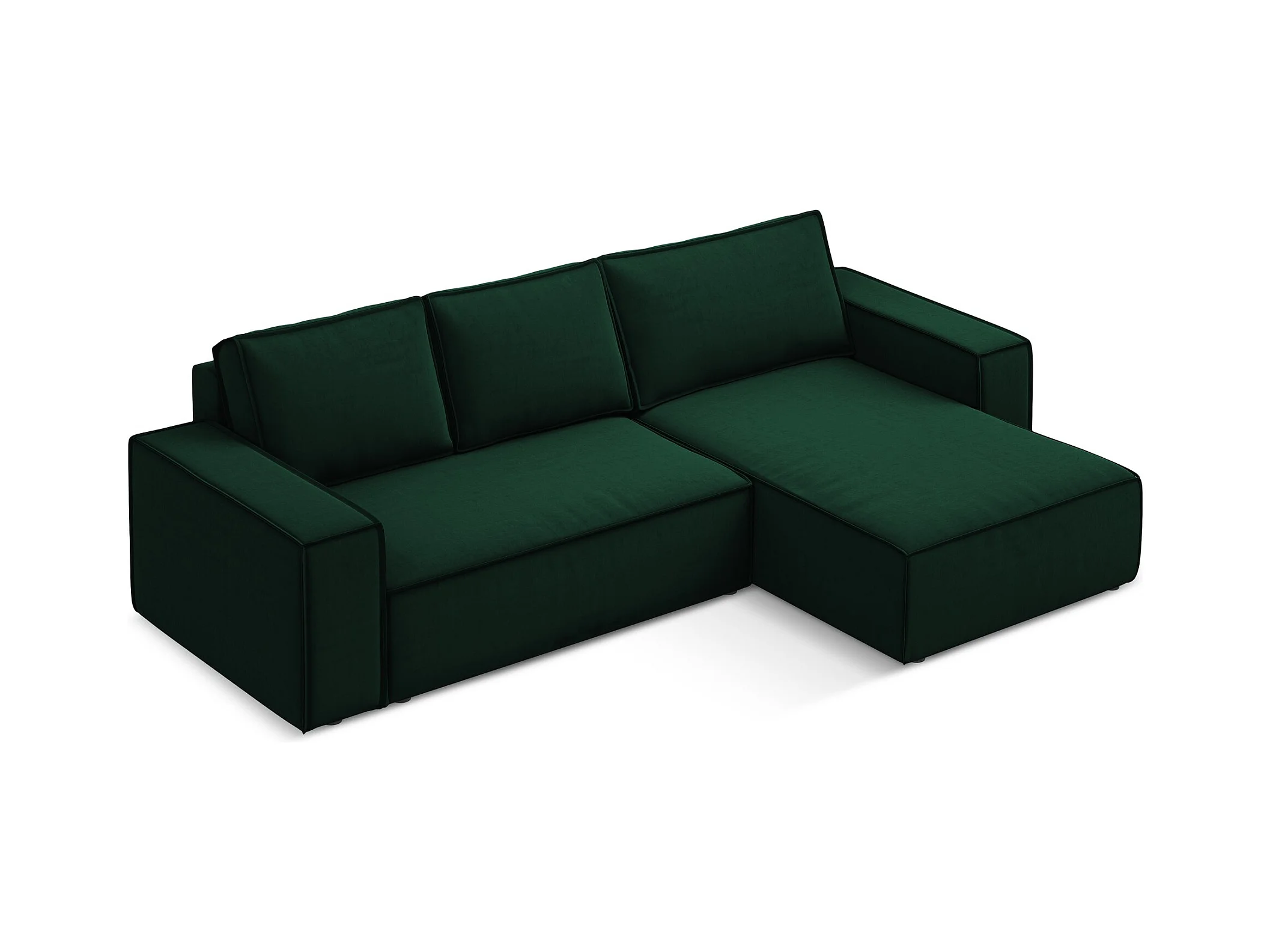 Narożnik prawostronny z funkcją spania - z tkaniny welwetowej - butelkowa zieleń - KIMO