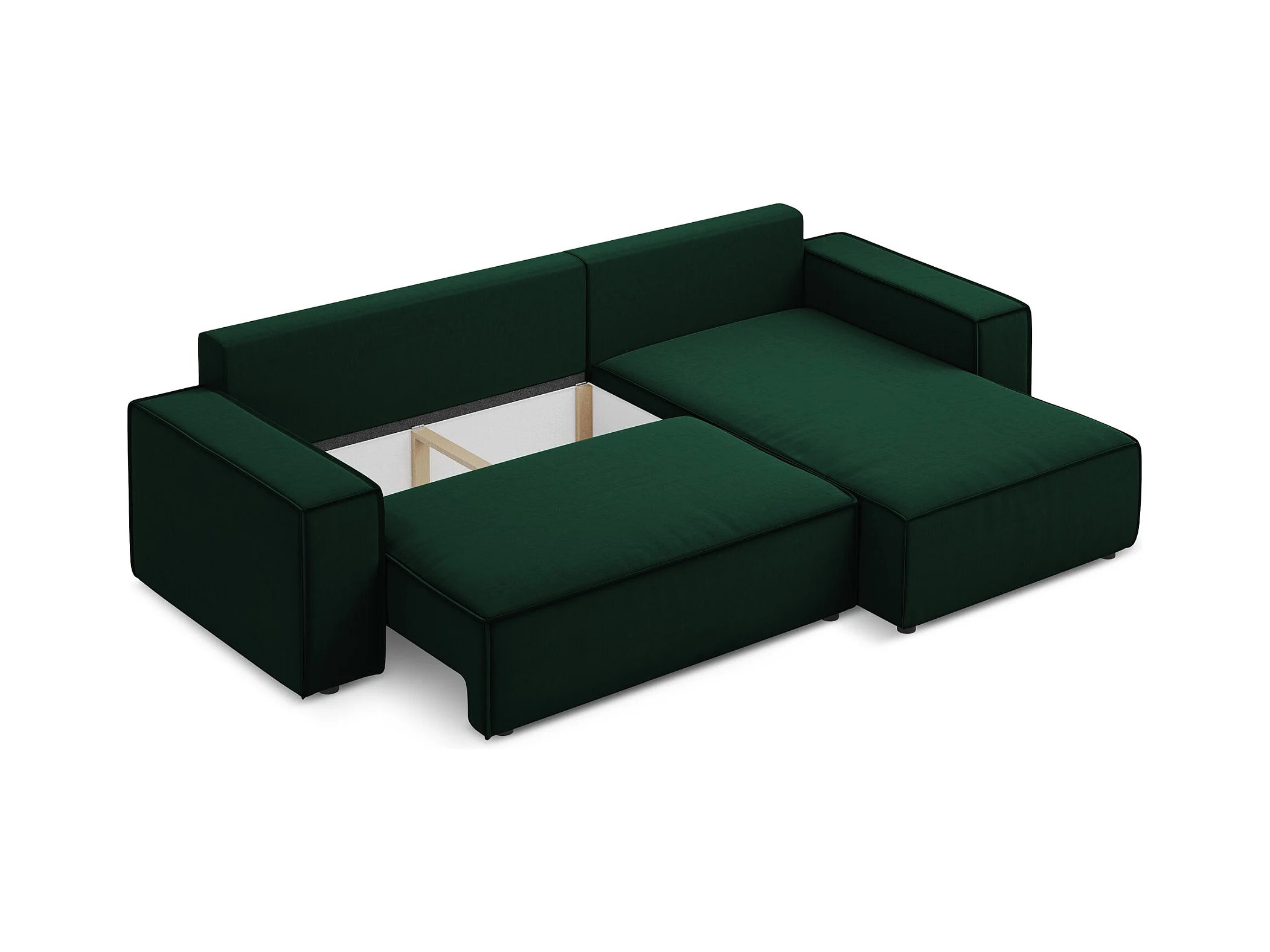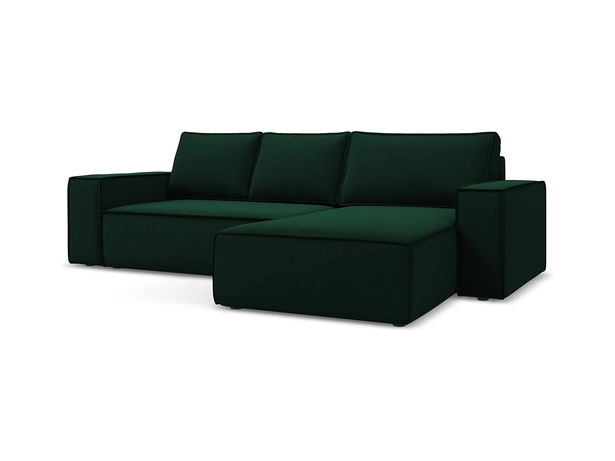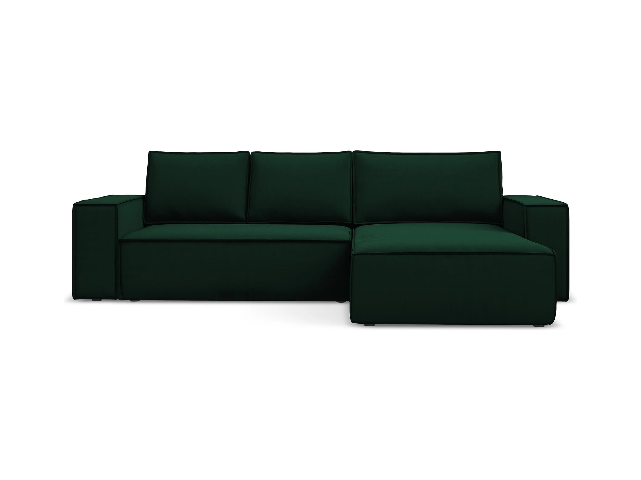 Narożnik prawostronny z funkcją spania - z tkaniny welwetowej - butelkowa zieleń - KIMO