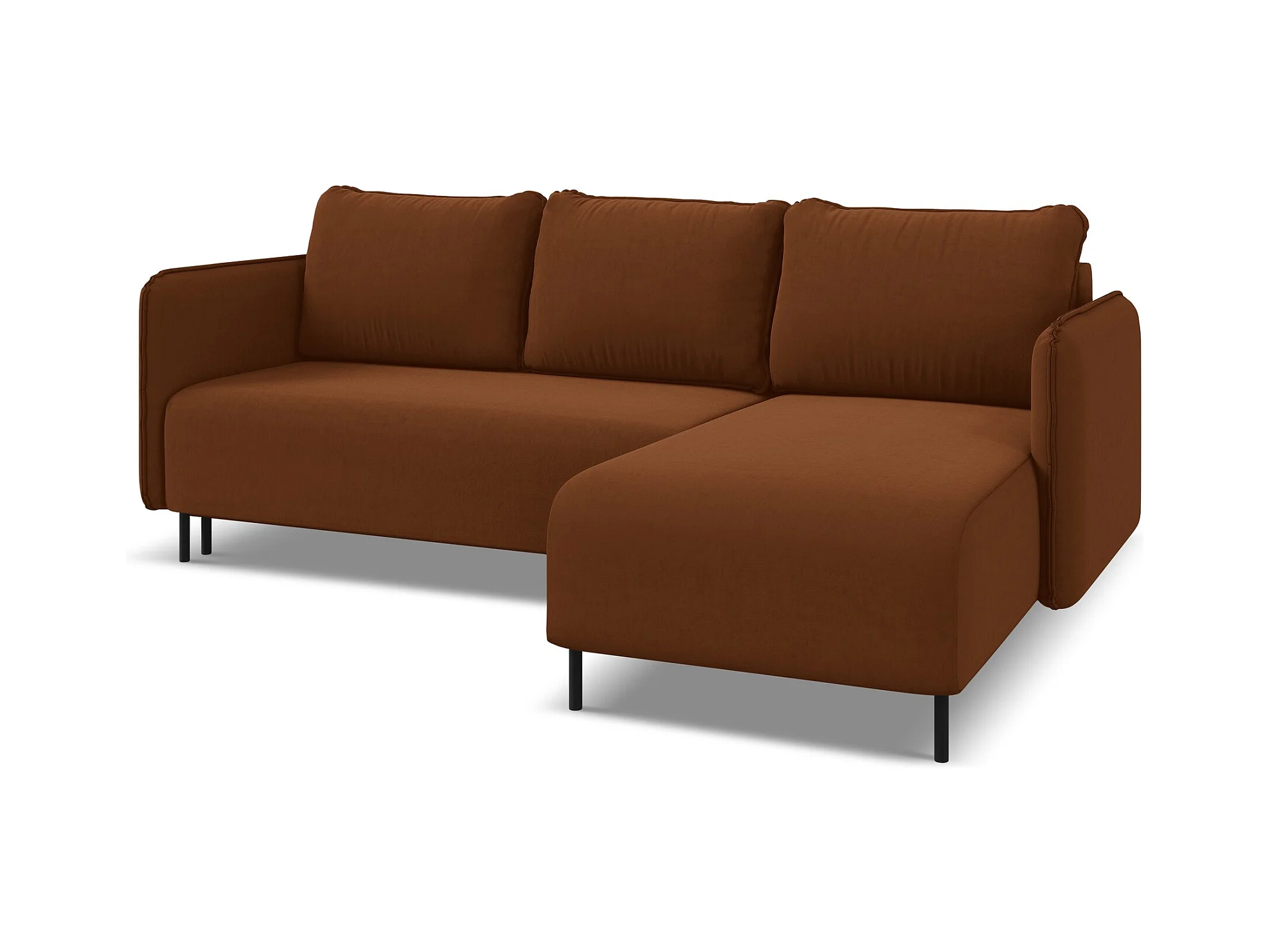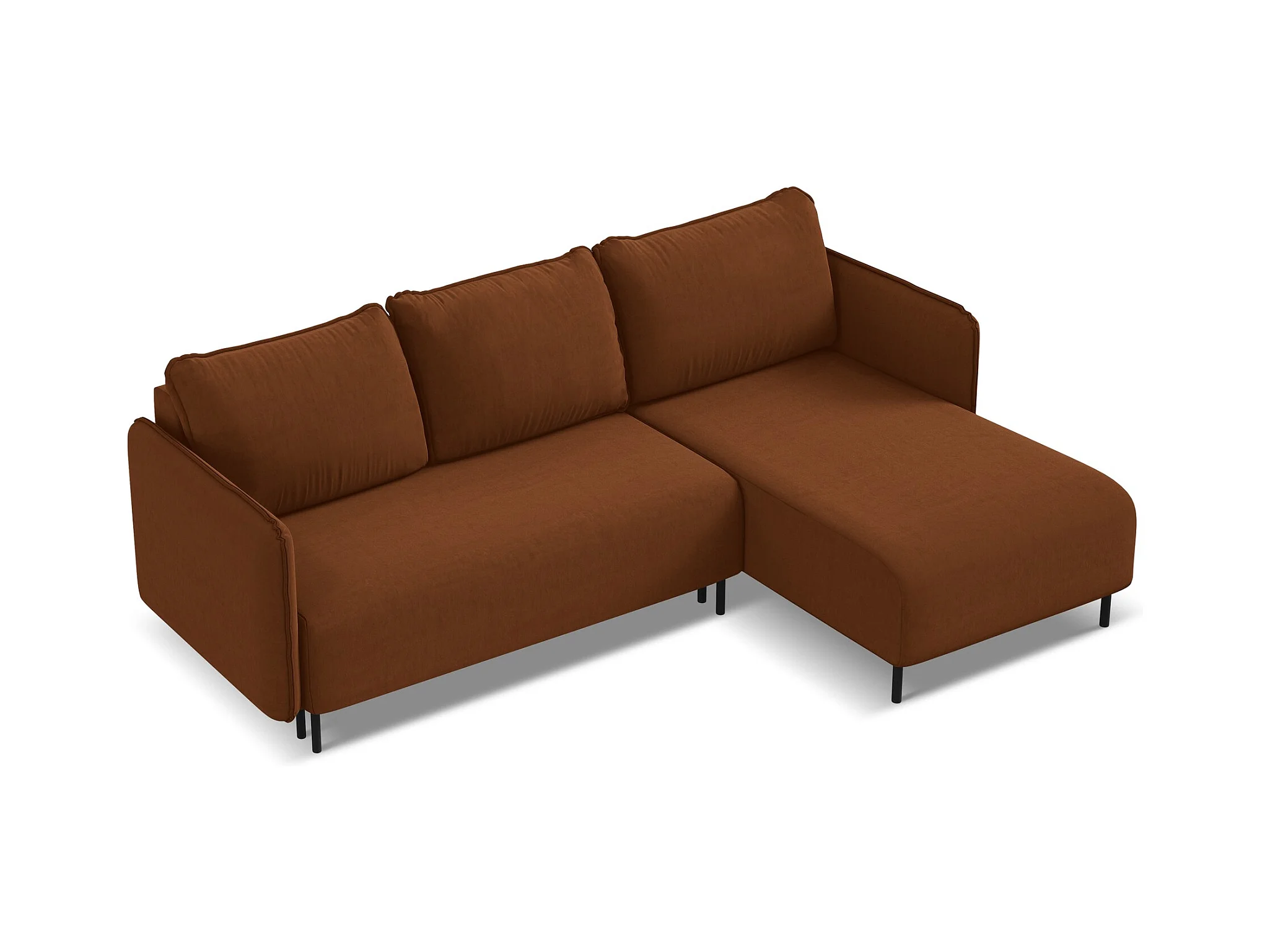 Narożnik prawostronny z funkcją spania - z tkaniny welwetowej - terakota - KAPUA