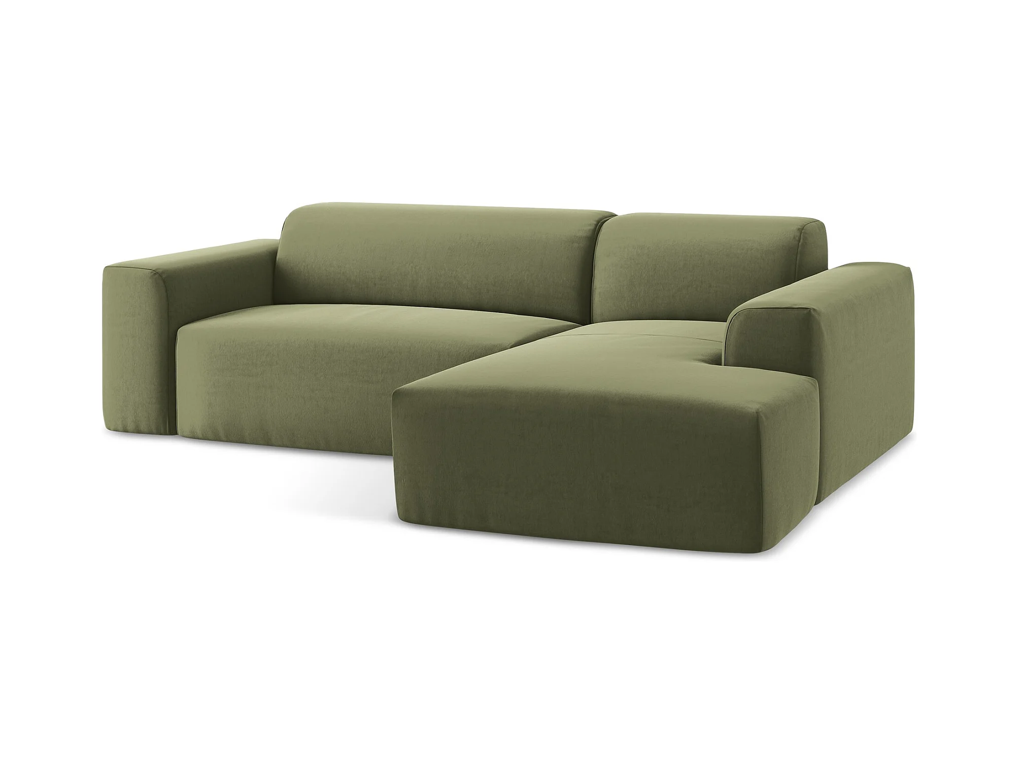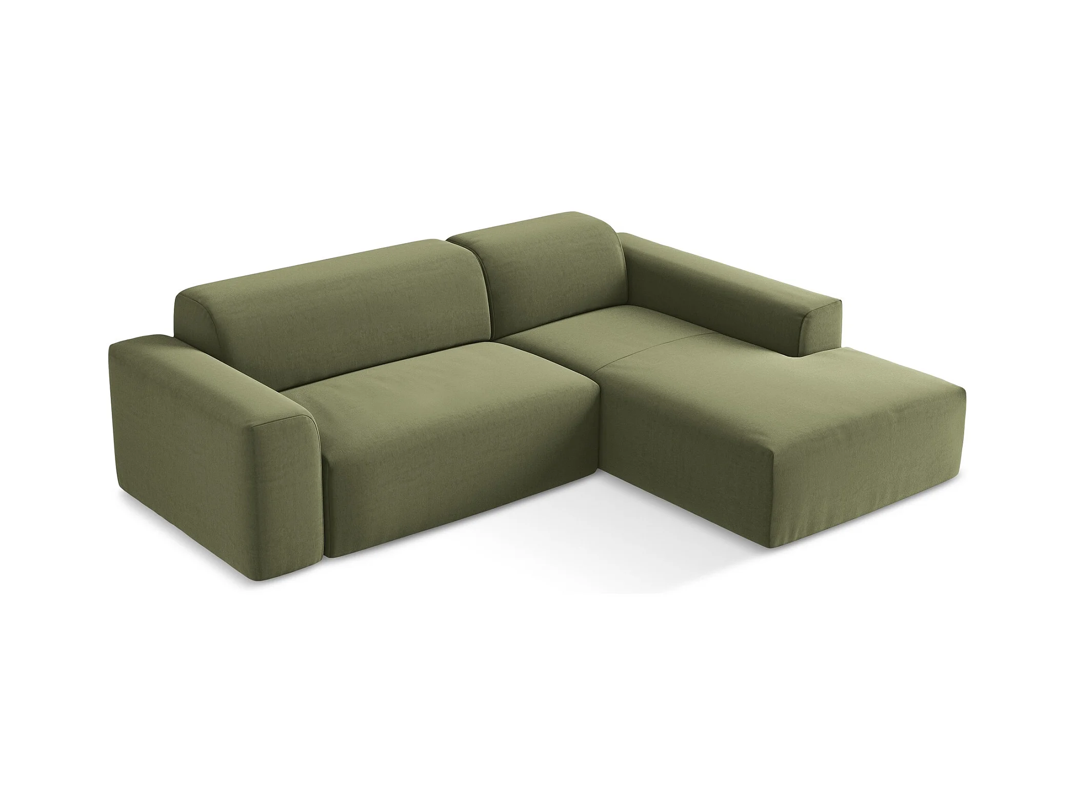 Narożnik prawostronny - z tkaniny welwetowej - oliwkowy - KELI