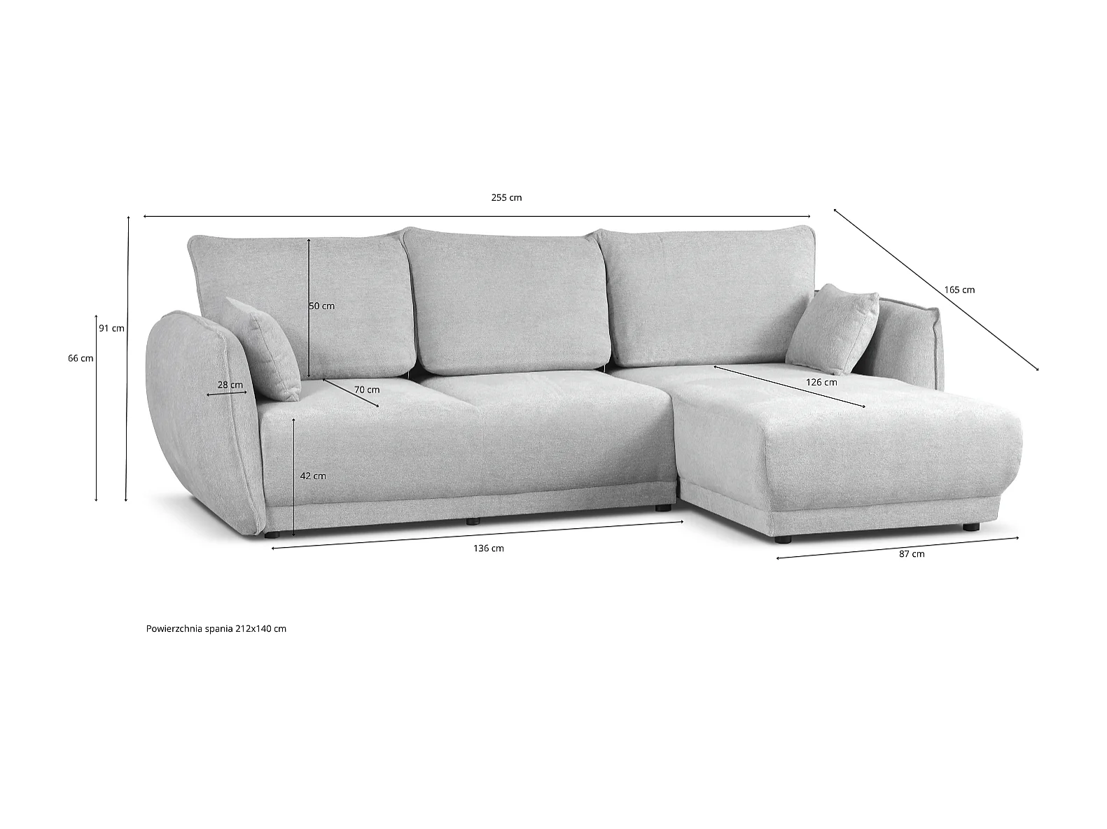 Narożnik prawy Loren z funkcją spania 255x165x91 cm – tkanina Bello 5 kremowa