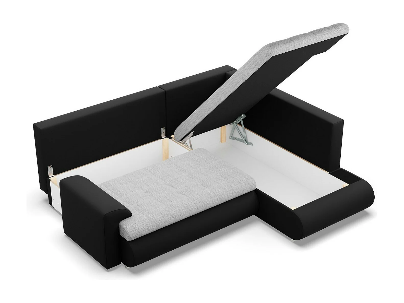 Narożnik prawy z funkcją spania, otomana, szary + czarny