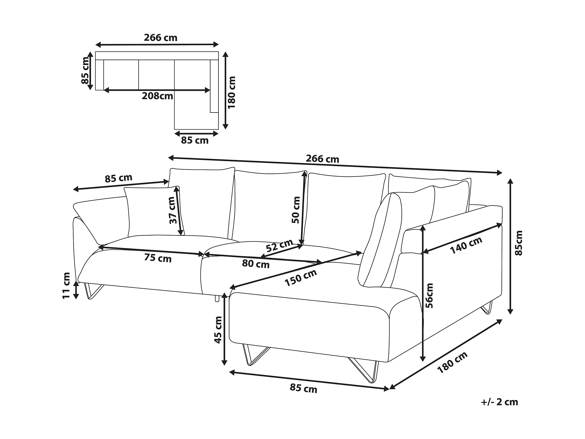Cosmopolitan Design - Narożnik prawy panoramiczny, "Sky" 4 miejsca welur, piasek - 272x162x75cm
