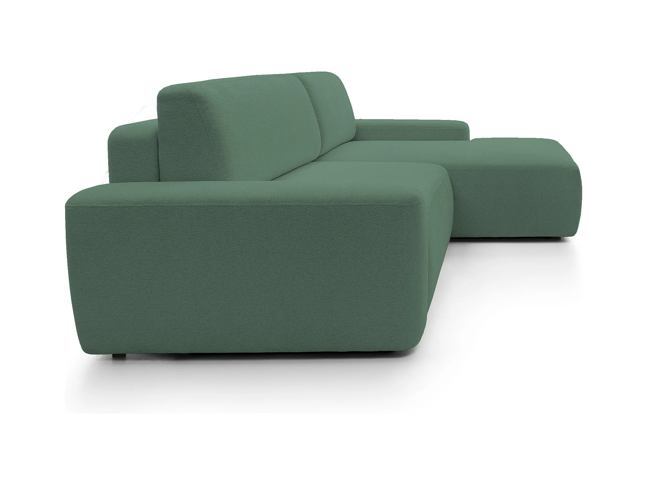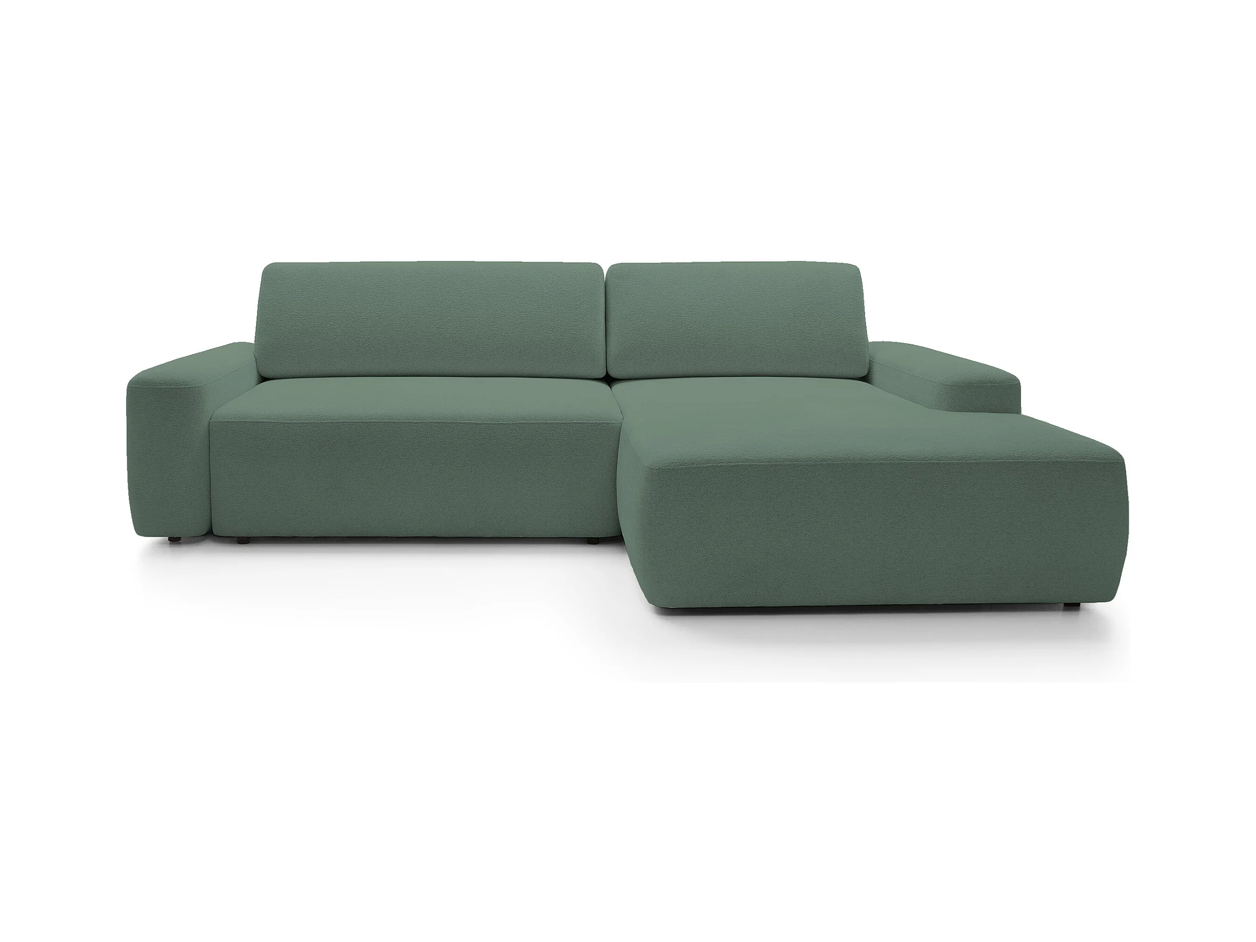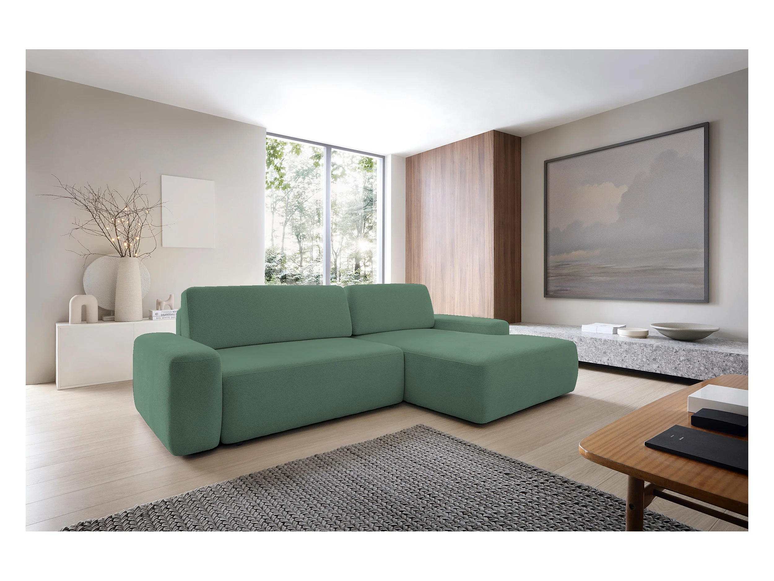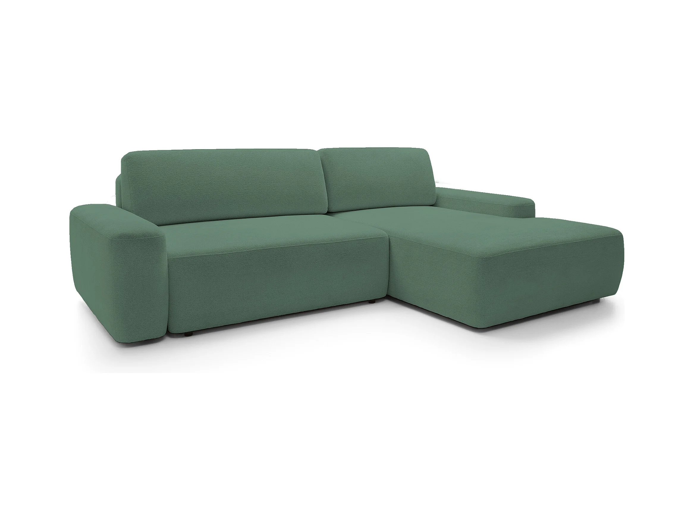 Narożnik BABU z funkcją spania – nowoczesna sofa do salonu, materiał CLOUD, 300x105x60 cm, prawa strona, Zielony