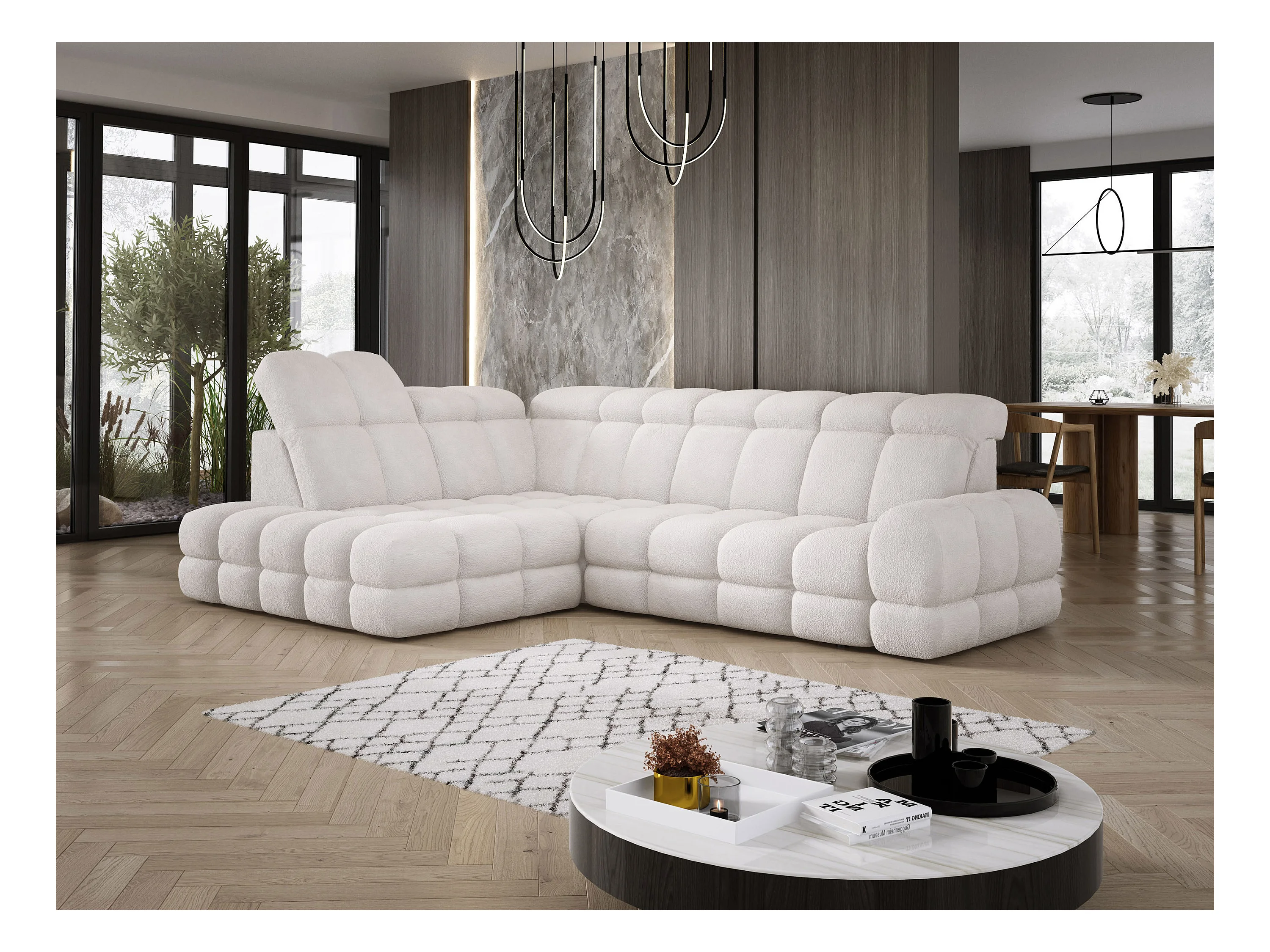 Narożnik BABU z funkcją spania – nowoczesna sofa do salonu, materiał CLOUD, 300x105x60 cm, lewa strona, Beżowy