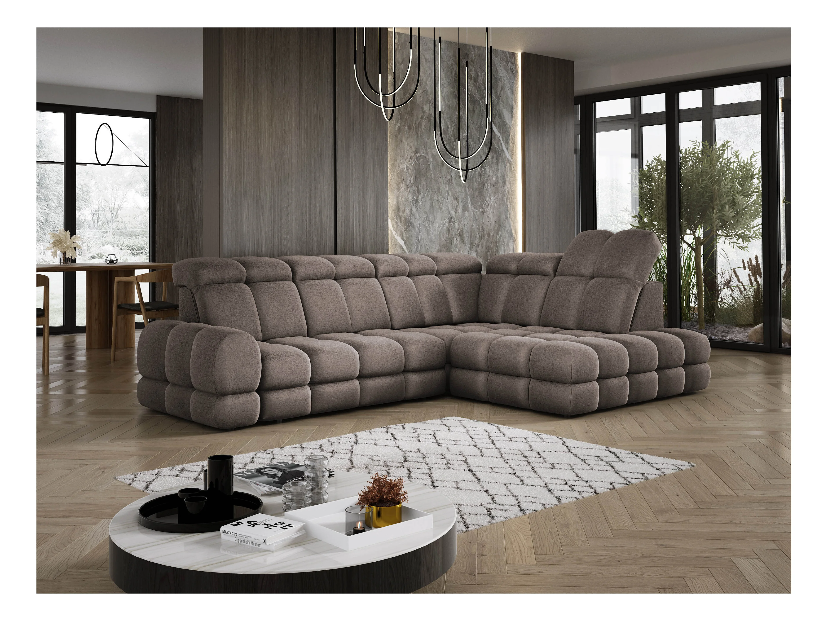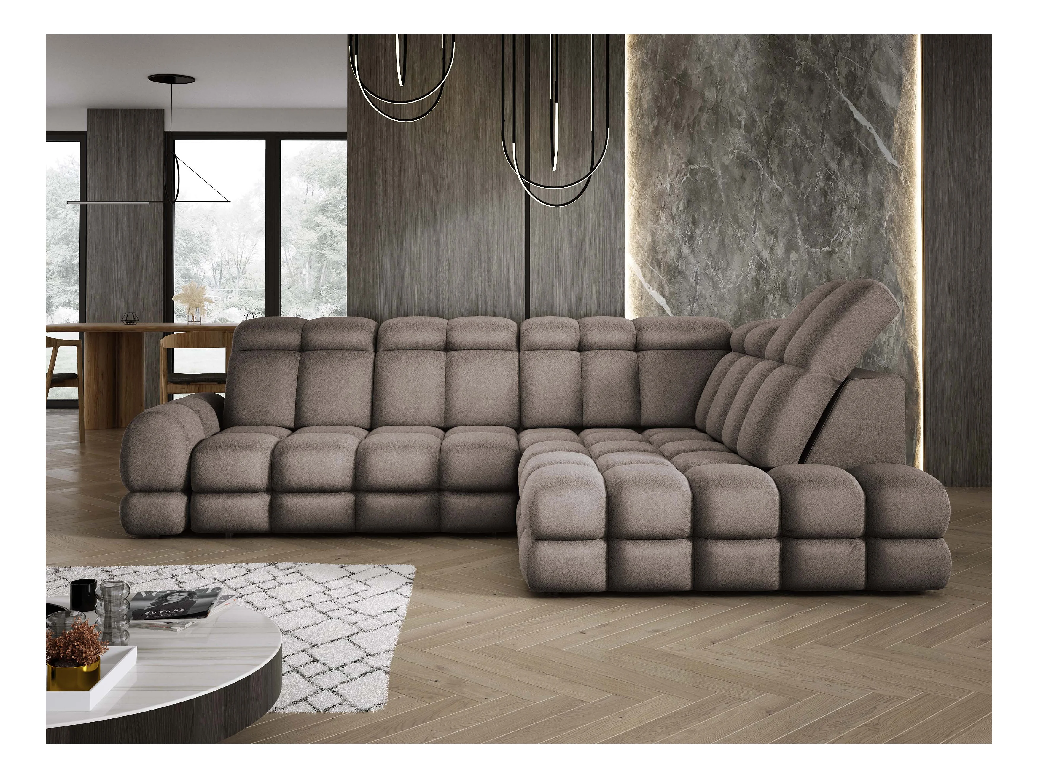NAROŻNIK RAVEN L z funkcją spania, pojemnik na pościel, wolnostojący, tapicerowany z regulowanymi zagłówkami 257x198x96 cm Prawa strona Brązowy