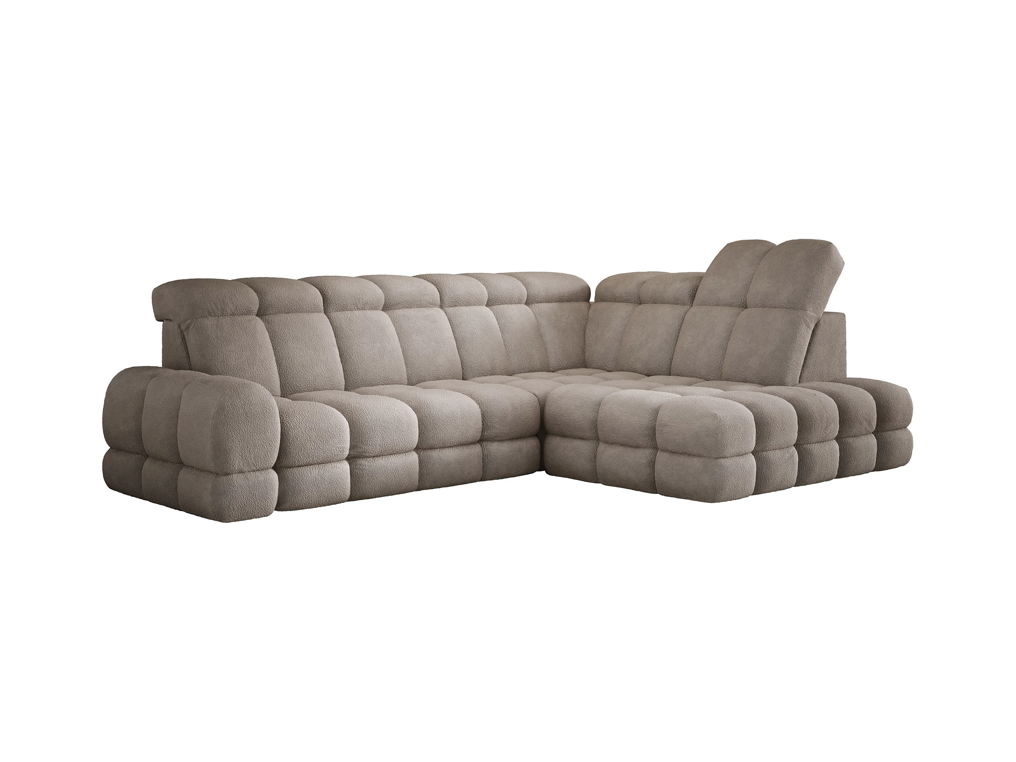 NAROŻNIK RAVEN L z funkcją spania, pojemnik na pościel, wolnostojący, tapicerowany z regulowanymi zagłówkami 257x198x96 cm Prawa strona Brązowy