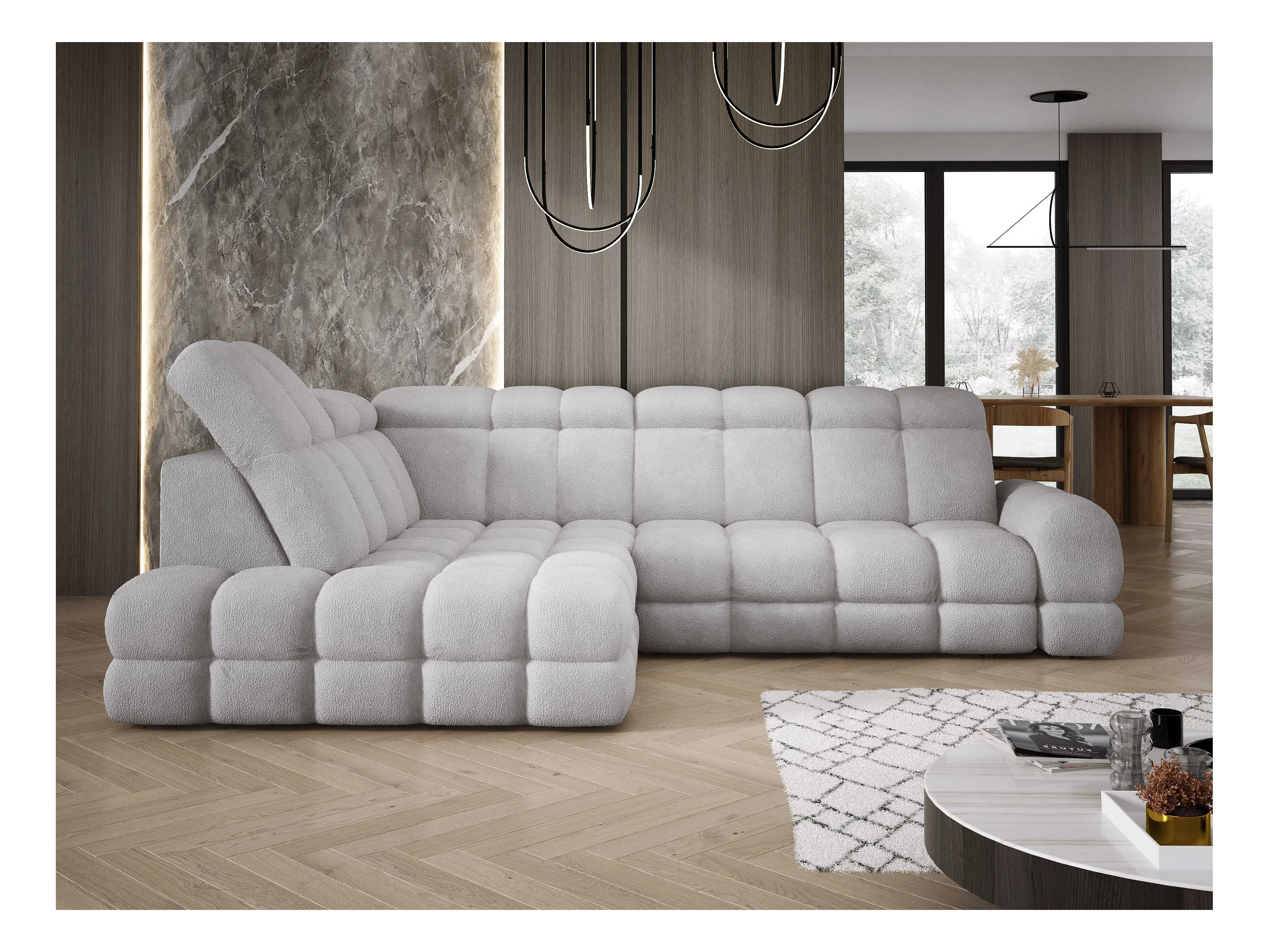 NAROŻNIK RAVEN L z funkcją spania, pojemnik na pościel, wolnostojący, tapicerowany z regulowanymi zagłówkami 257x198x96 cm Lewa strona Popielaty