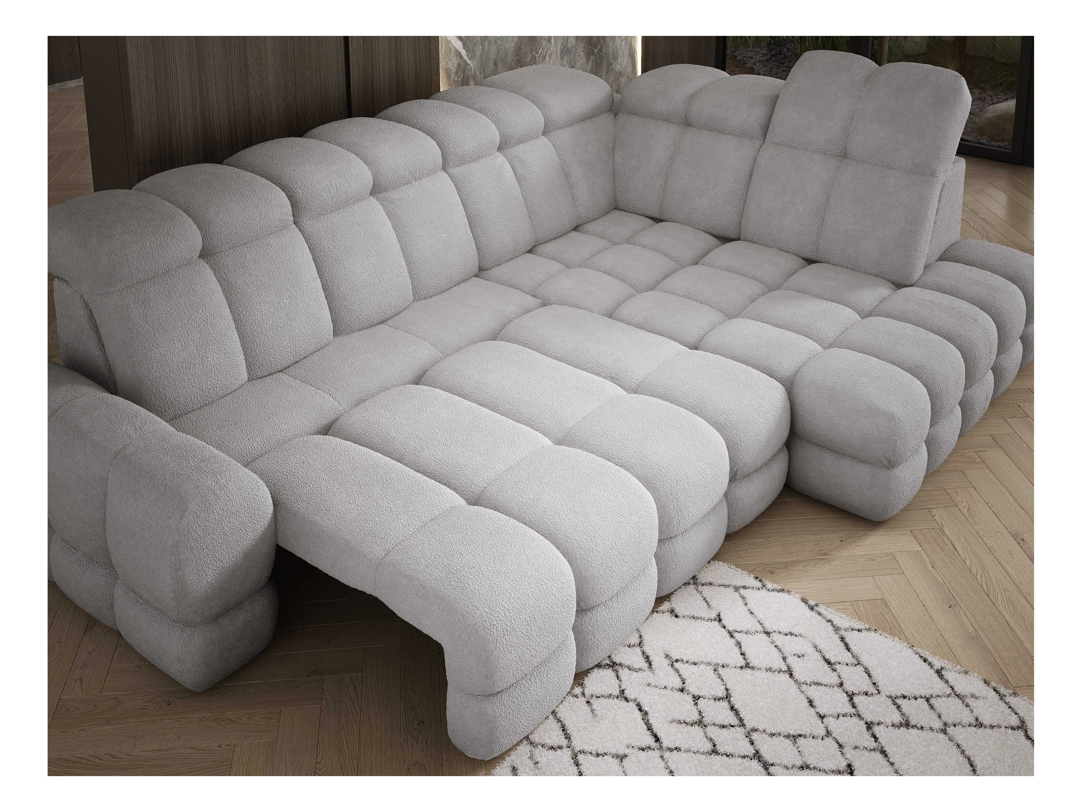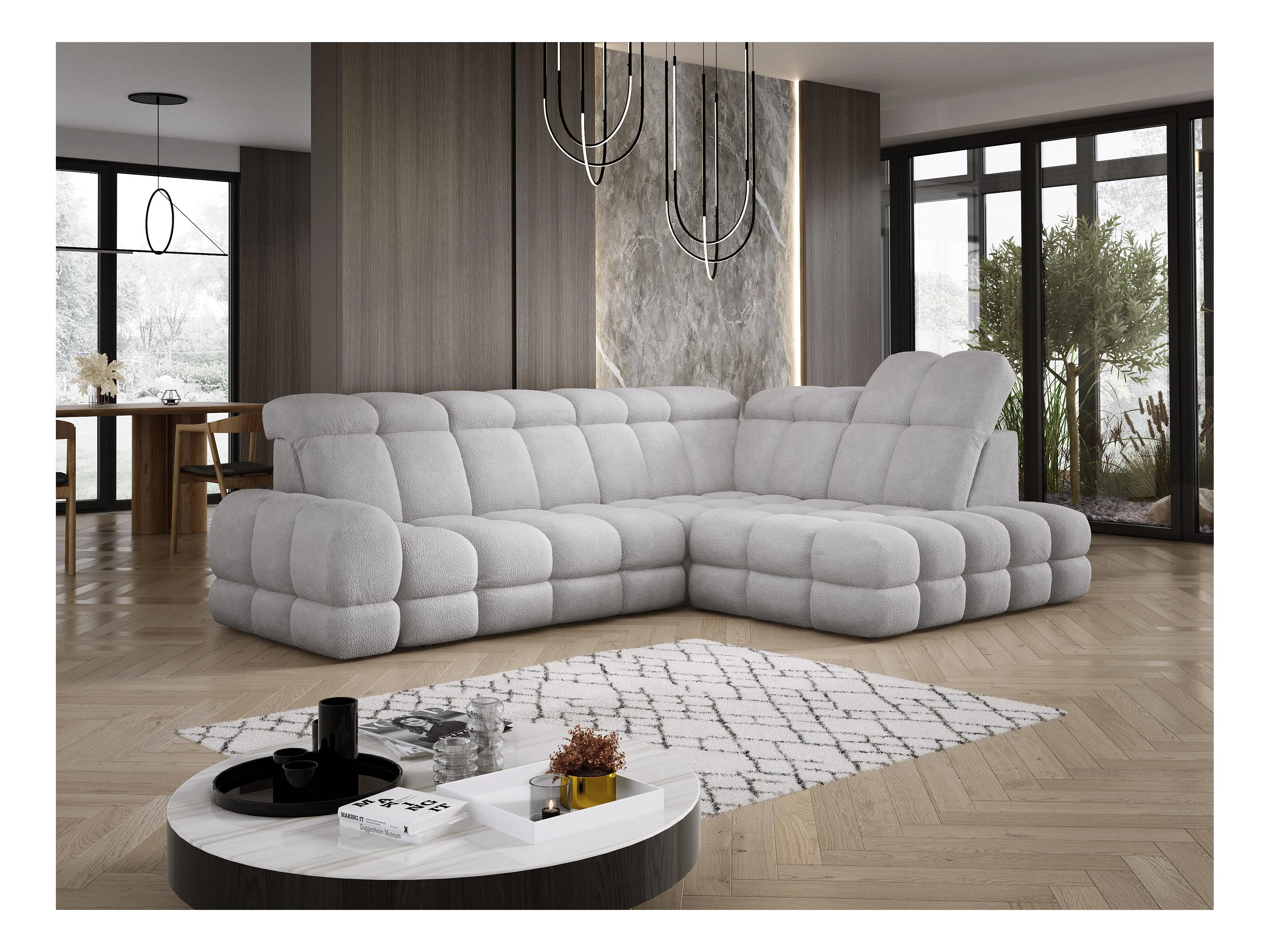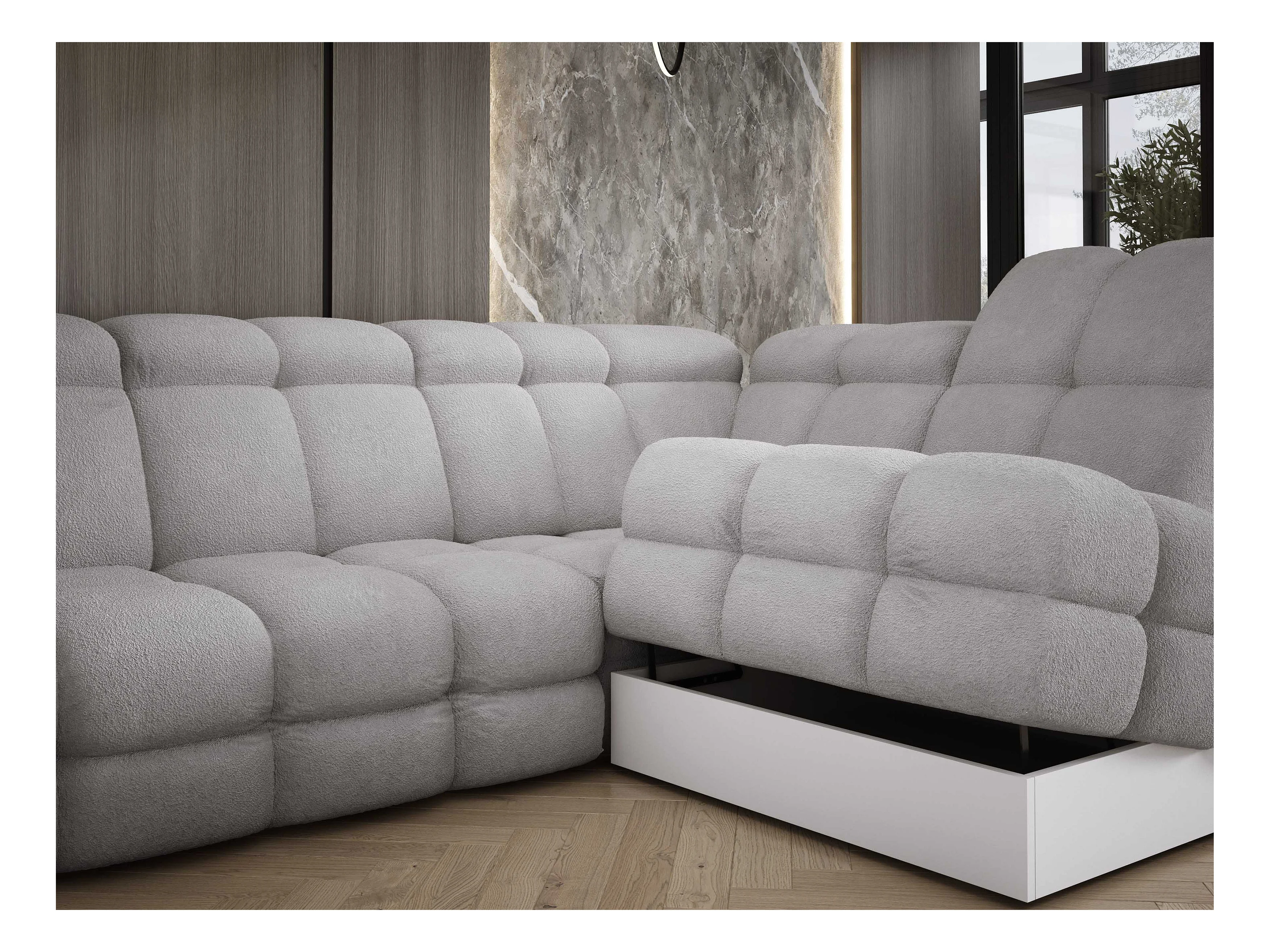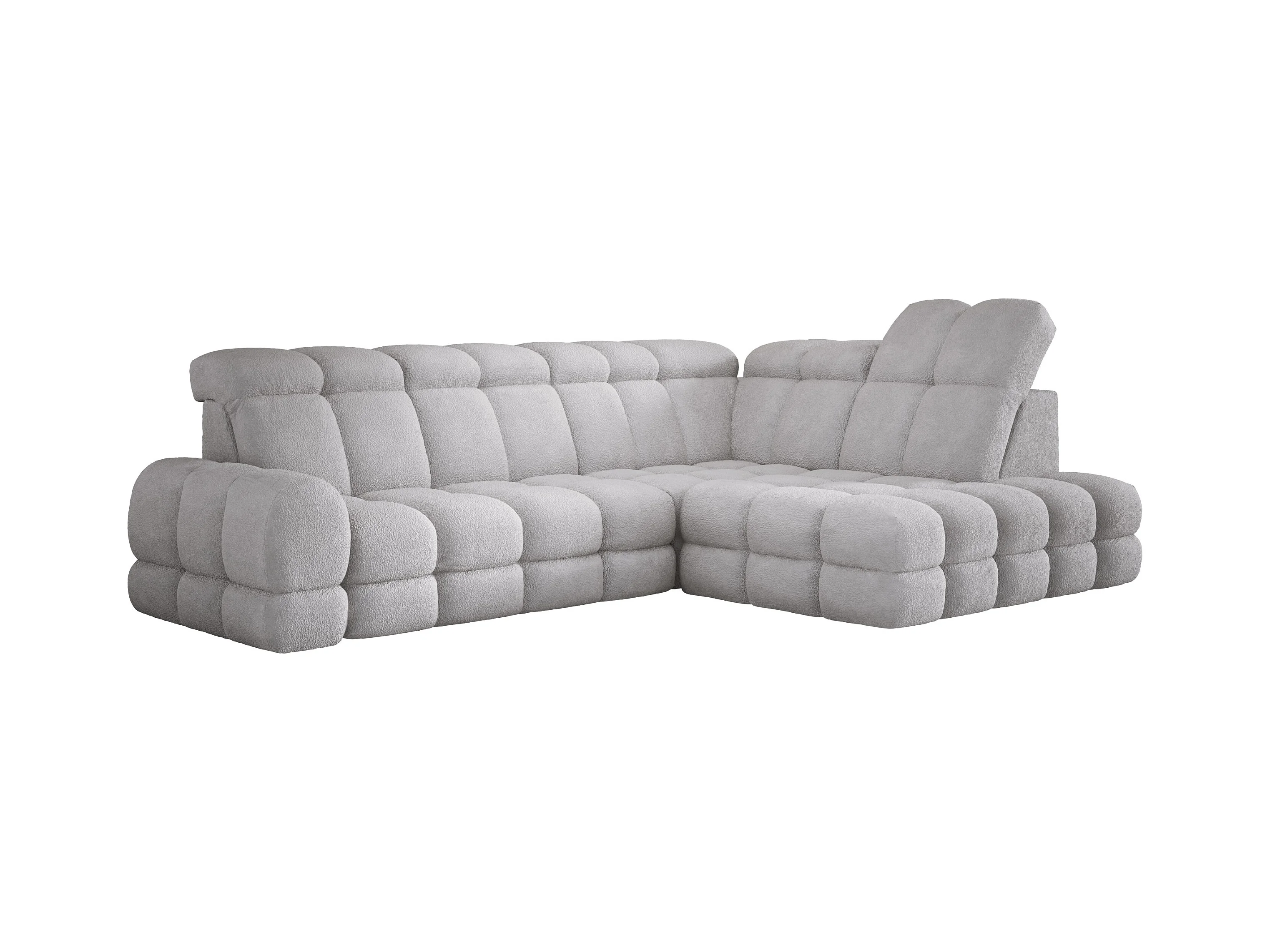 NAROŻNIK RAVEN L z funkcją spania, pojemnik na pościel, wolnostojący, tapicerowany z regulowanymi zagłówkami 257x198x96 cm Prawa strona Popielaty