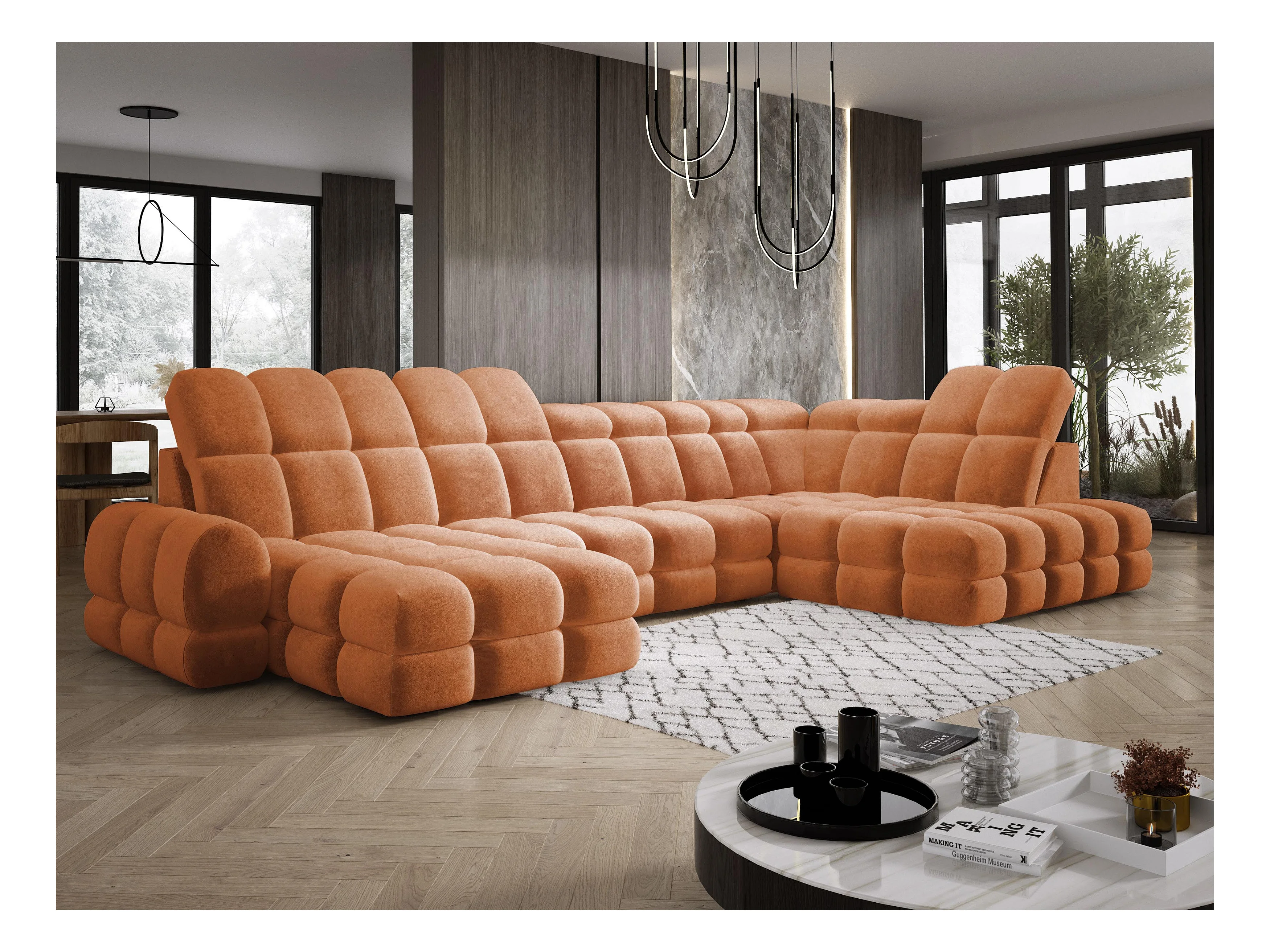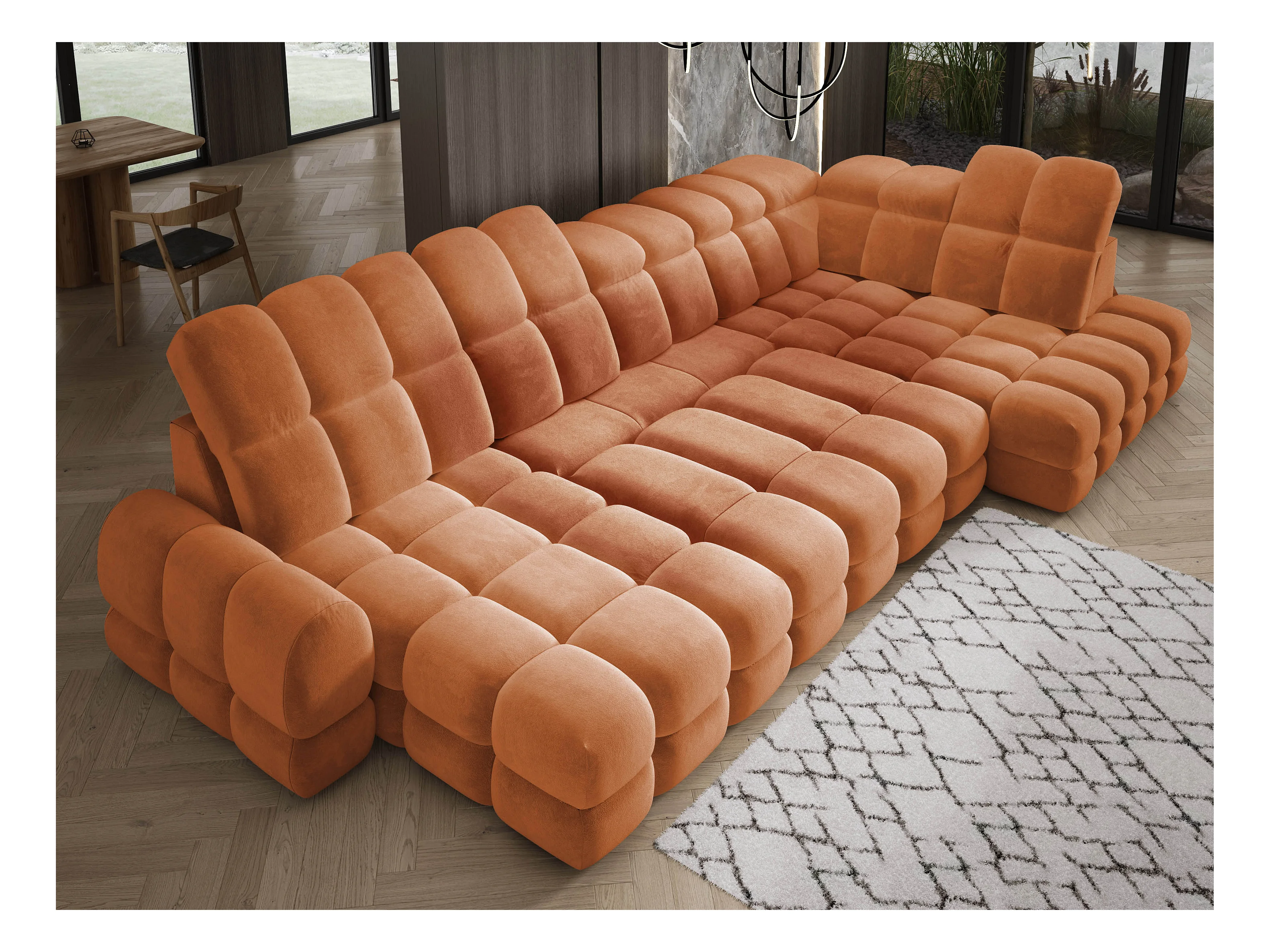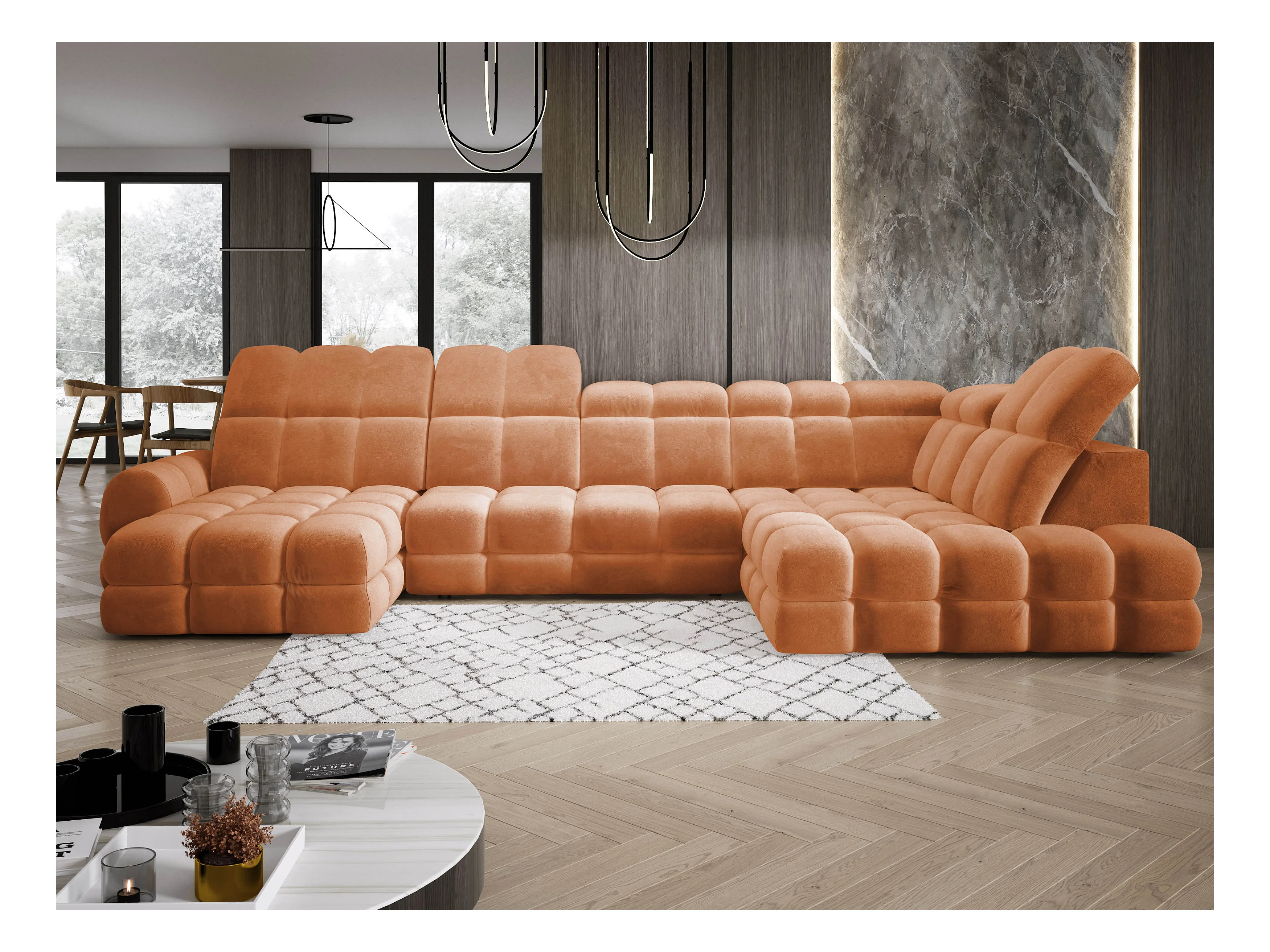 Narożnik Tollo w układzie U Prawostronny 400x217x105 cm, funkcja spania regulowany elektrycznie kolor Pomarańczowy Tkanina - SALVADOR