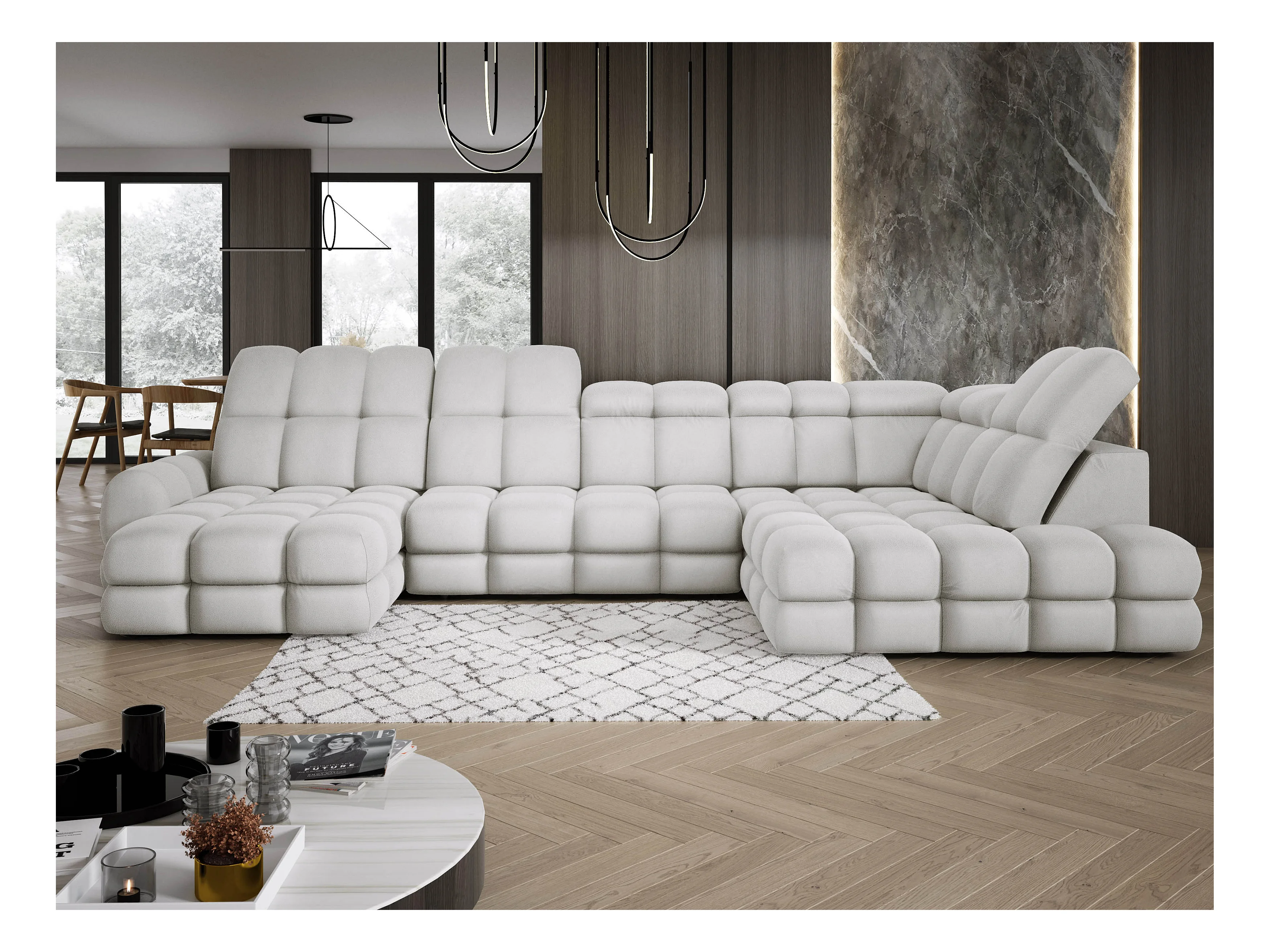 Narożnik Tollo w układzie U Prawostronny 400x217x105 cm, funkcja spania regulowany elektrycznie kolor Popielaty Tkanina - SOLAR