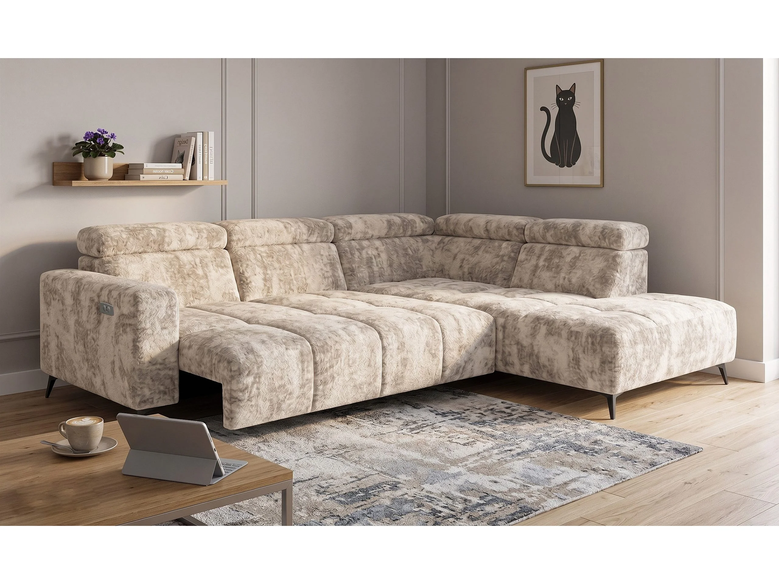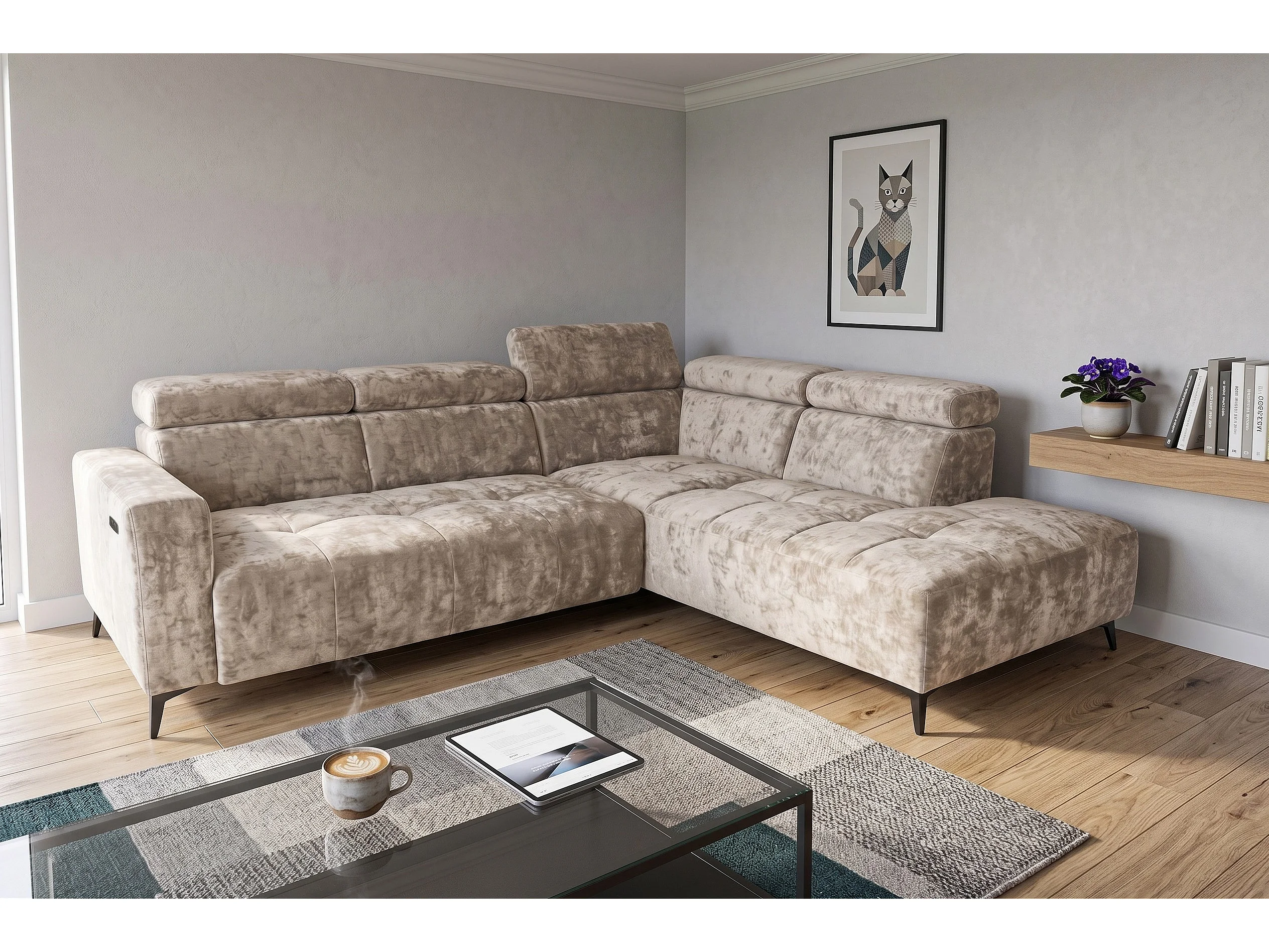 Narożnik Velvet ultra komfort – efekt chmury – miękka tkanina premium – funkcja relax