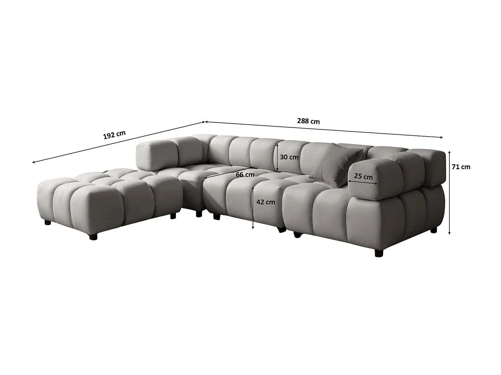 Narożnik w kształcie U Cursal, tkanina Poso, Szary