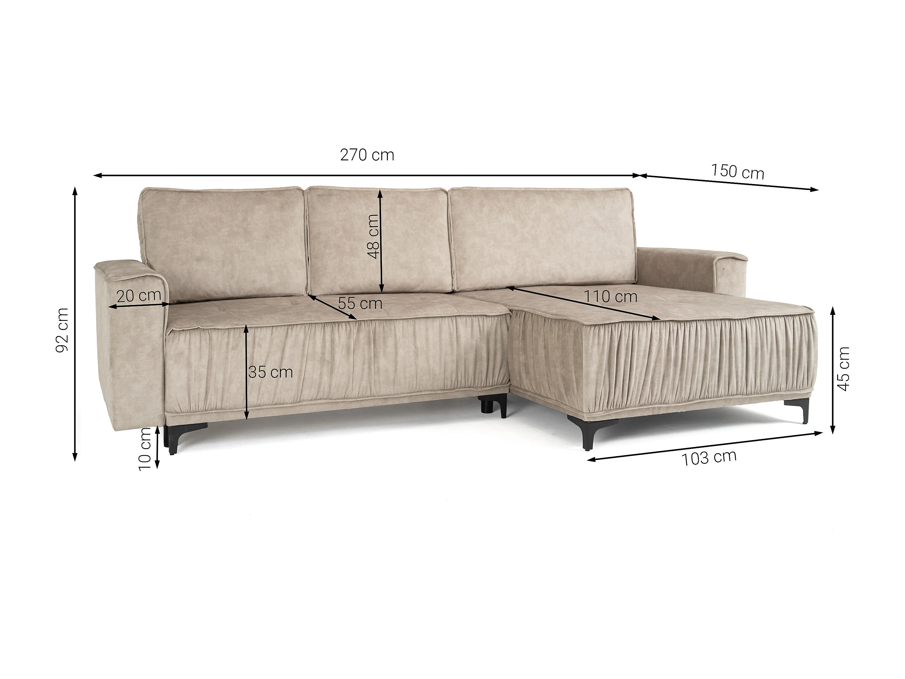 Narożnik w kształcie L funkcja spania do salonu, Juka Terra jasnoszary (88)