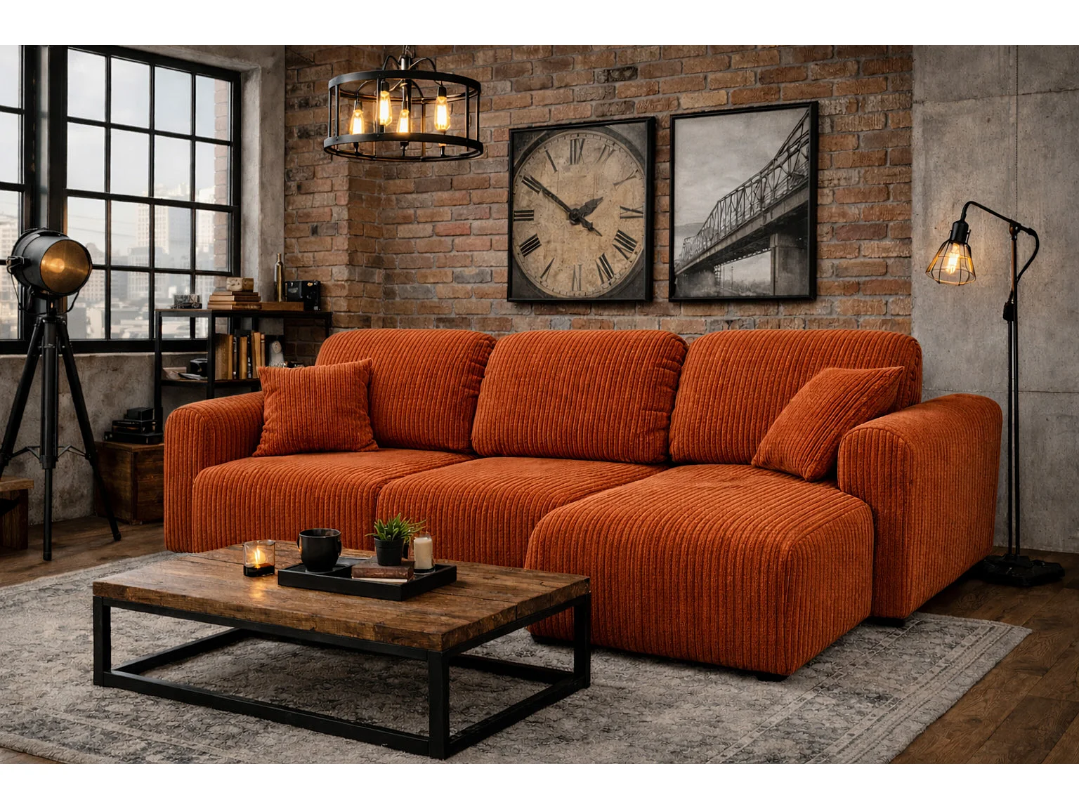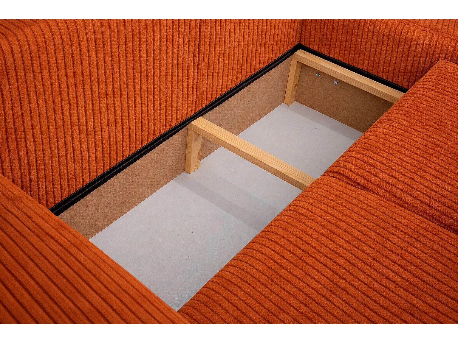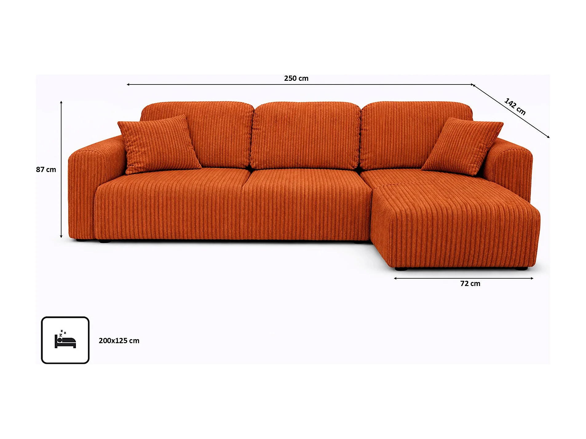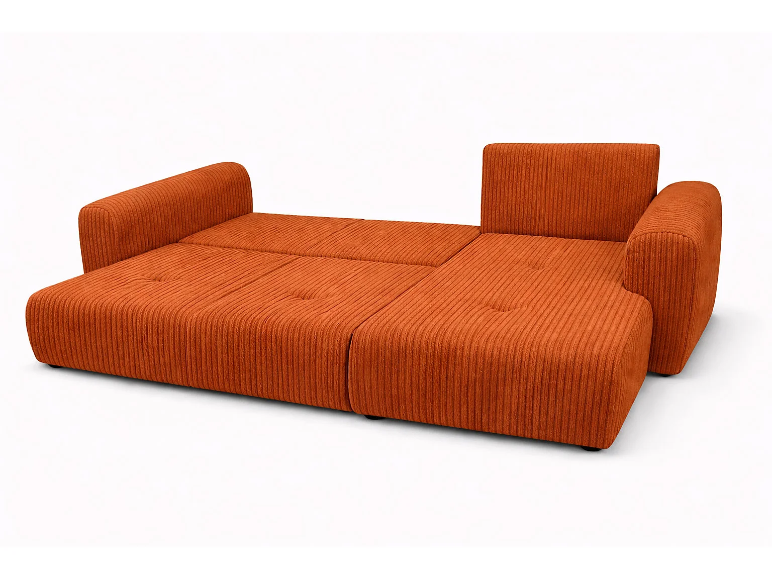 Narożnik w kształcie L z funkcją spania i pojemnikiem Bingo L, tkanina sztruksowa Poso, Miedziany, Prawy