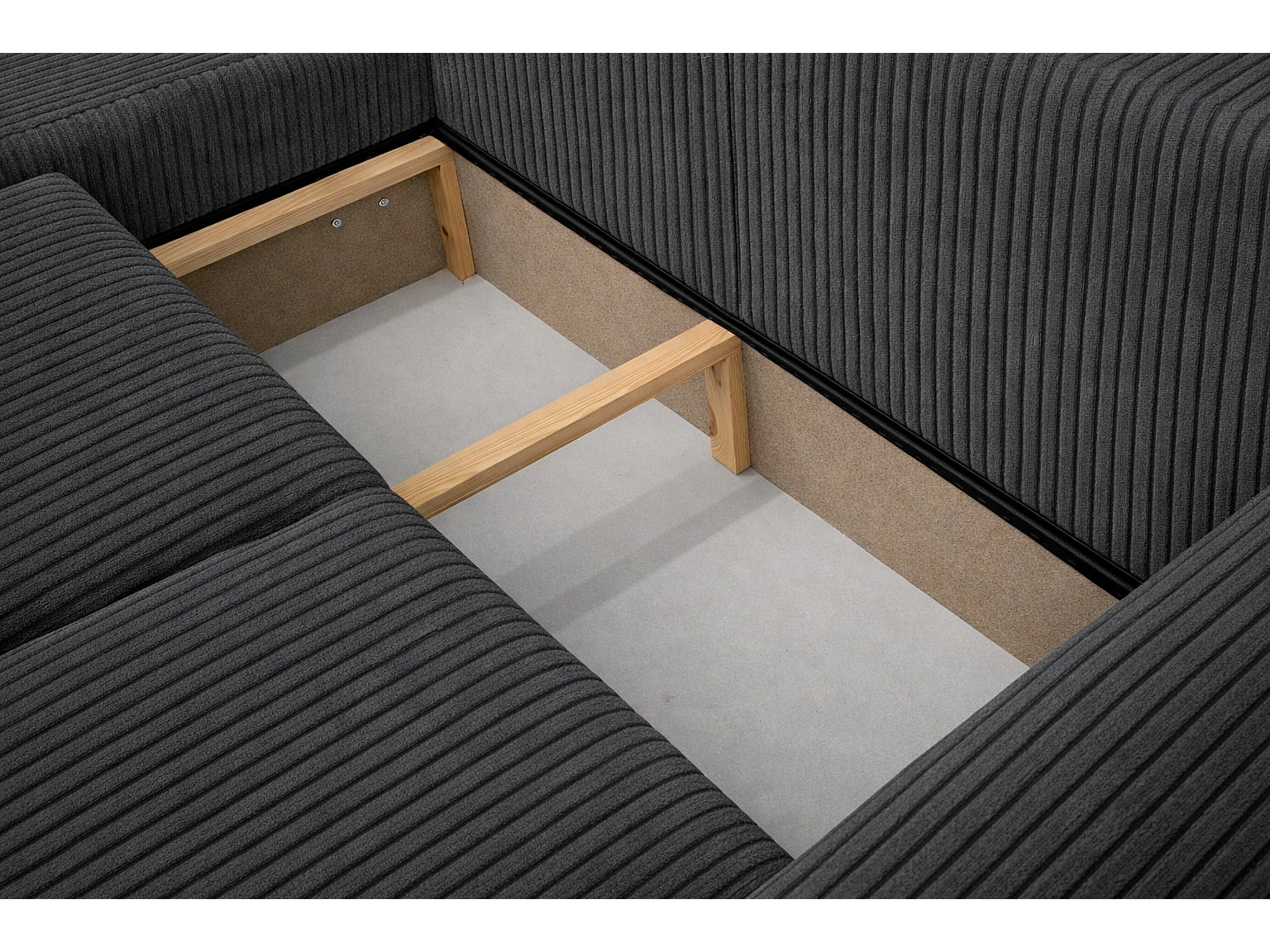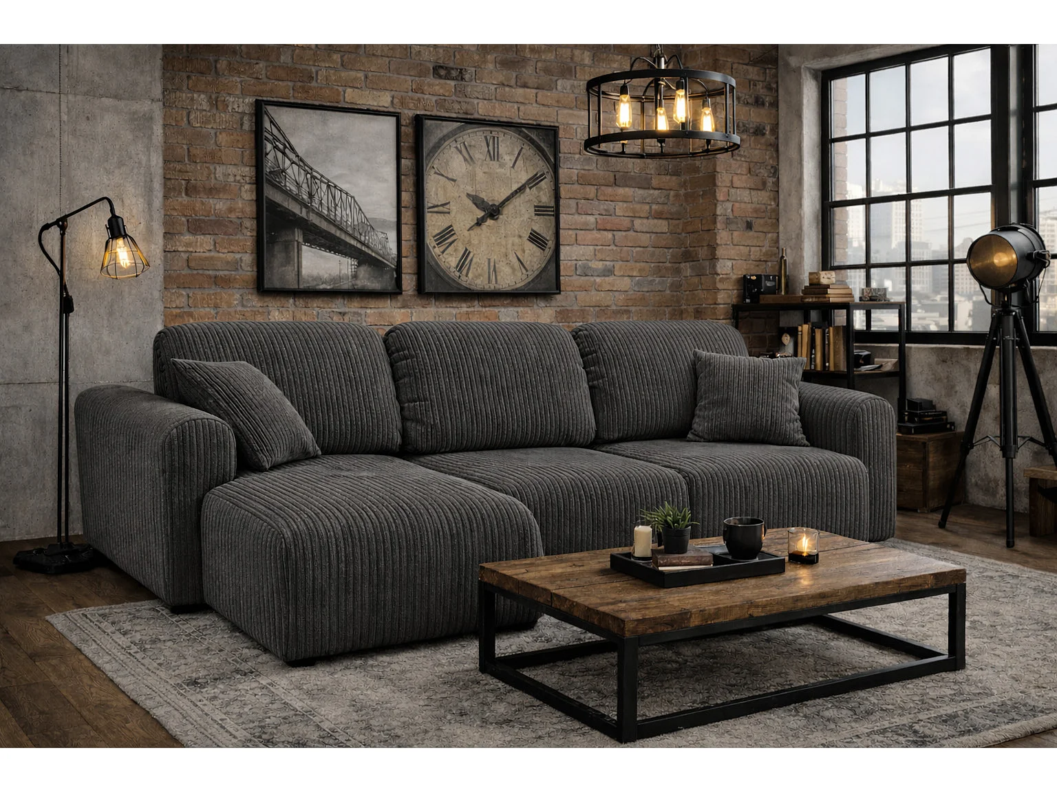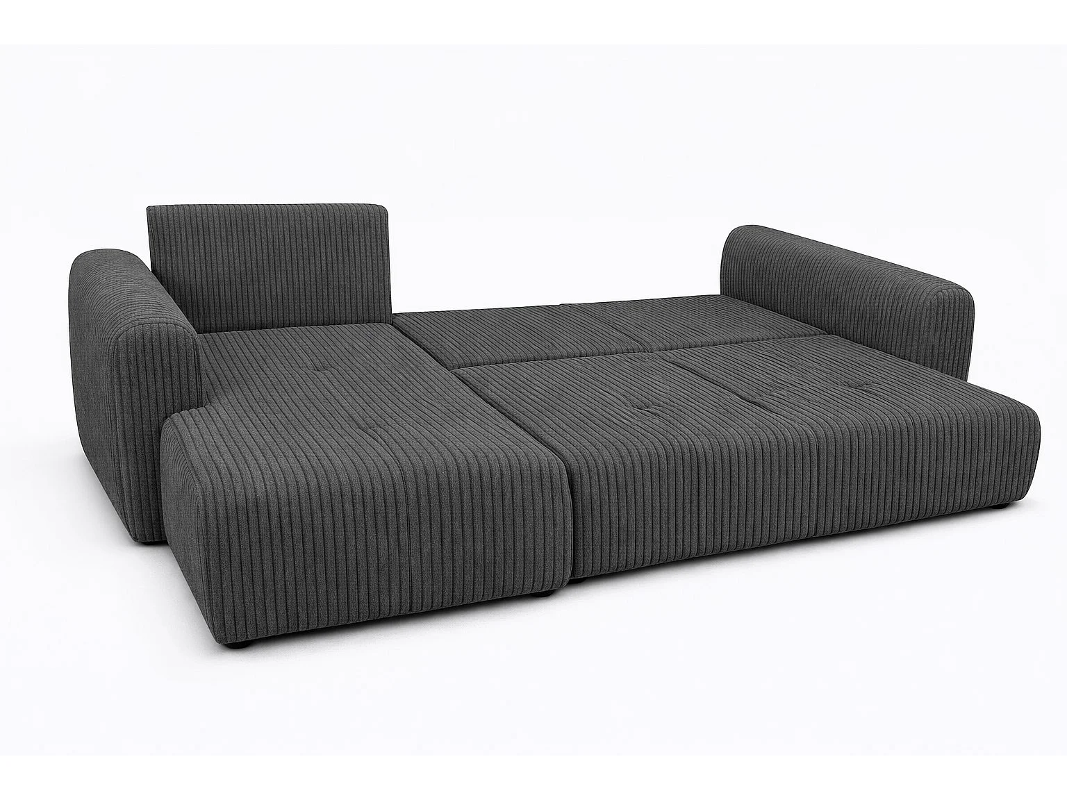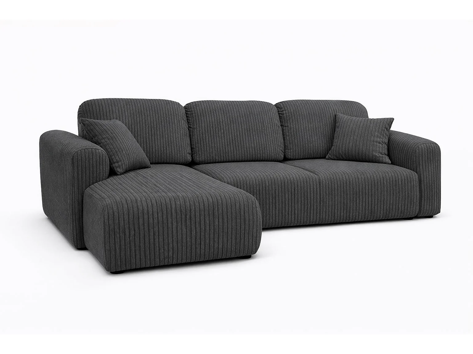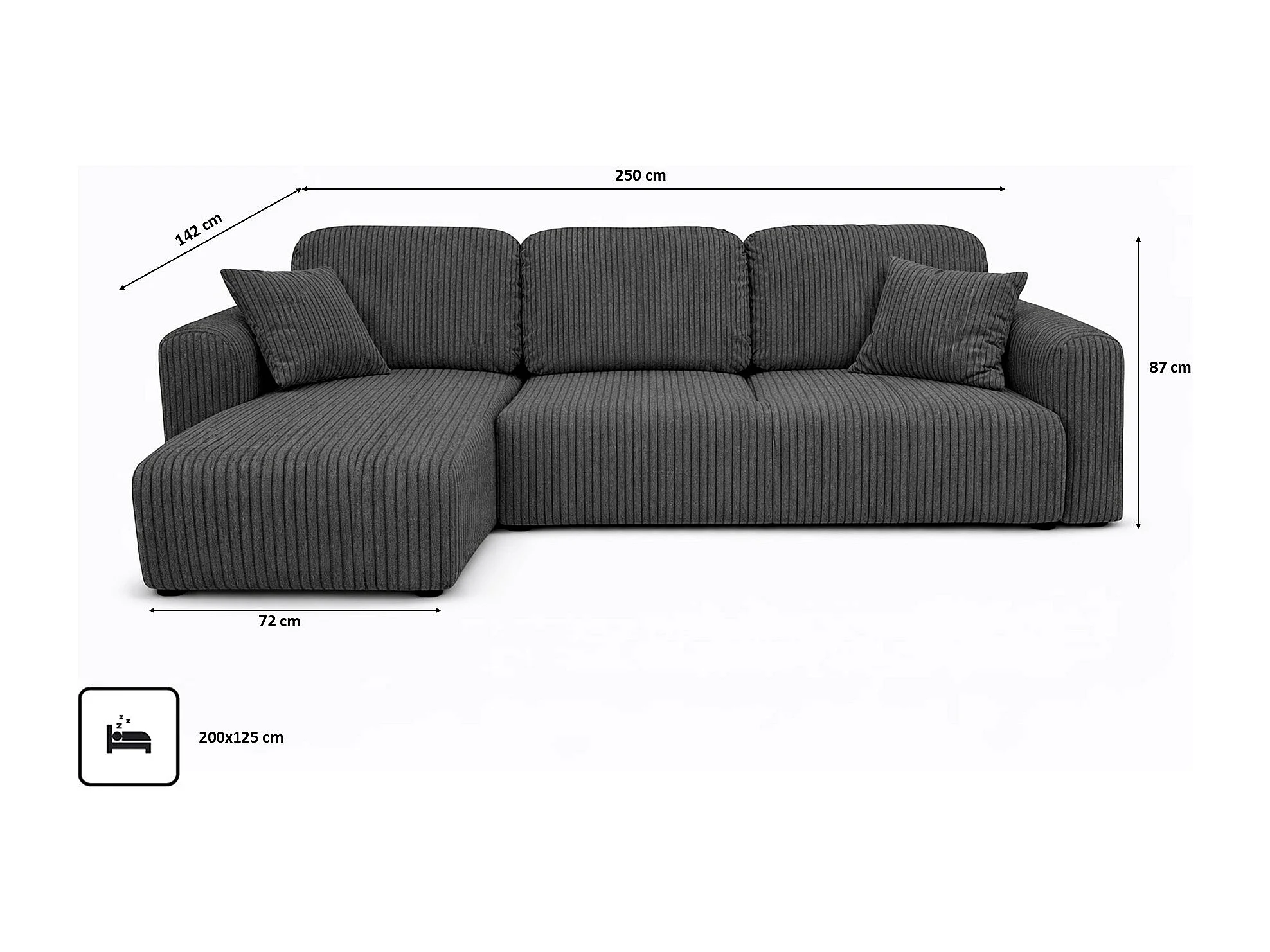 Narożnik w kształcie L z funkcją spania i pojemnikiem Bingo L, tkanina sztruksowa Poso, Szary, Lewy