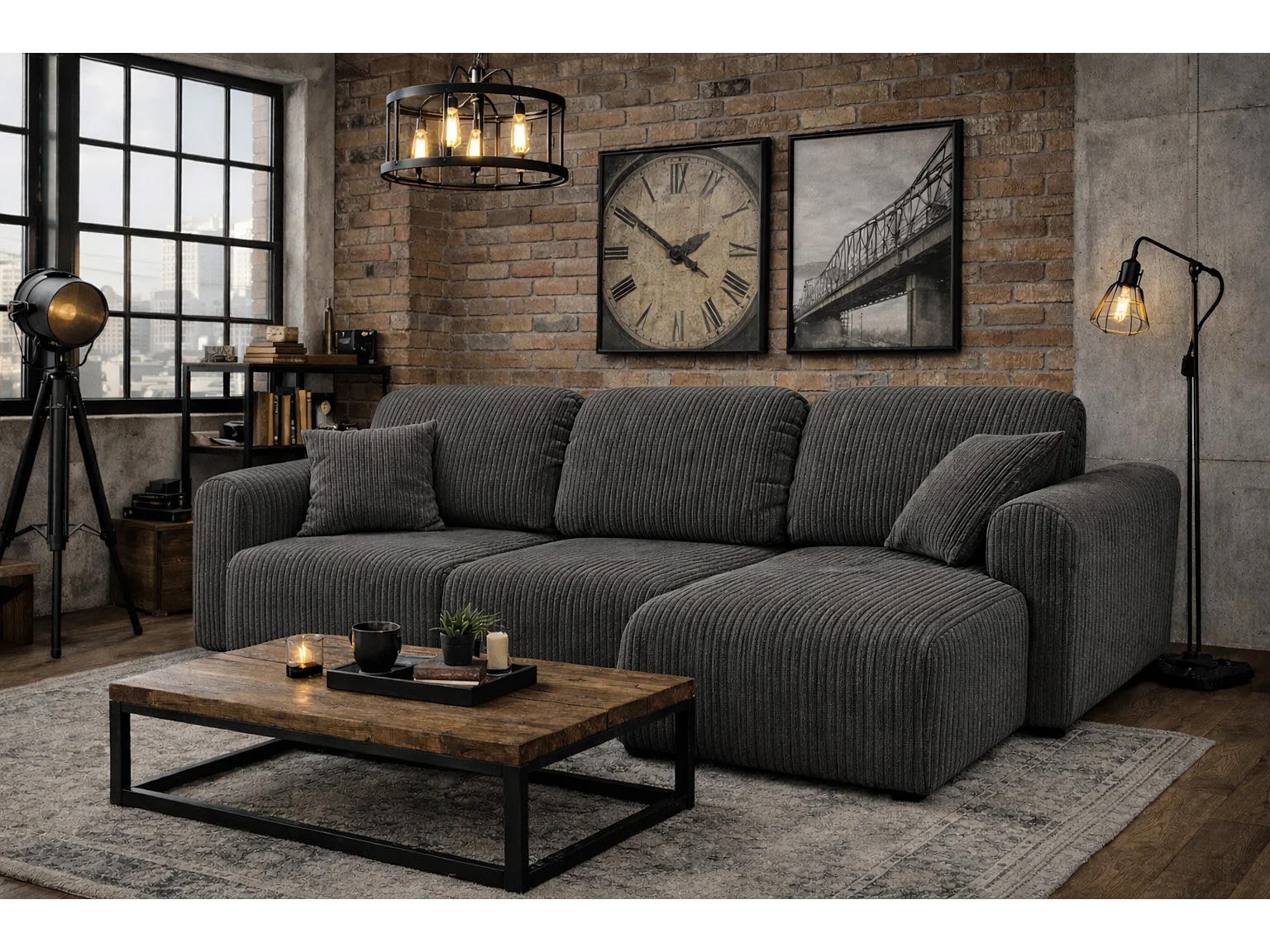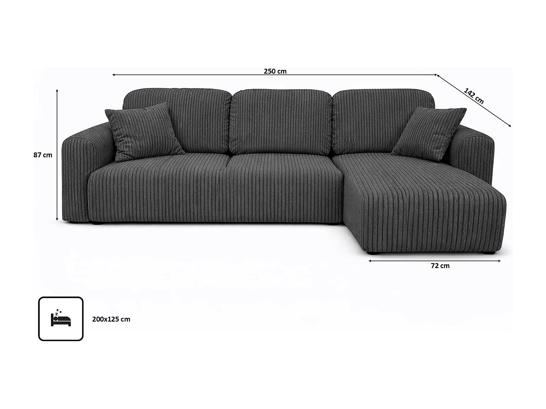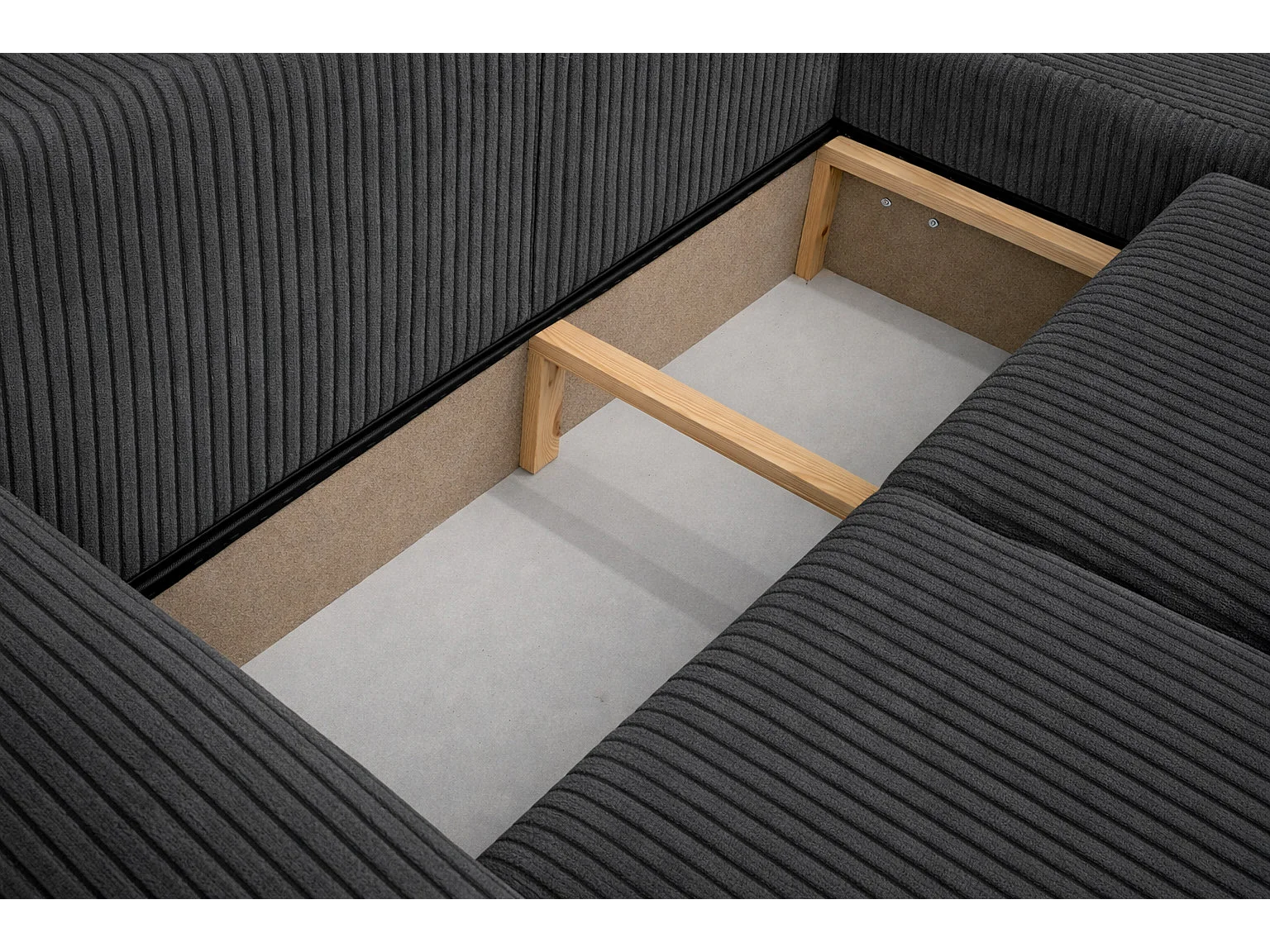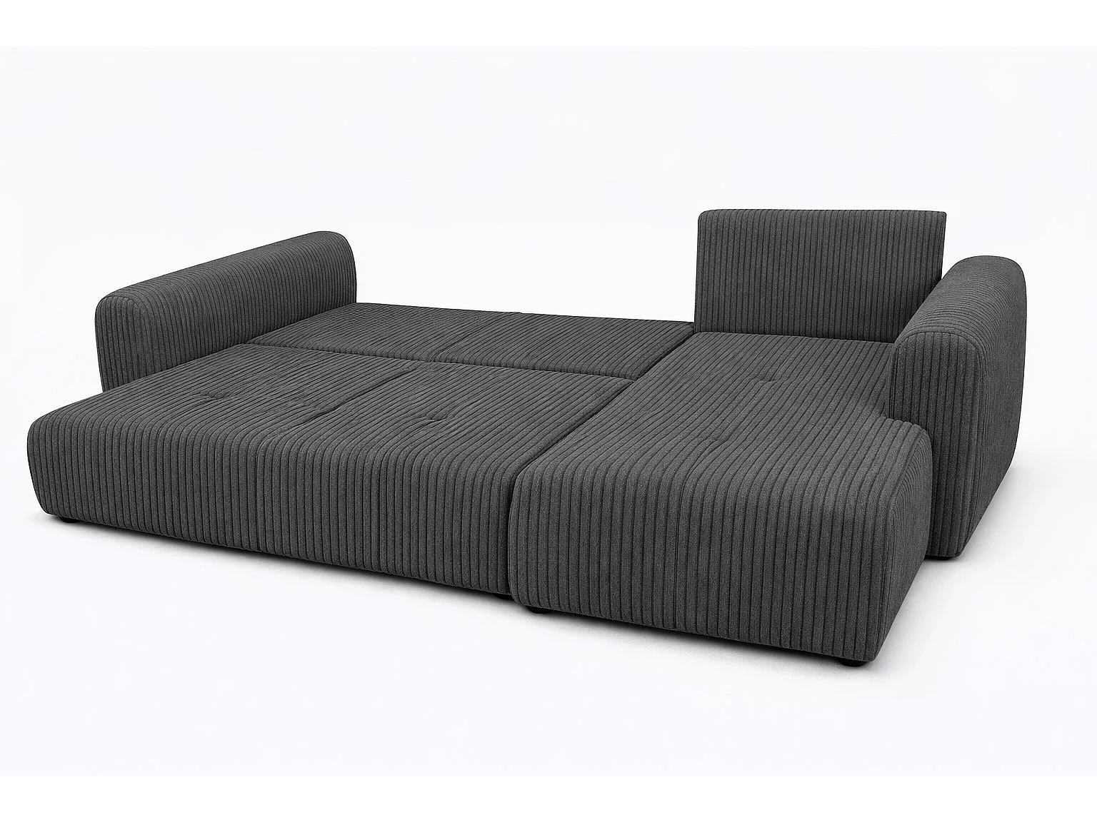 Narożnik w kształcie L z funkcją spania i pojemnikiem Bingo L, tkanina sztruksowa Poso, Szary, Prawy