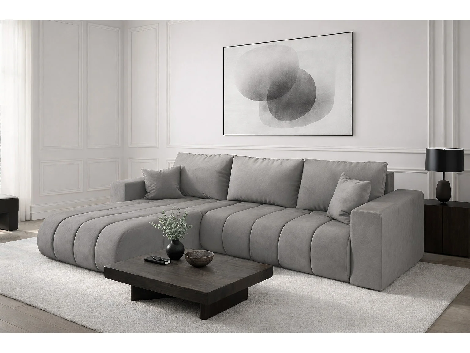 Narożnik z funkcją spania i pojemnikiem MILO PREMIUM, tkanina Monolith, Jasnoszary, Lewy