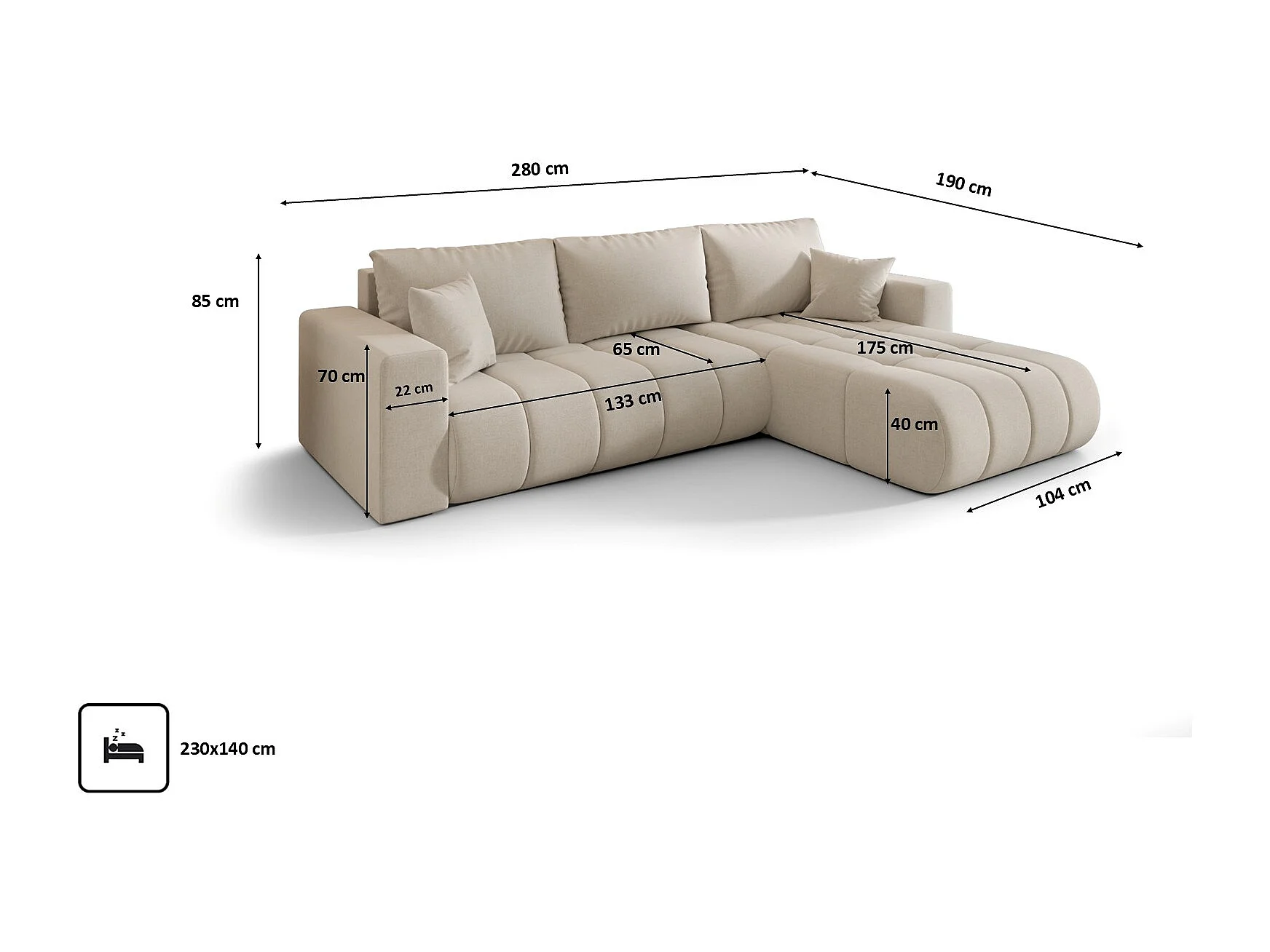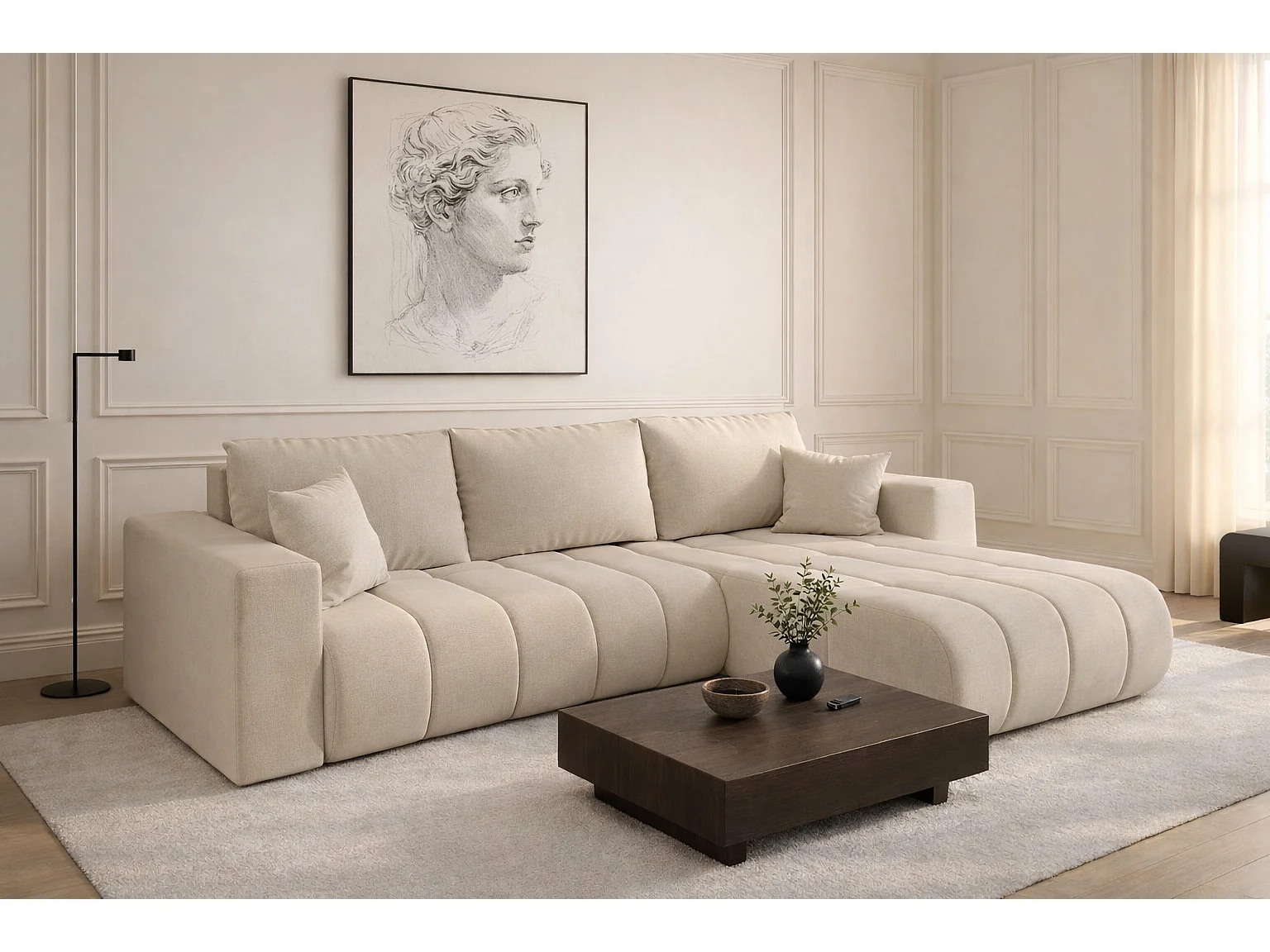 Narożnik z funkcją spania i pojemnikiem MILO PREMIUM, tkanina Wind, Beżowy, Prawy